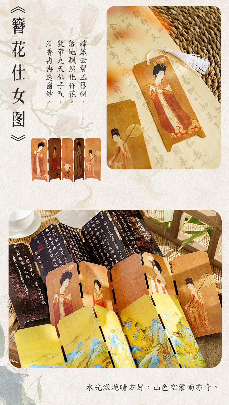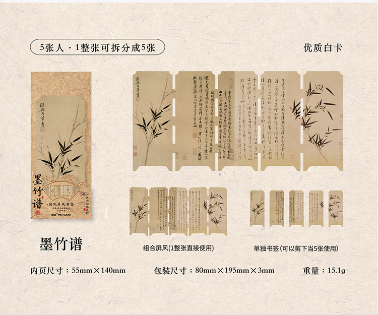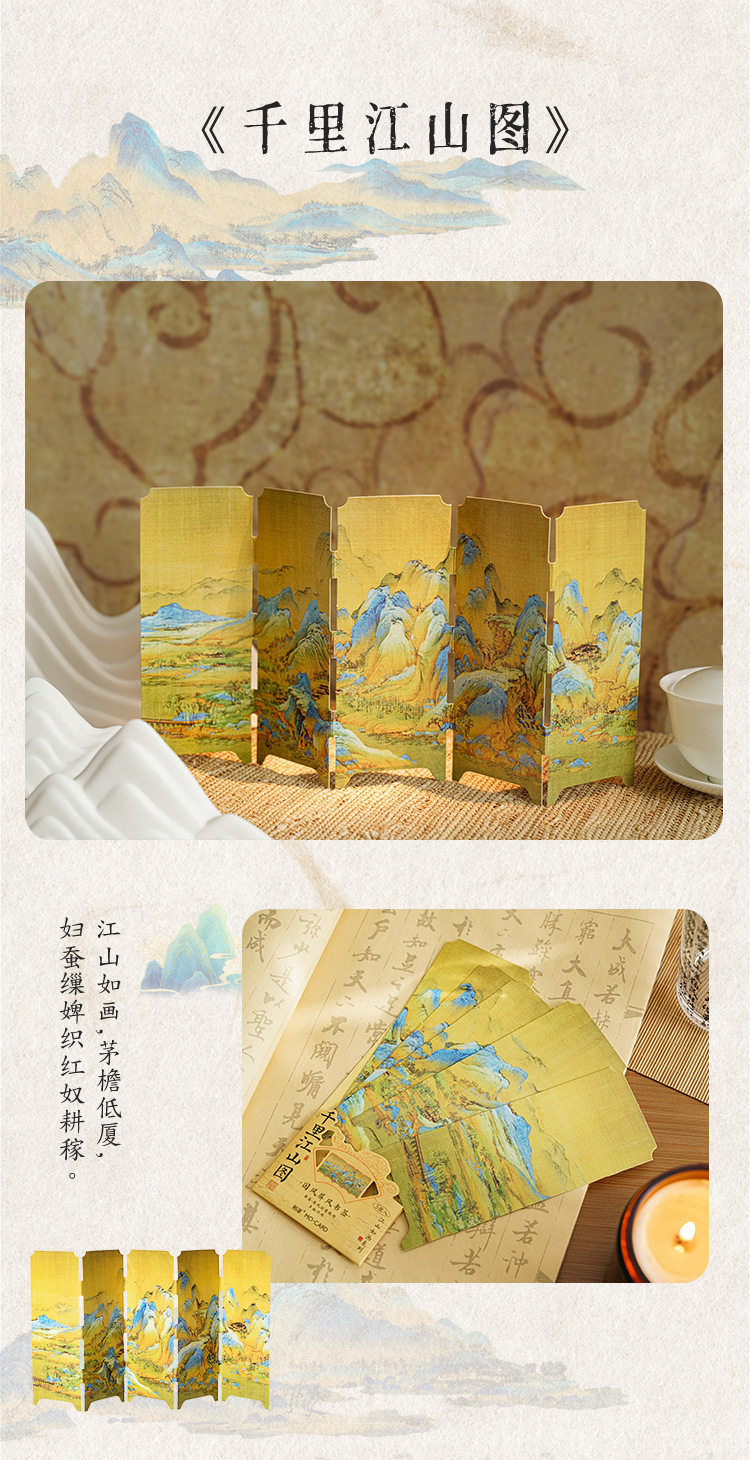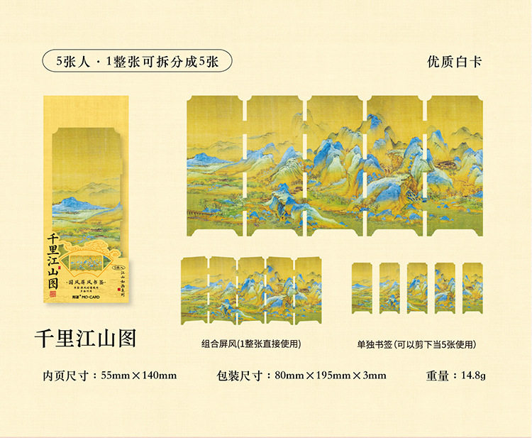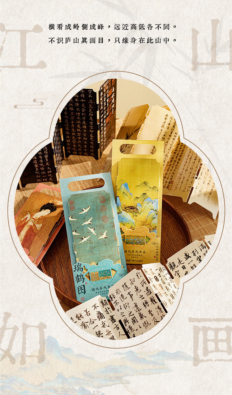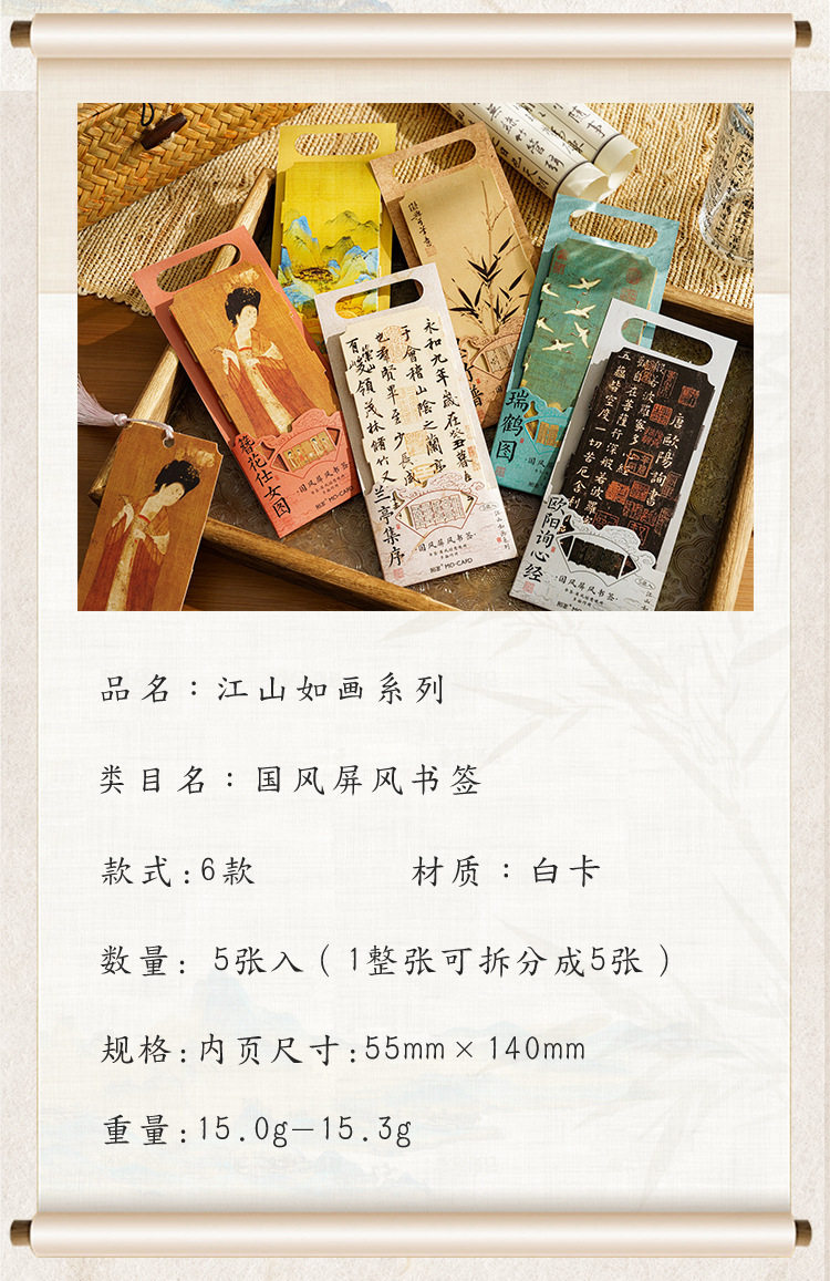 Mo Mo Jiangshan Picturesque Series National Wind Screen Bookmark Ancient Style Famous Painting Calligraphy Text Student Reading Mark Card