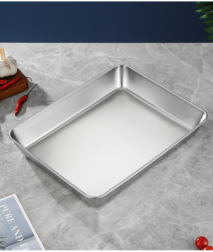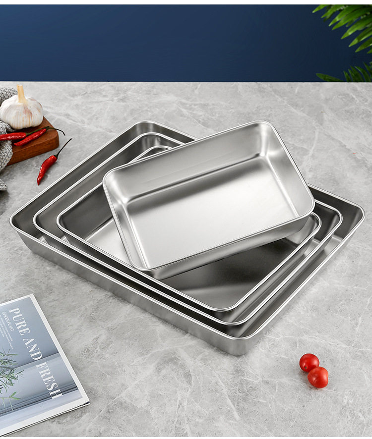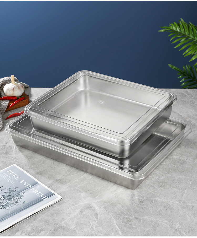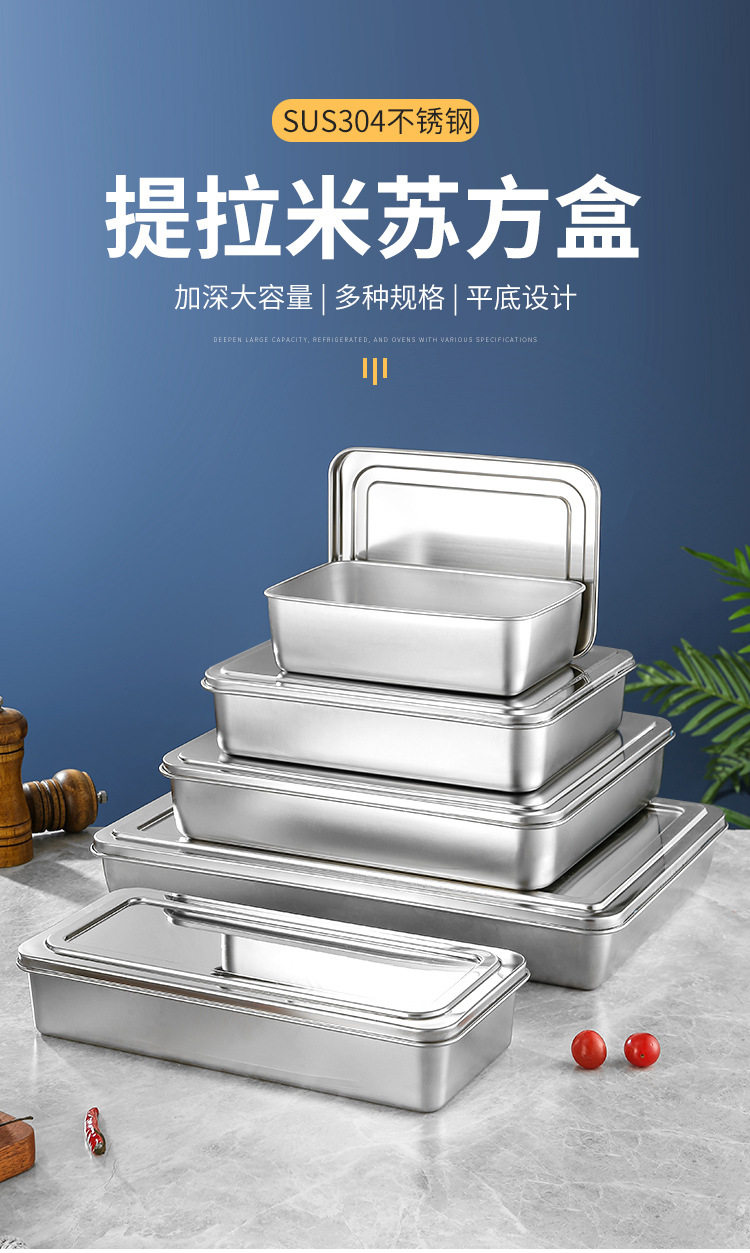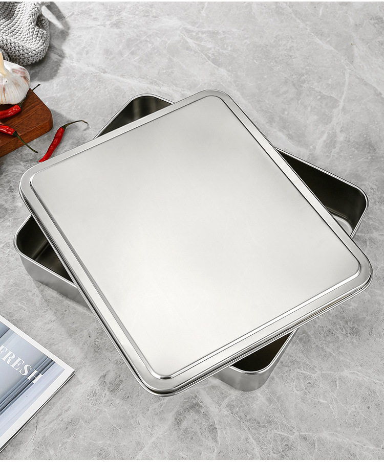 Stainless Steel Tiramisu Plate Flats Bottom Square Plate Rectangular Thickeneded Box with Lid Cake Baking Baking Pan Dish Plate