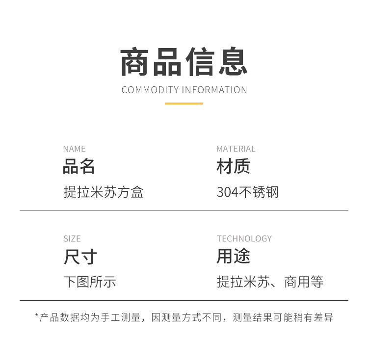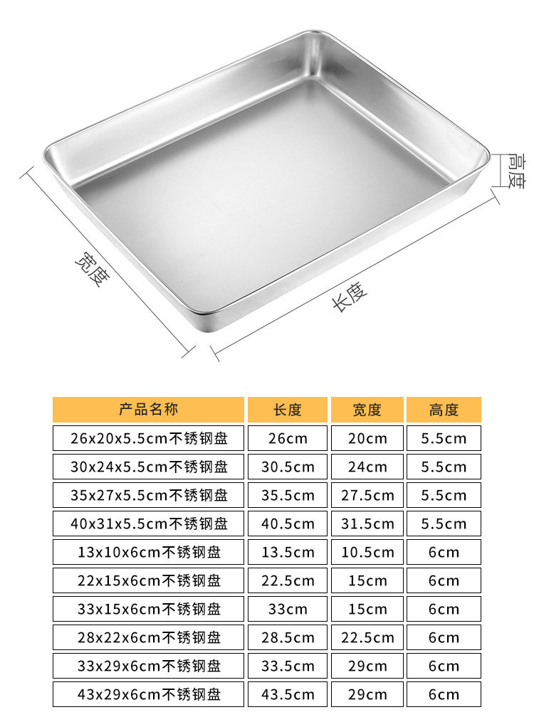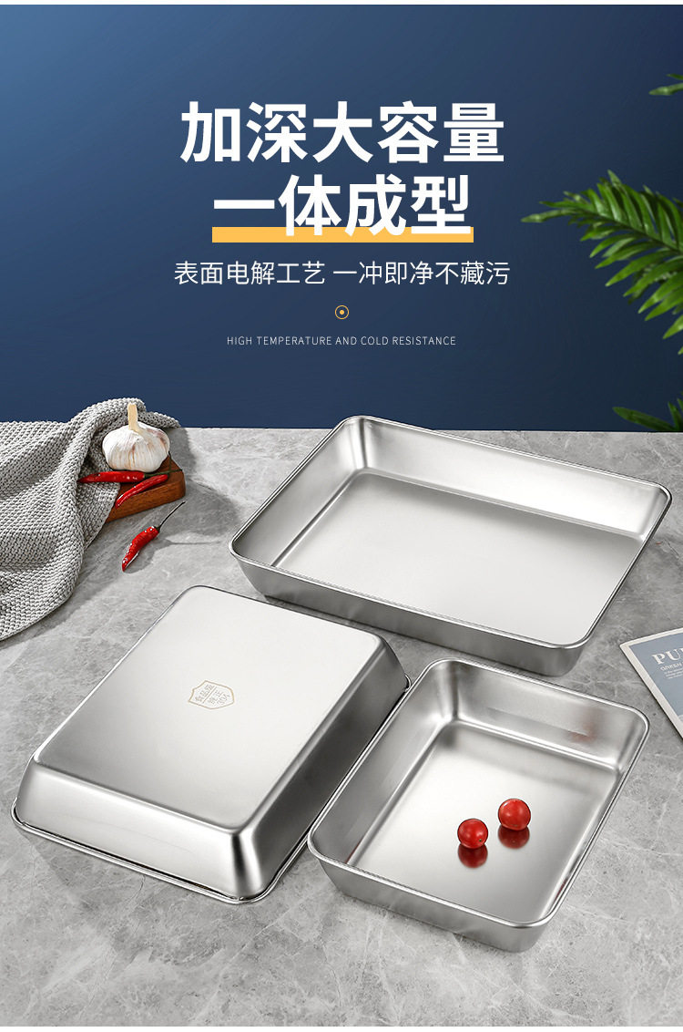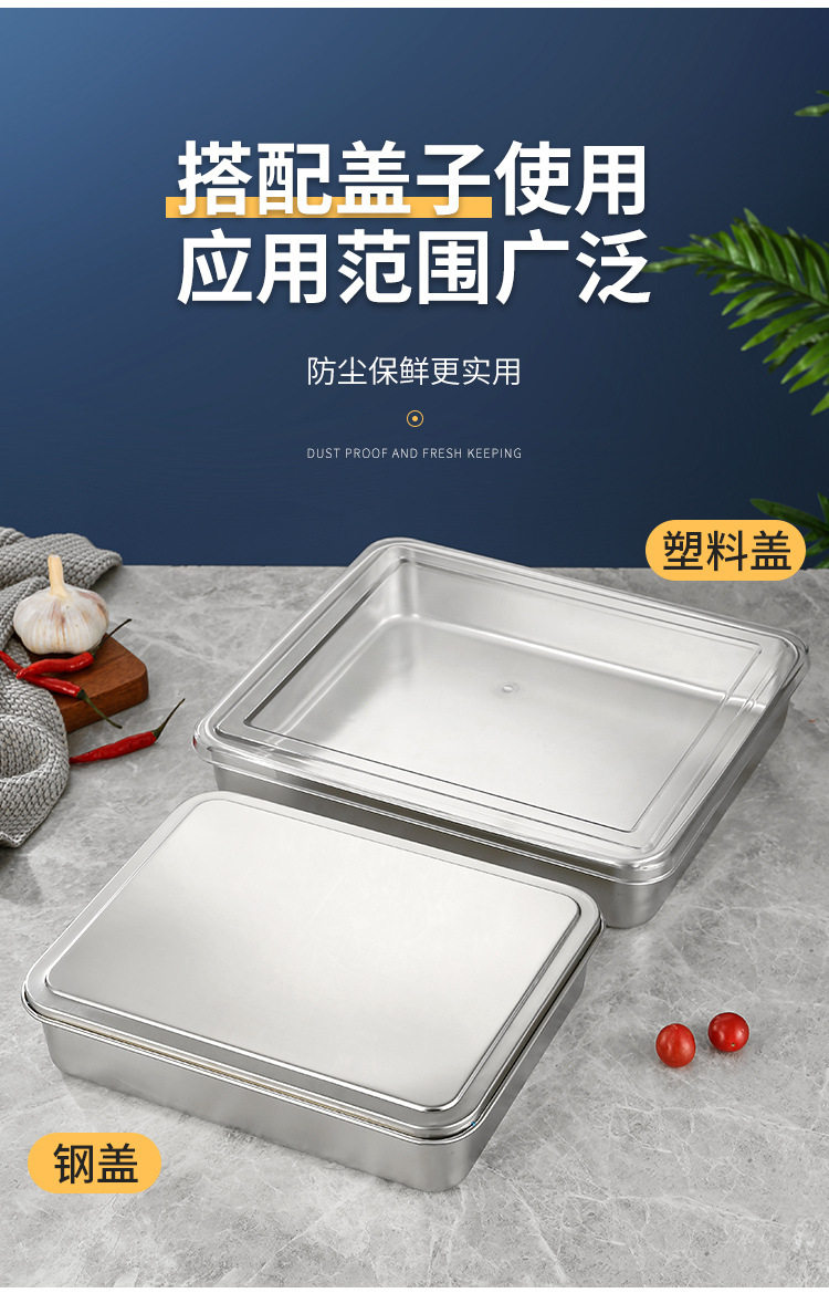 Stainless Steel Tiramisu Plate Flats Bottom Square Plate Rectangular Thickeneded Box with Lid Cake Baking Baking Pan Dish Plate