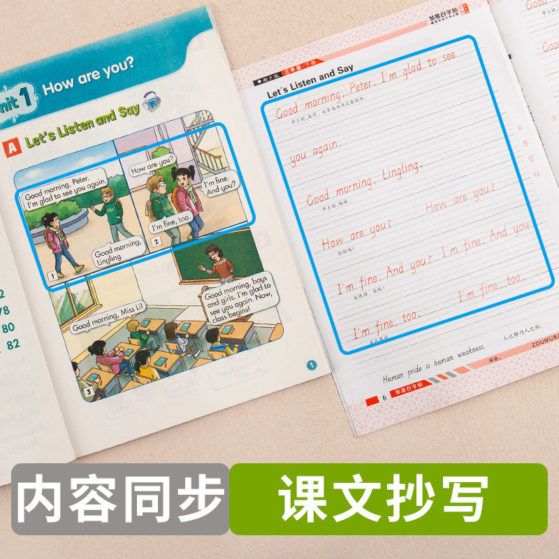 Zou Mu Bai Xiang Shao Edition Hengshui Style Grade 3-6 English Tracing Red Copiography Text Synchronous Handwriting Book