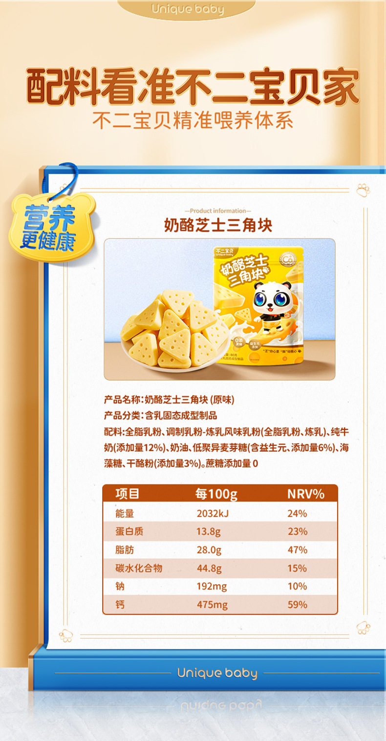 Fujibaby Cheese Triangular Blocks Children's Nutritional Healthy Snacks High Calcium High Protein Added Prebiotics