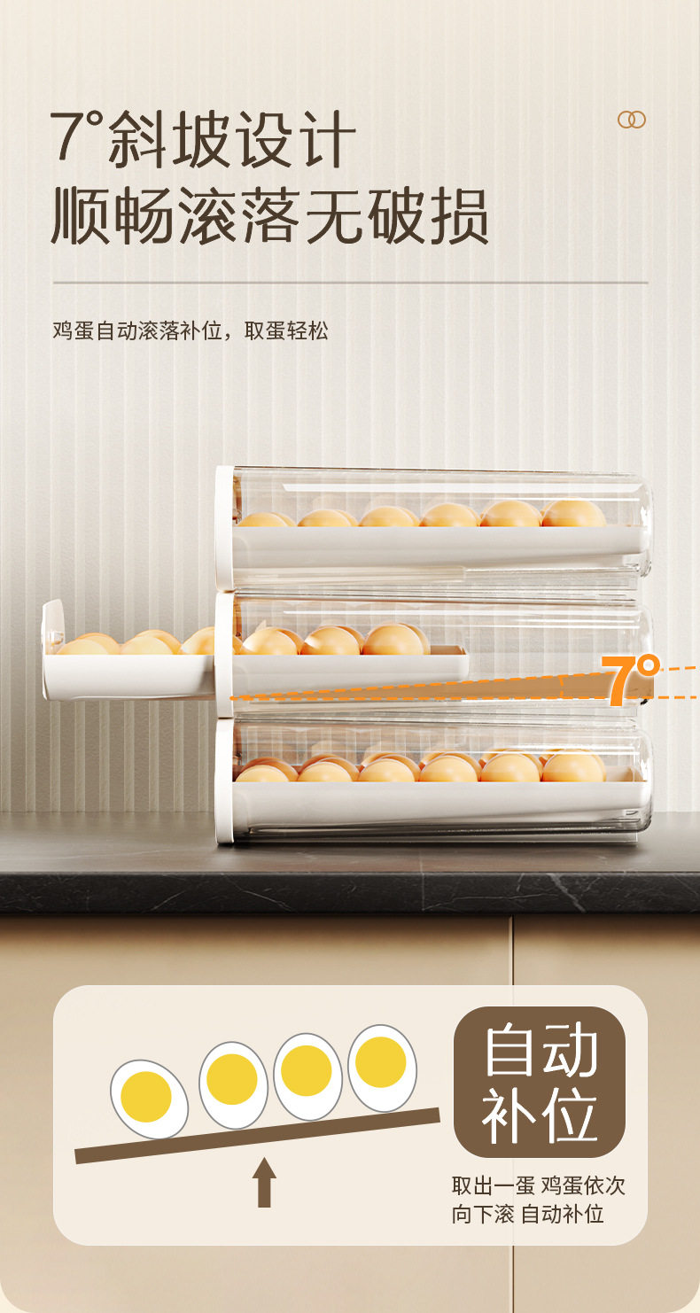 Dest rolling egg box automatic filling multi-layer large-capacity egg tray refrigerator side narrow storage egg-rolling device