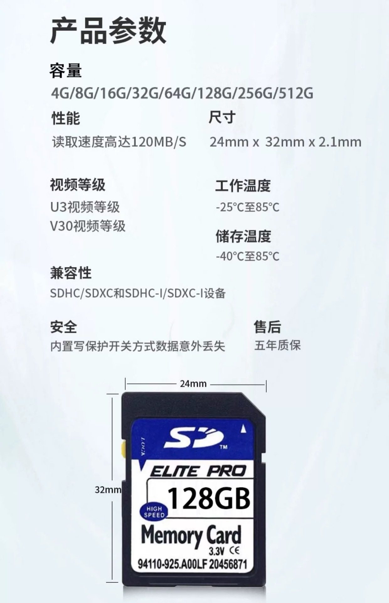 | Capacity | 256MB,512MB,1G,2GB,4GB,8GB,16GB,32GB,64GB,128G,256G,512G,1T |