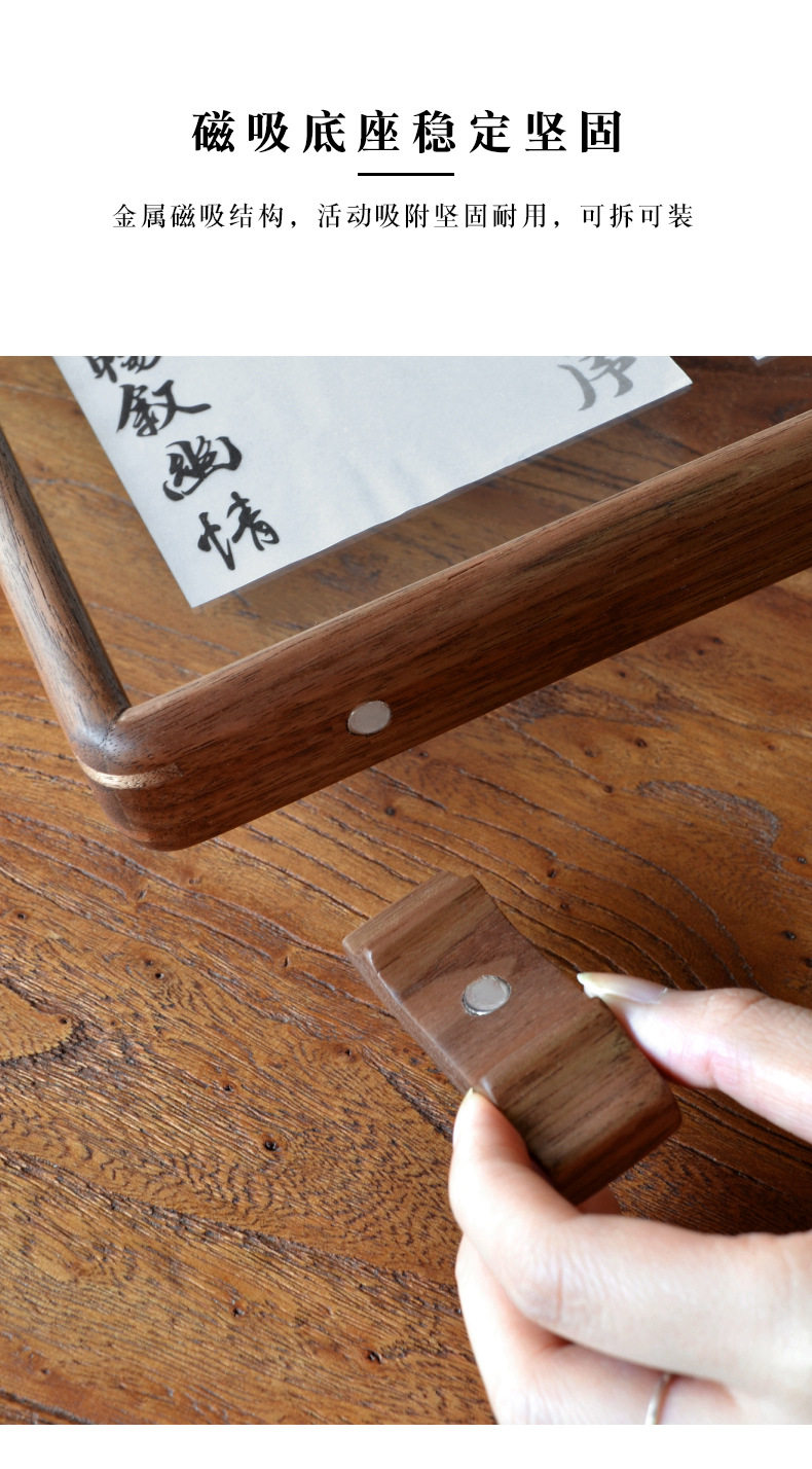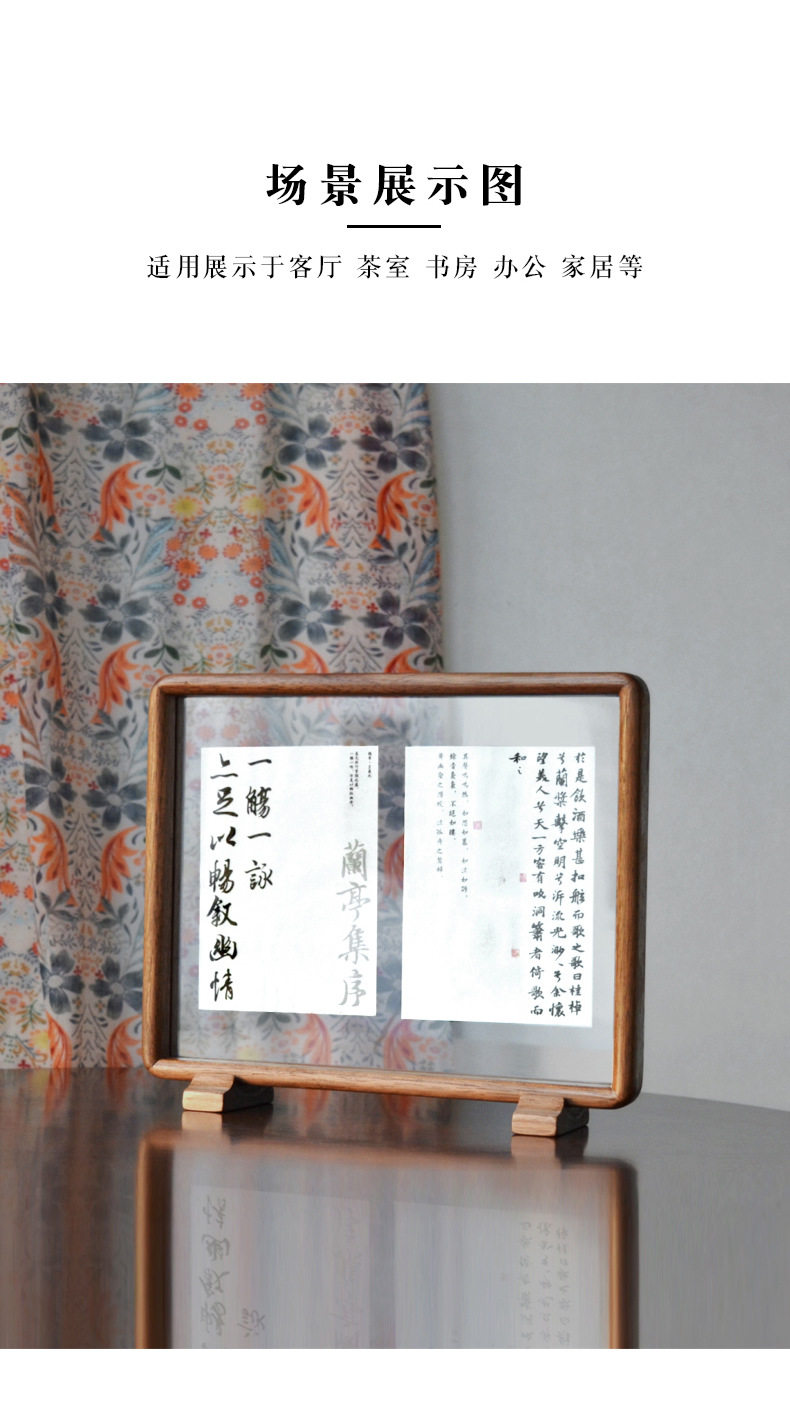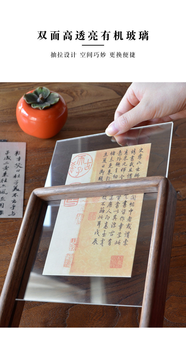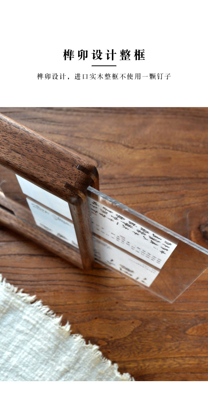 Double-Sided Black Walnut Rounded Corner Display Stand, Chinese-Style Retro A4/A3 Acrylic Frame Ornament, Handmade Mortise and Tenon Solid Wood Photo Frame