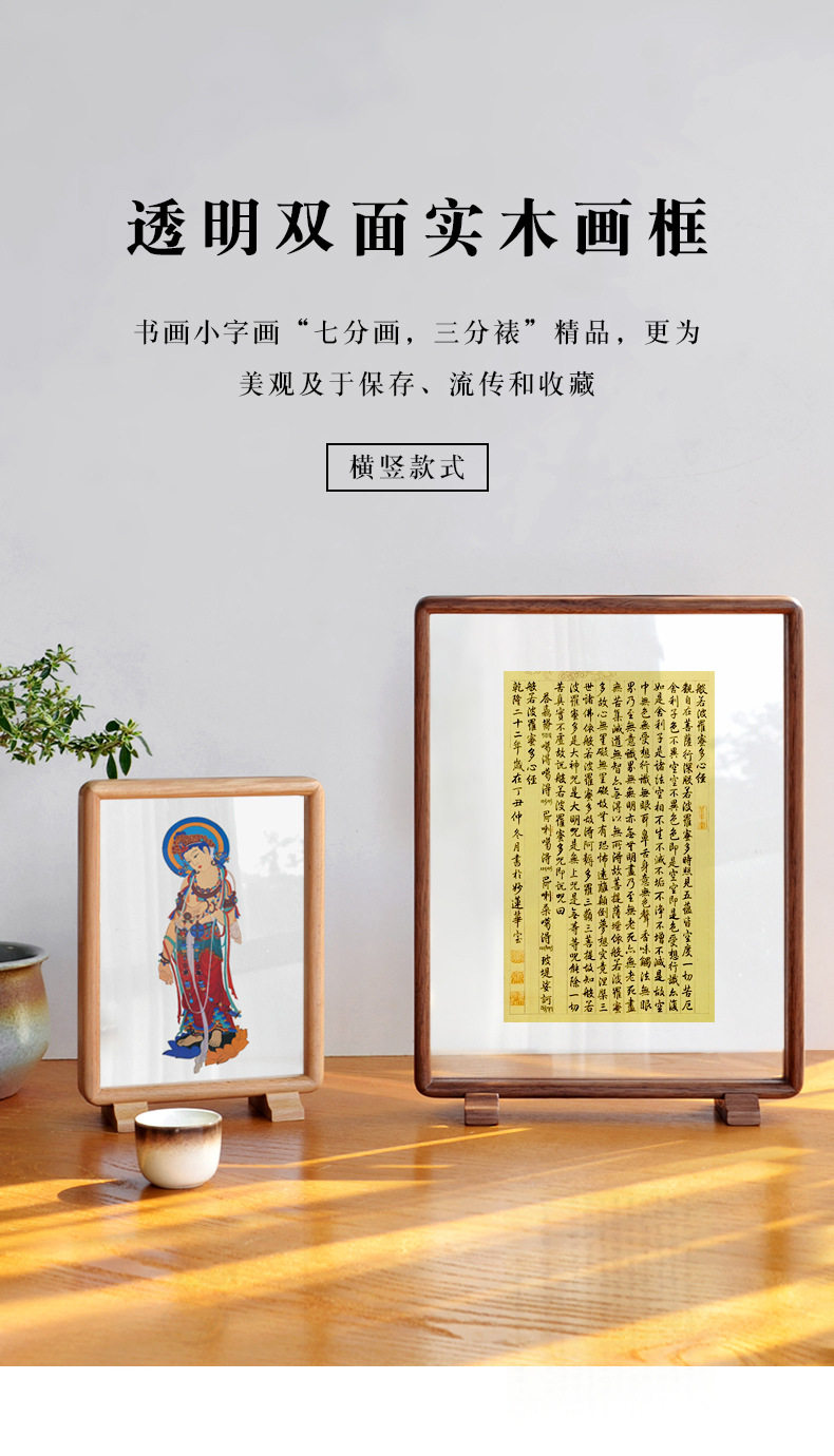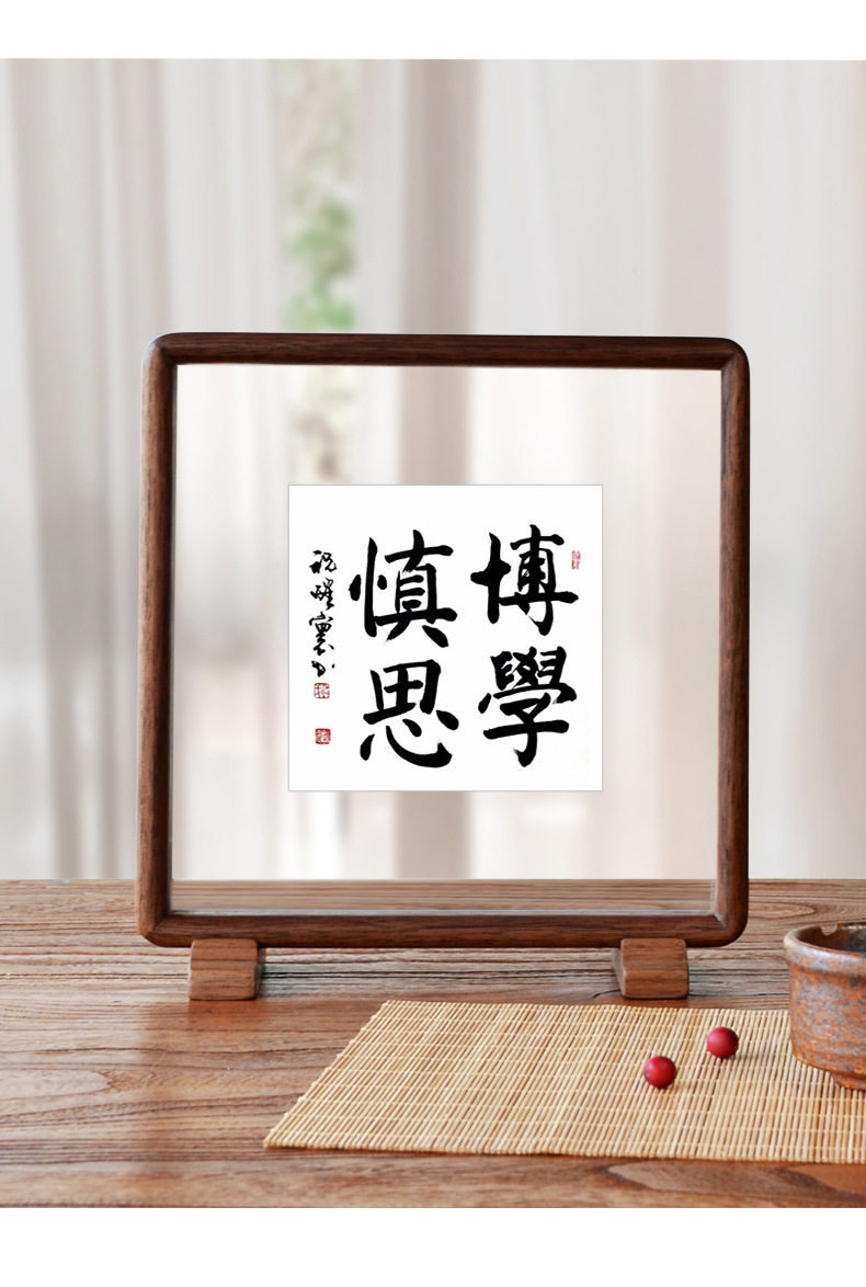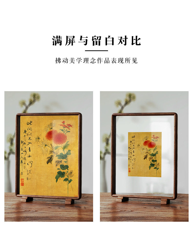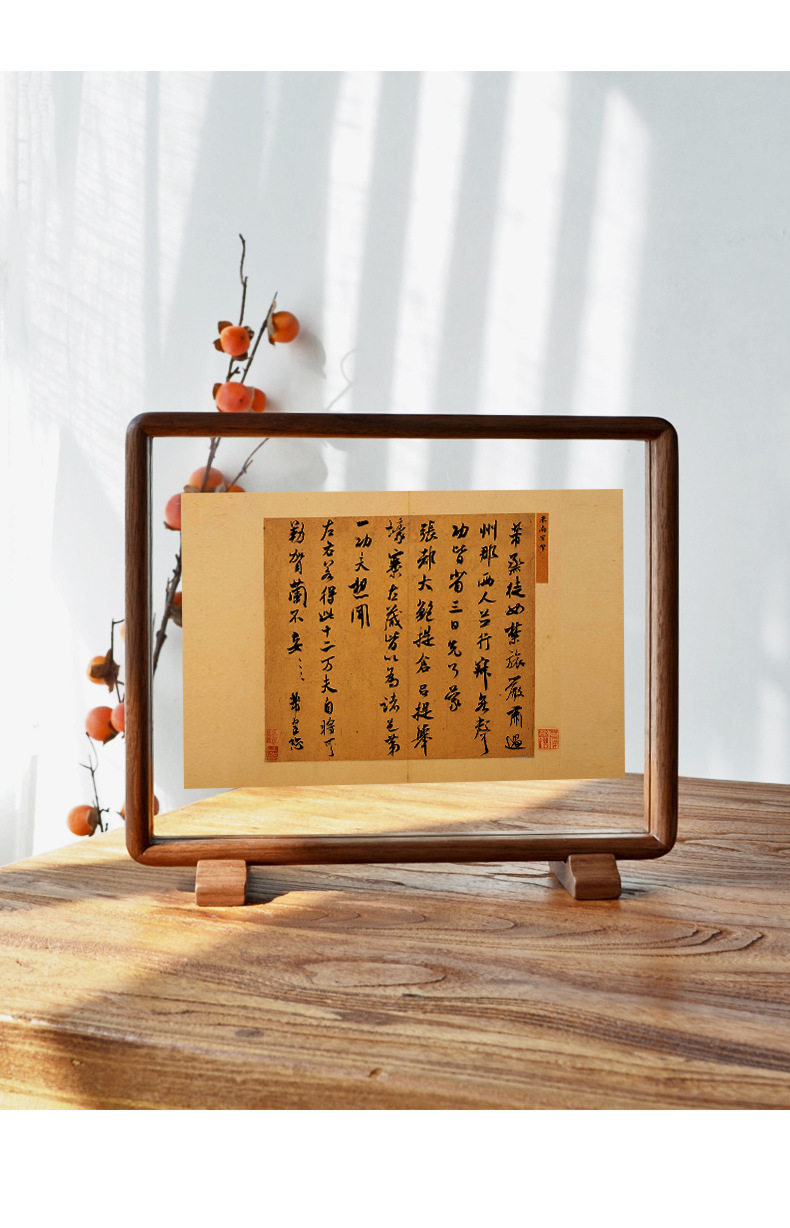 Double-Sided Black Walnut Rounded Corner Display Stand, Chinese-Style Retro A4/A3 Acrylic Frame Ornament, Handmade Mortise and Tenon Solid Wood Photo Frame