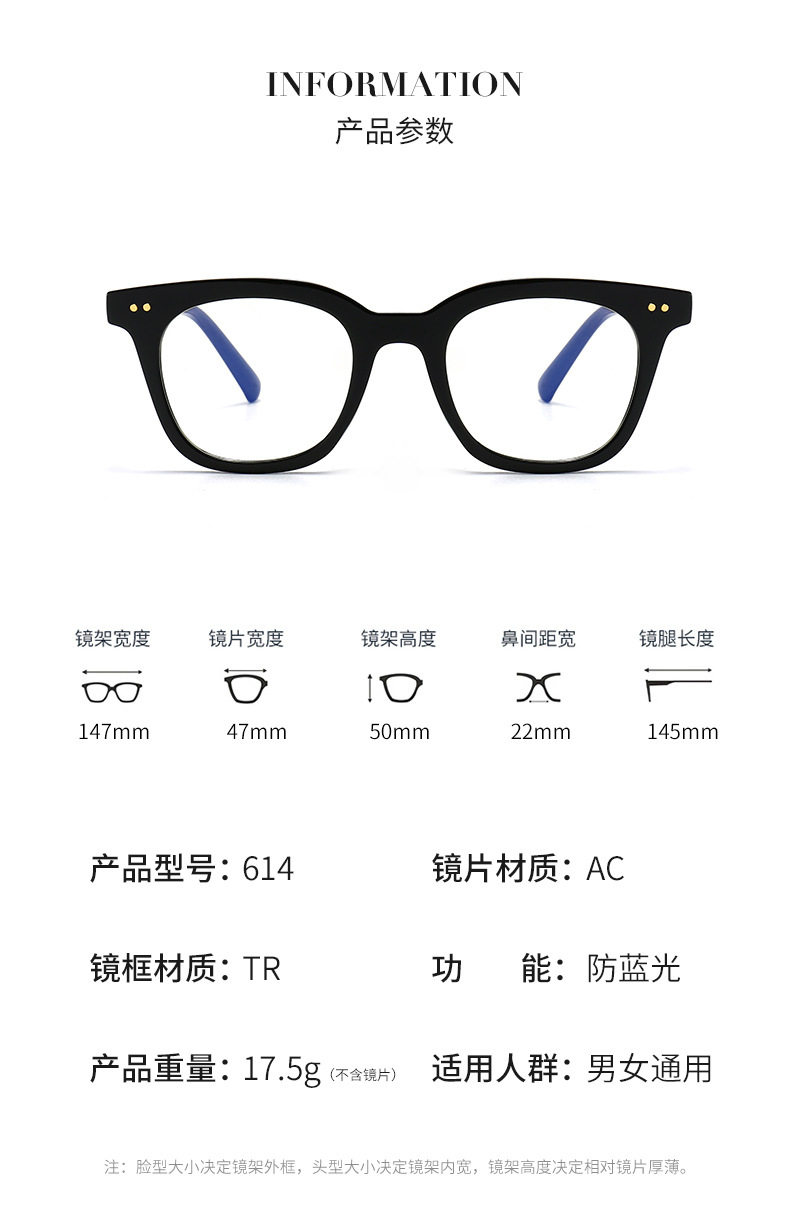 Flat Glasses Frame Decoration TR90 Ultra Light Fashion Korean Style Generous Unisex Full Frame Classic Retro Blue Light