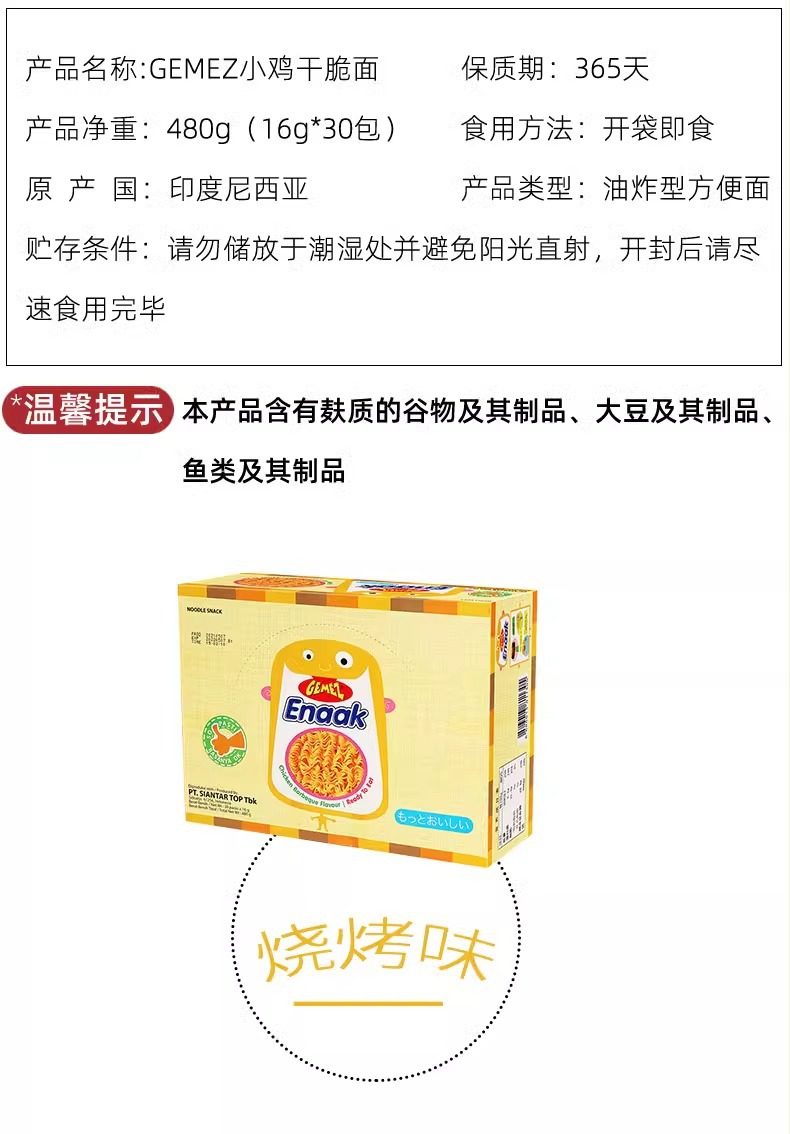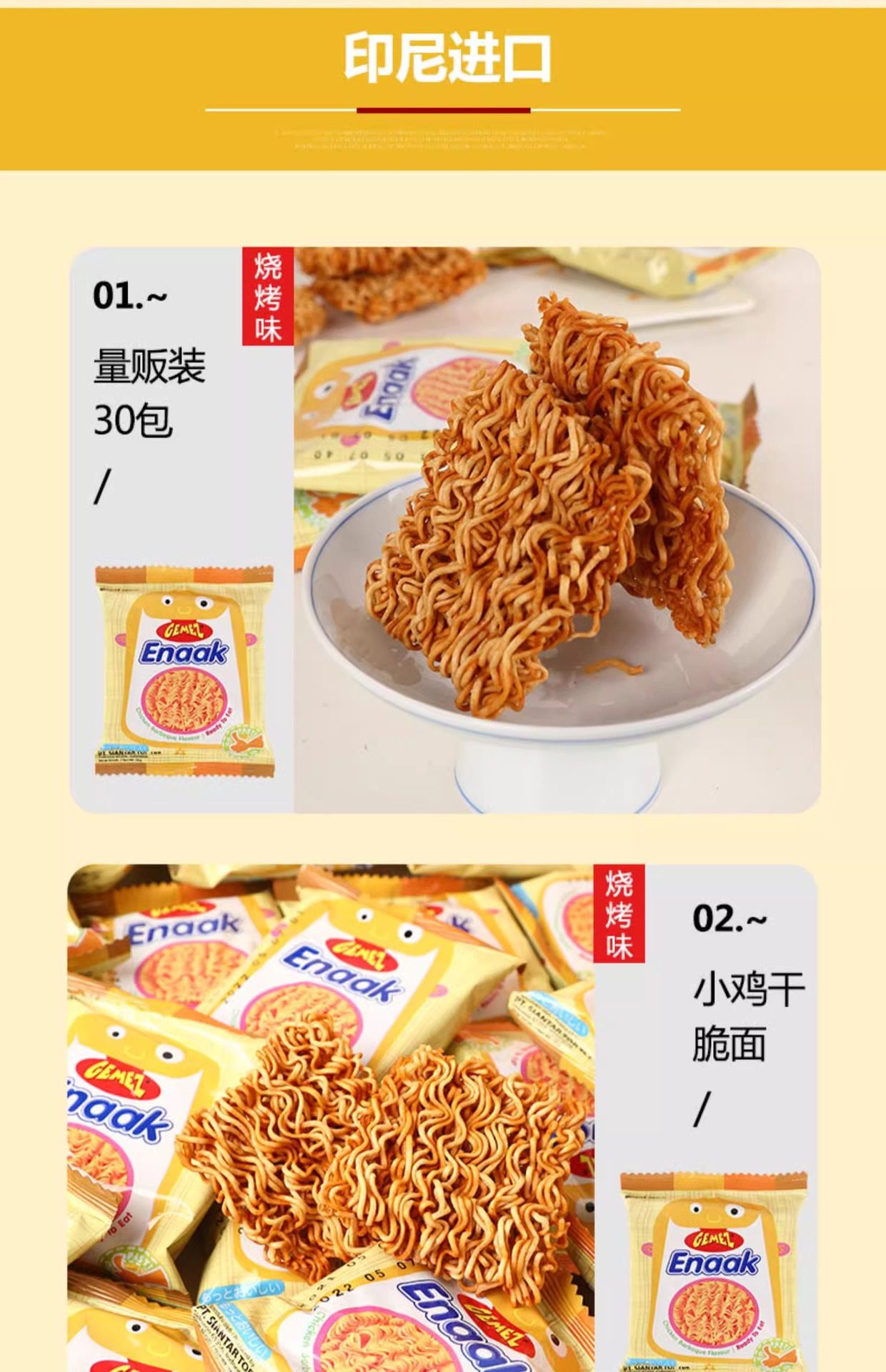 Gemez Indonesian Chicken Hot Crispy Noodles 30 Packs Full Box Convenient Ready-To-Eat Craving-Quenching Internet Celebrity Imported Crispy Noodles
