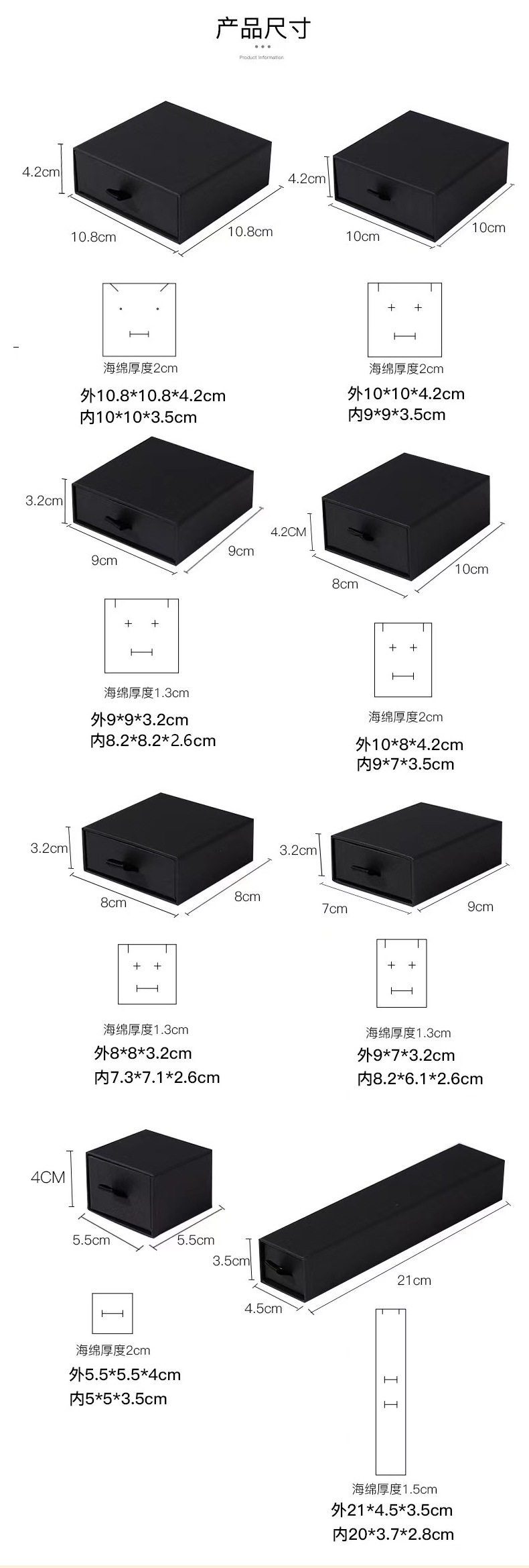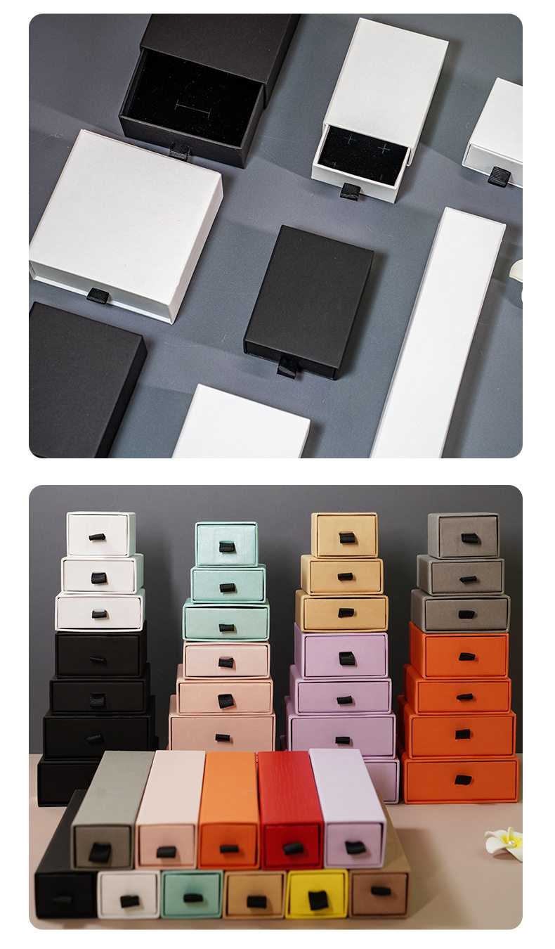 Drawer Jewelry Box Spot Manufacturer Jewelry Packaging Box Black Necklace Ring Pendant Brooch Box Can Be Printed with Logo