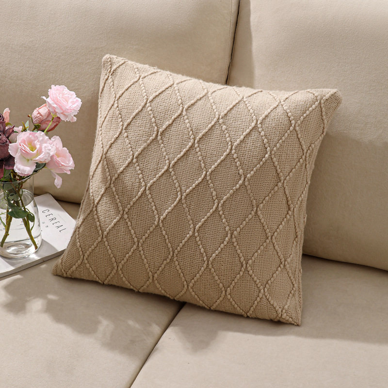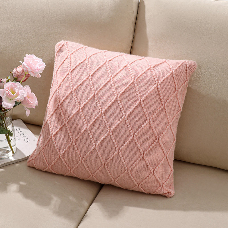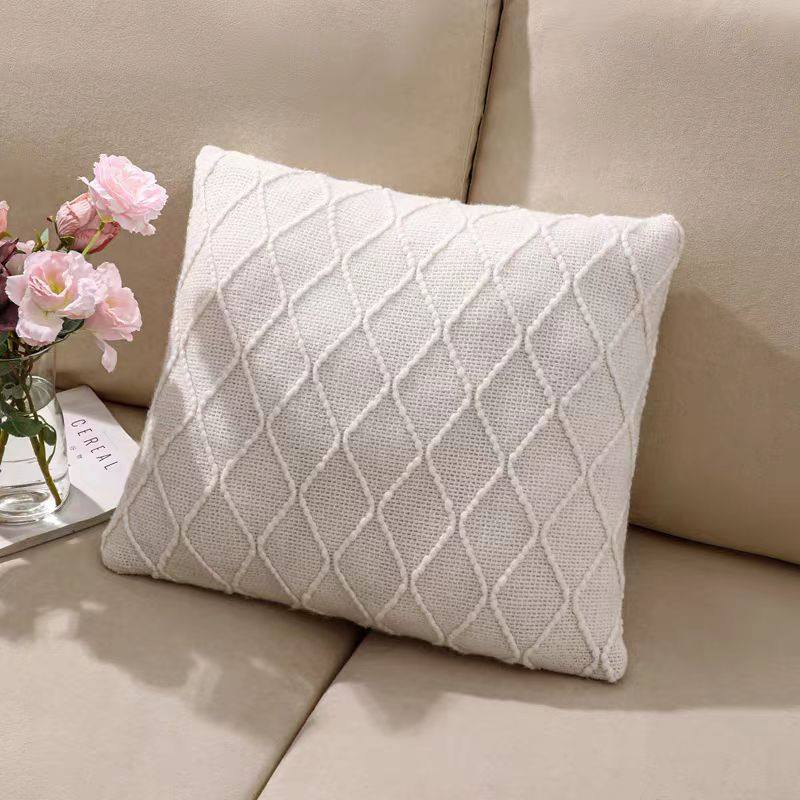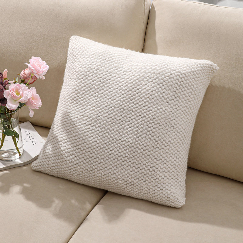 Nordic Solid Color Woven Model Room Knitted Pillow Living Room Sofa Decorative Cushion Plain Color Bedroom Wool Pillow Core