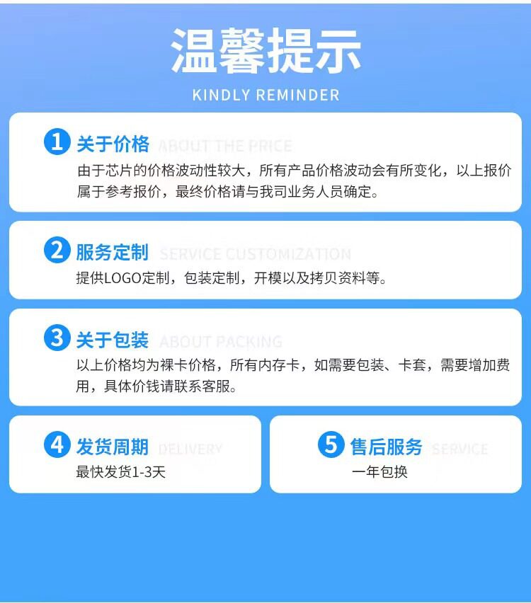 | Capacity | 16GB,16GB-High Speed Edition,32GB,32GB-High Speed Edition,64GB,64GB-High Speed Edition,128GB-High Speed Edition,256GB-High Speed Edition,512GB-High Speed Edition,8GB,8GB-High Speed Edition,4GB,4GB-High Speed Edition,1TB-High Speed Edition,1GB,2GB,1MB,16MB,32MB,64MB,128MB,256MB,512MB |