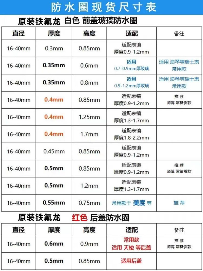 Watch front cover glass waterproof ring red 18-40 white sealing rubber ring I order RING accessories