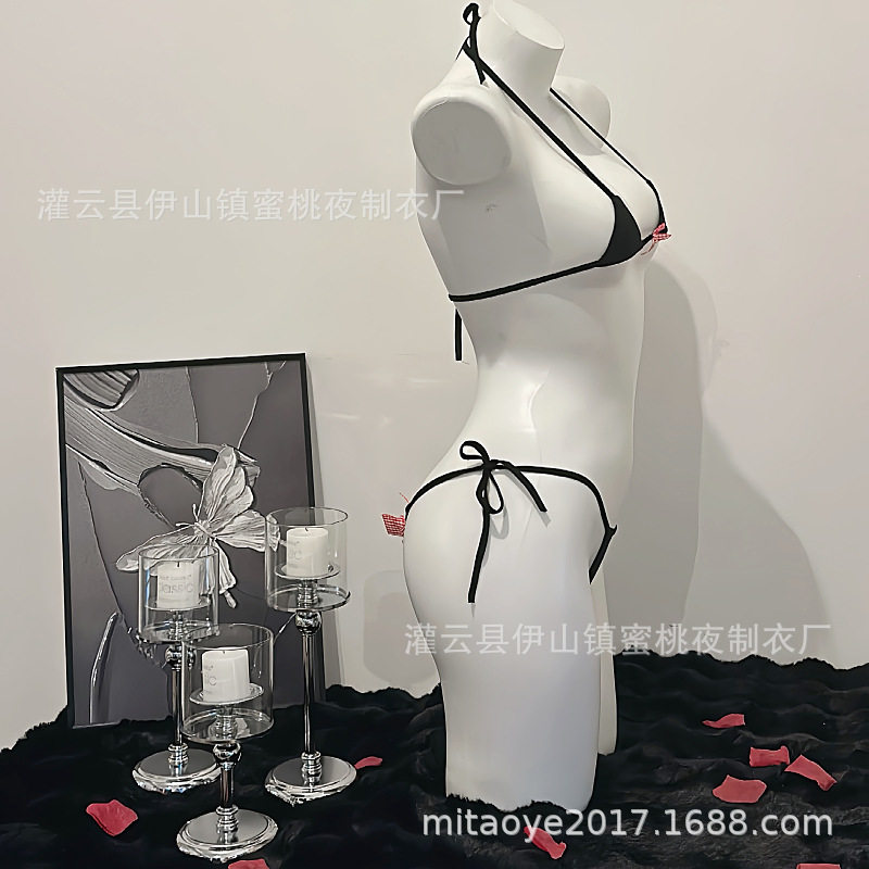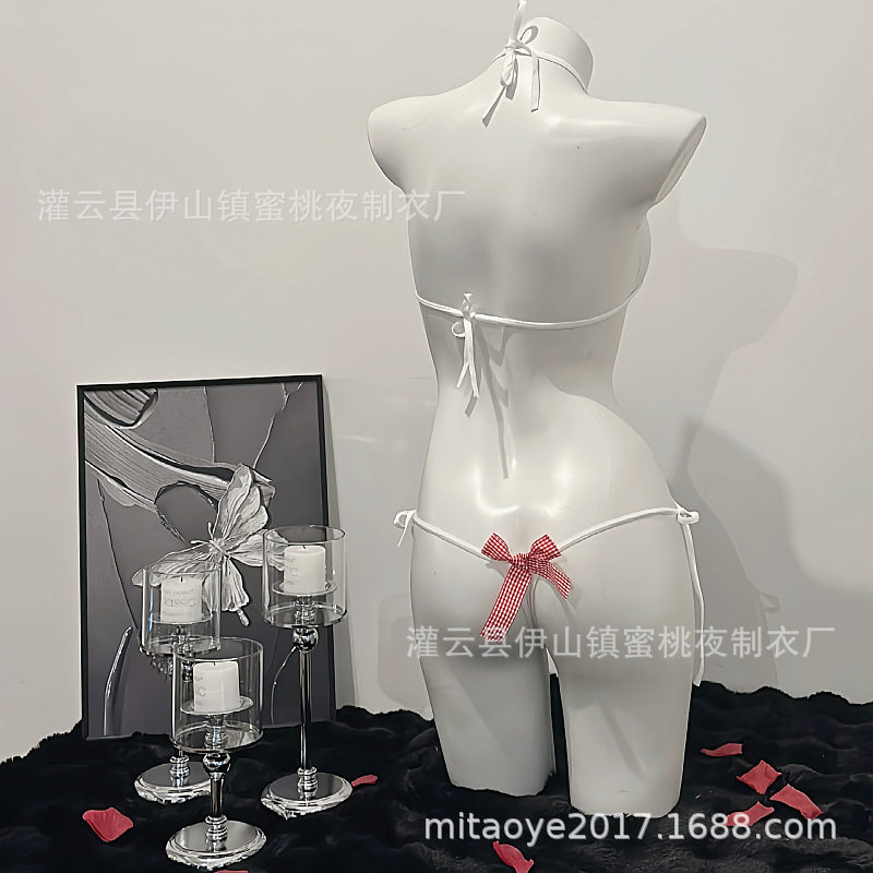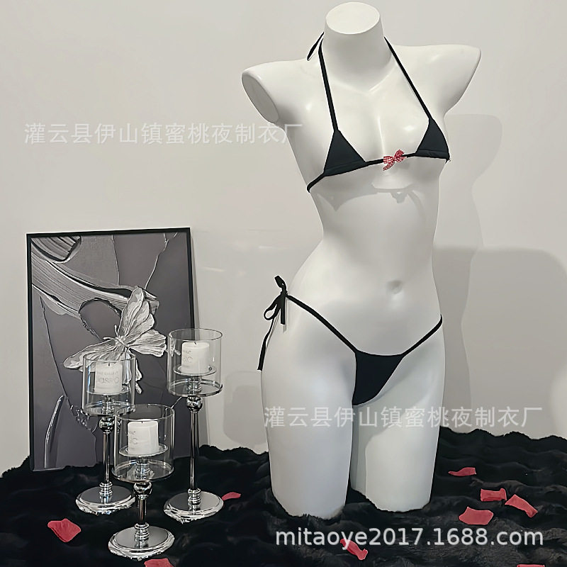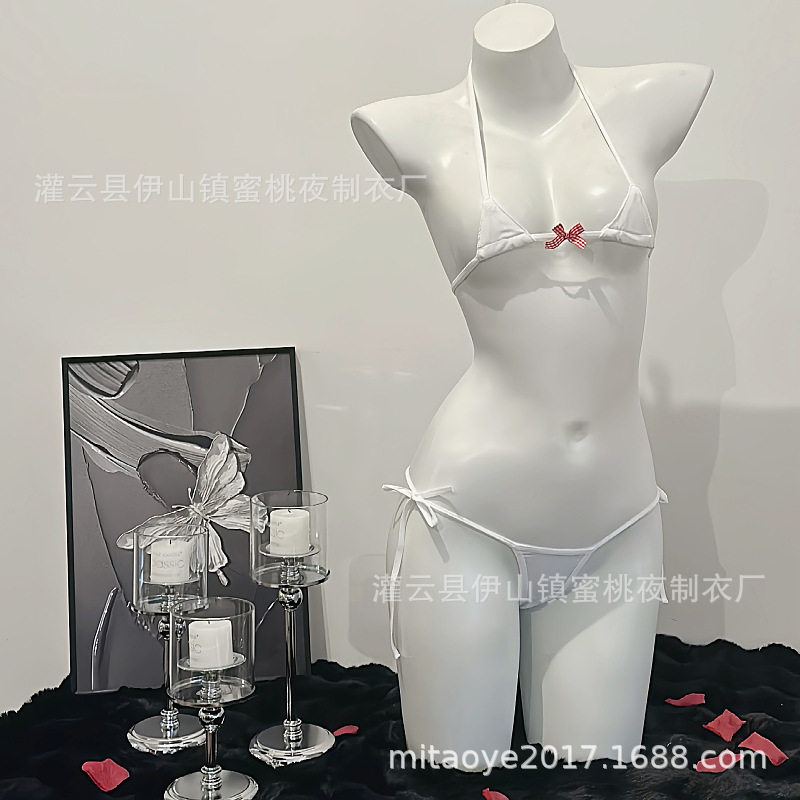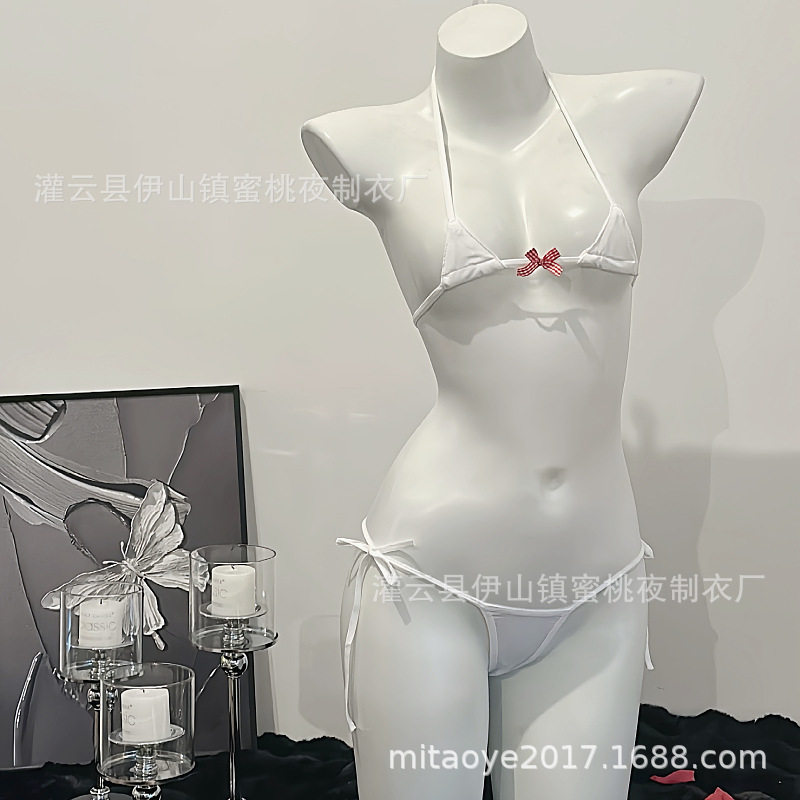 Sexy Lingerie, Sexy Three-Point Split Bikini Set, Hot Ice Silk Bow Tie Pajamas, Dropshipping