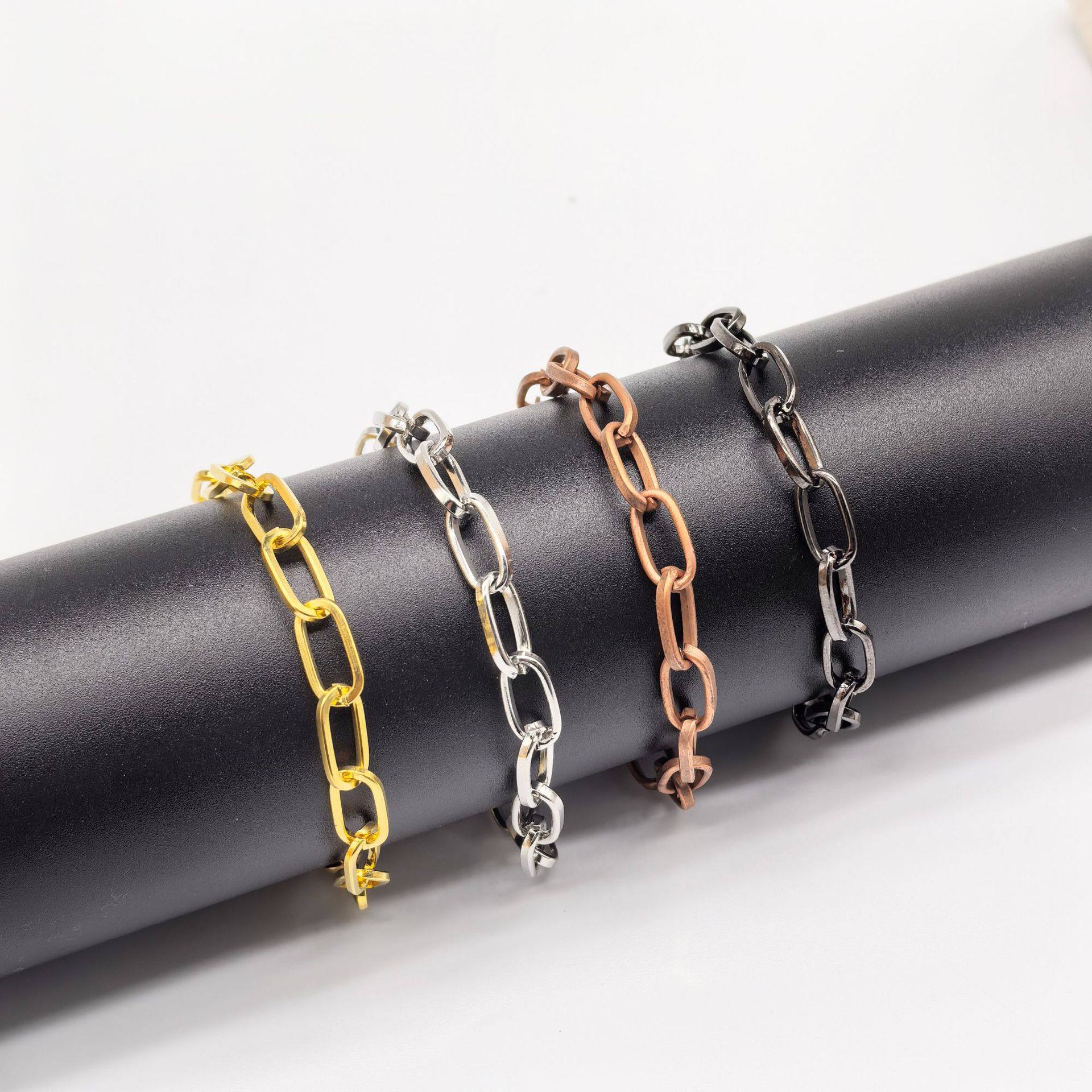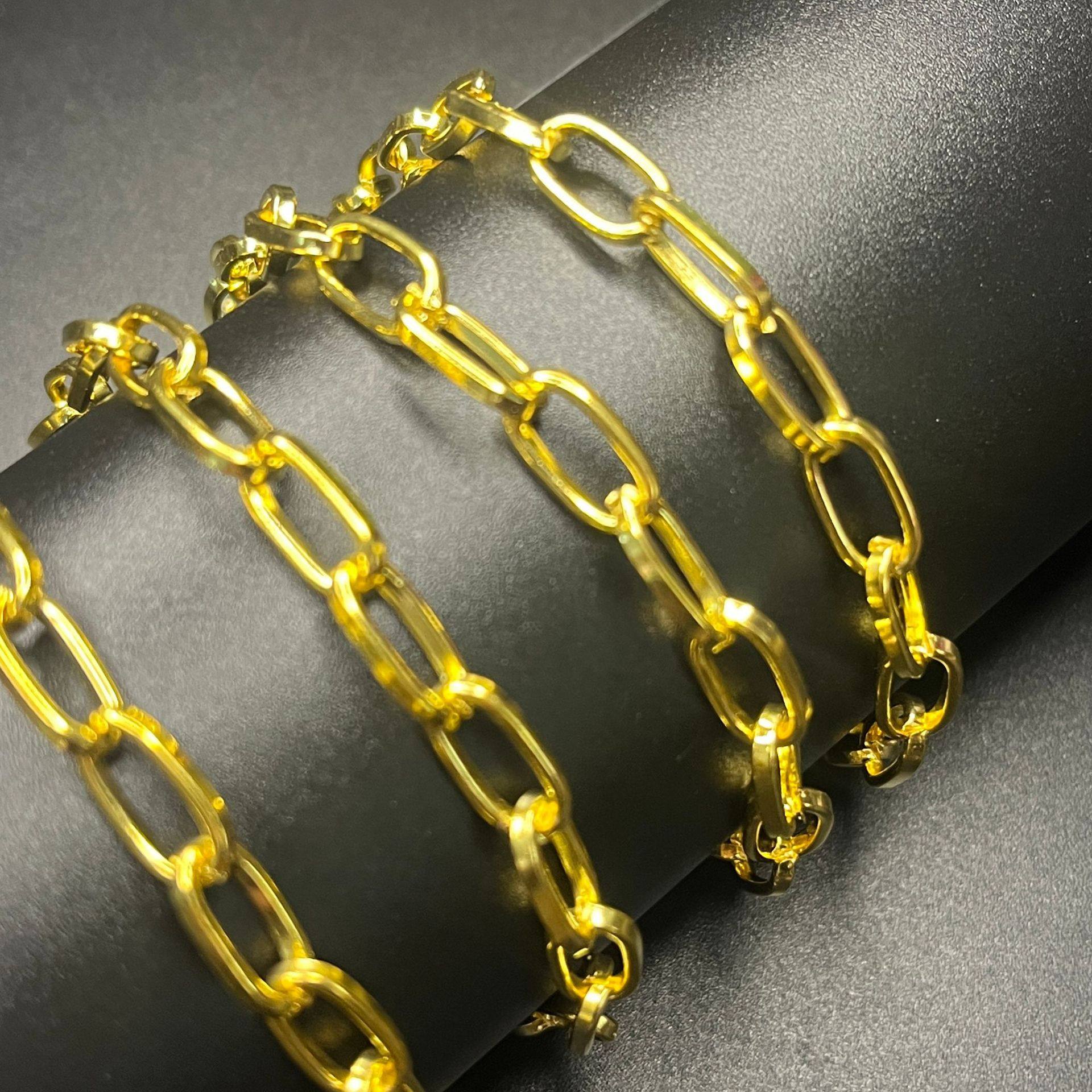 European and American Men and Women Ins Fashion Simple Versatile Bracelet Paper Clip Bracelet Rectangular Chain Hip Hop Cuban Chain