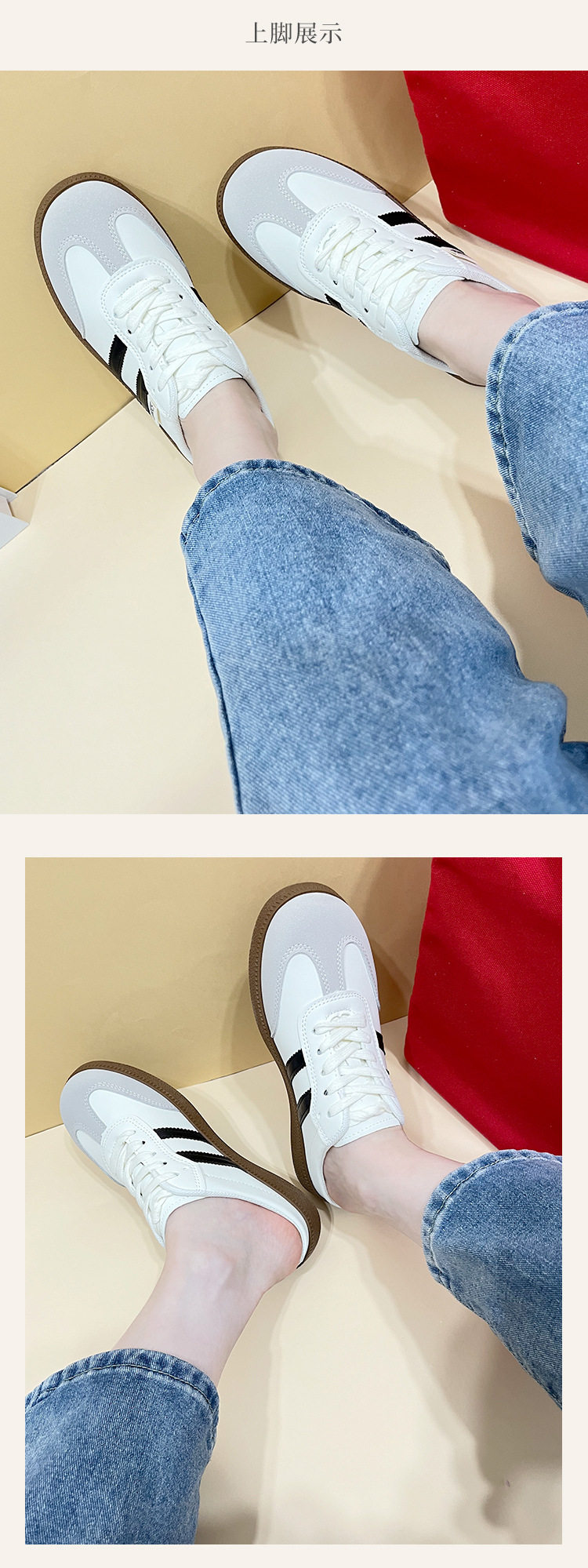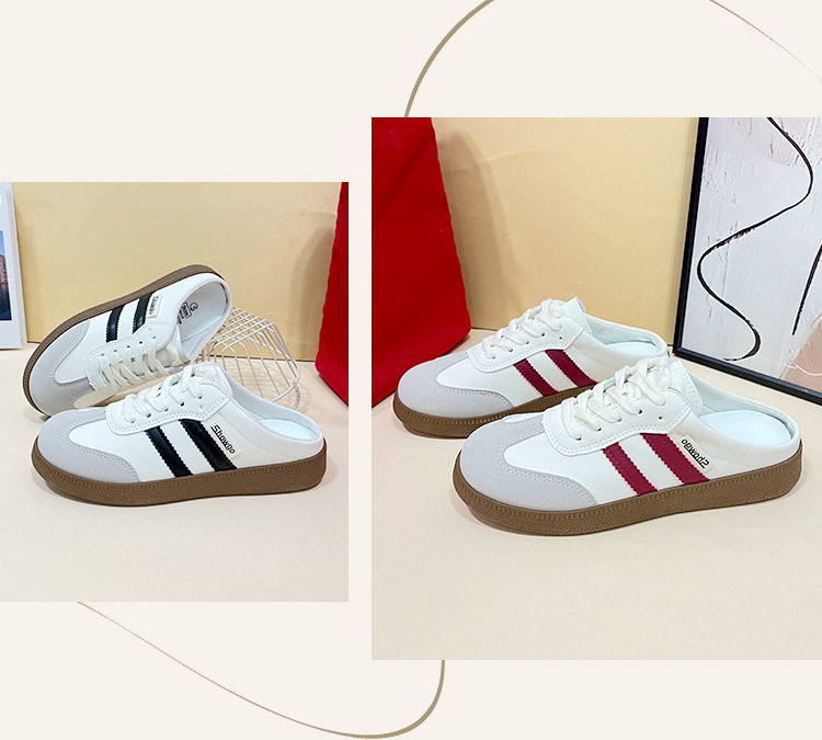 Baotou Half Slippers for Women 2023 Summer New Korean Style Color-Blocked Flat-Heeled Lazy Shoes Casual Slip-On Moral Training Flats for Women