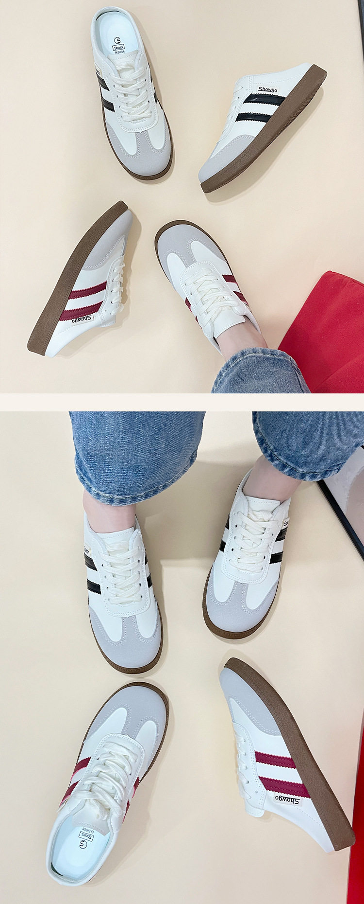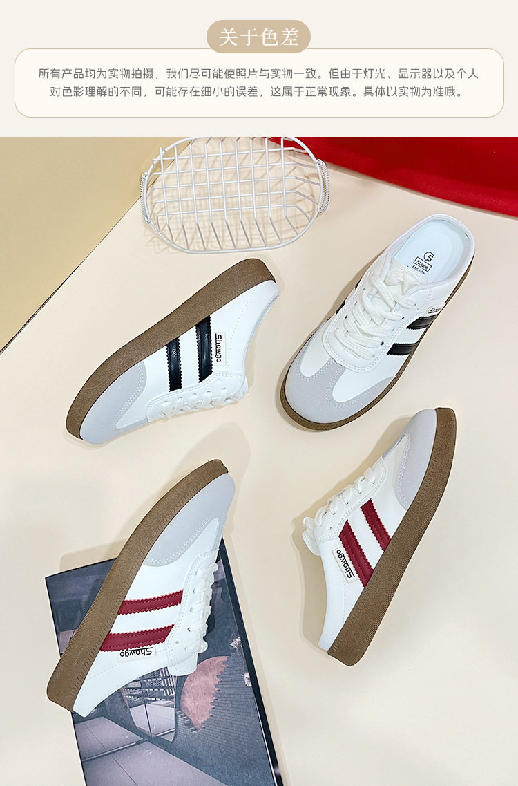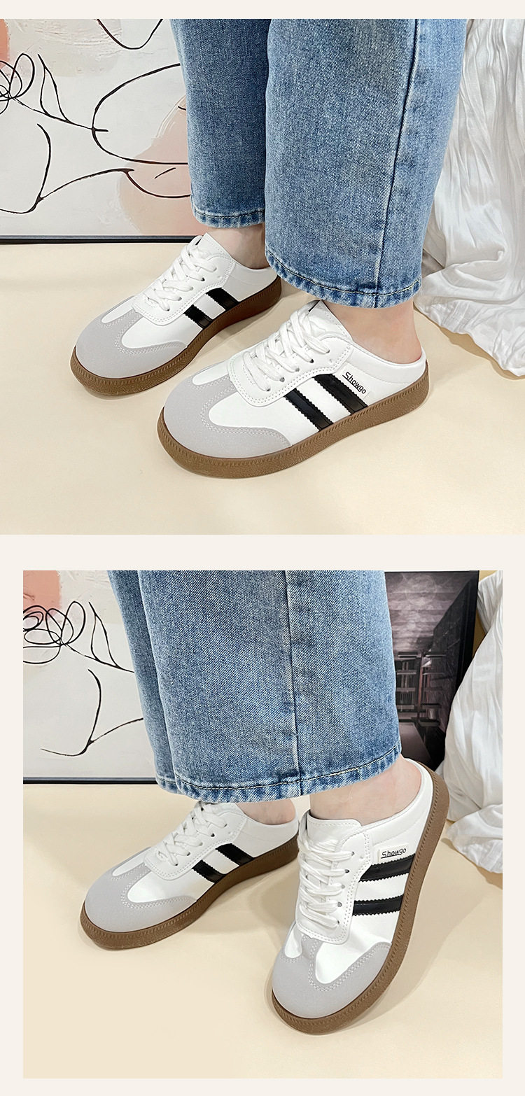 Baotou Half Slippers for Women 2023 Summer New Korean Style Color-Blocked Flat-Heeled Lazy Shoes Casual Slip-On Moral Training Flats for Women