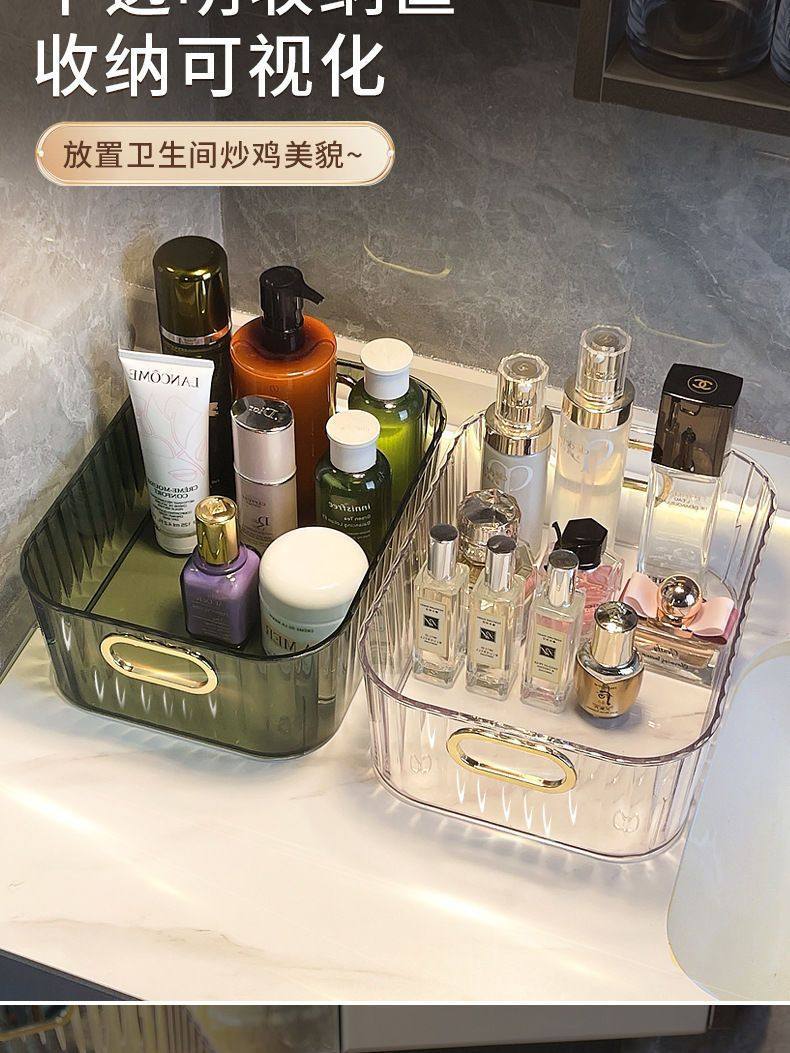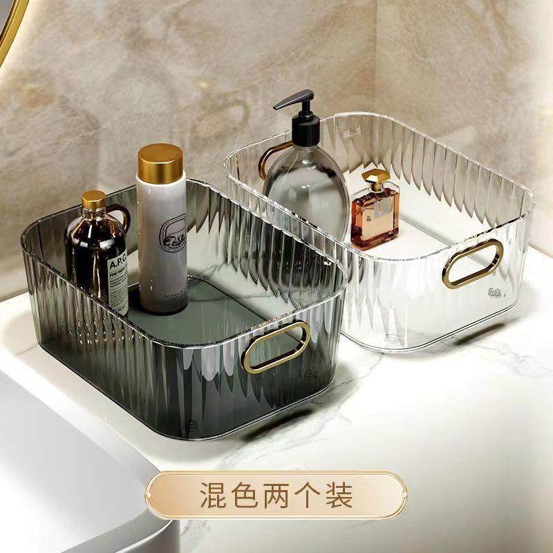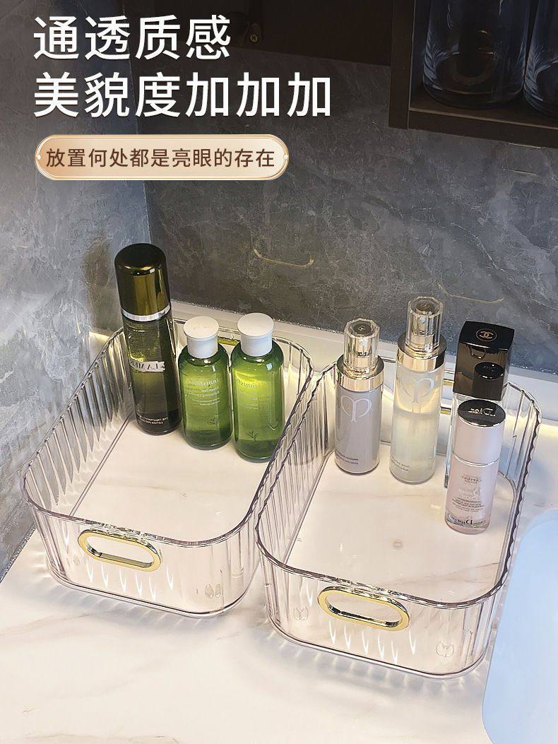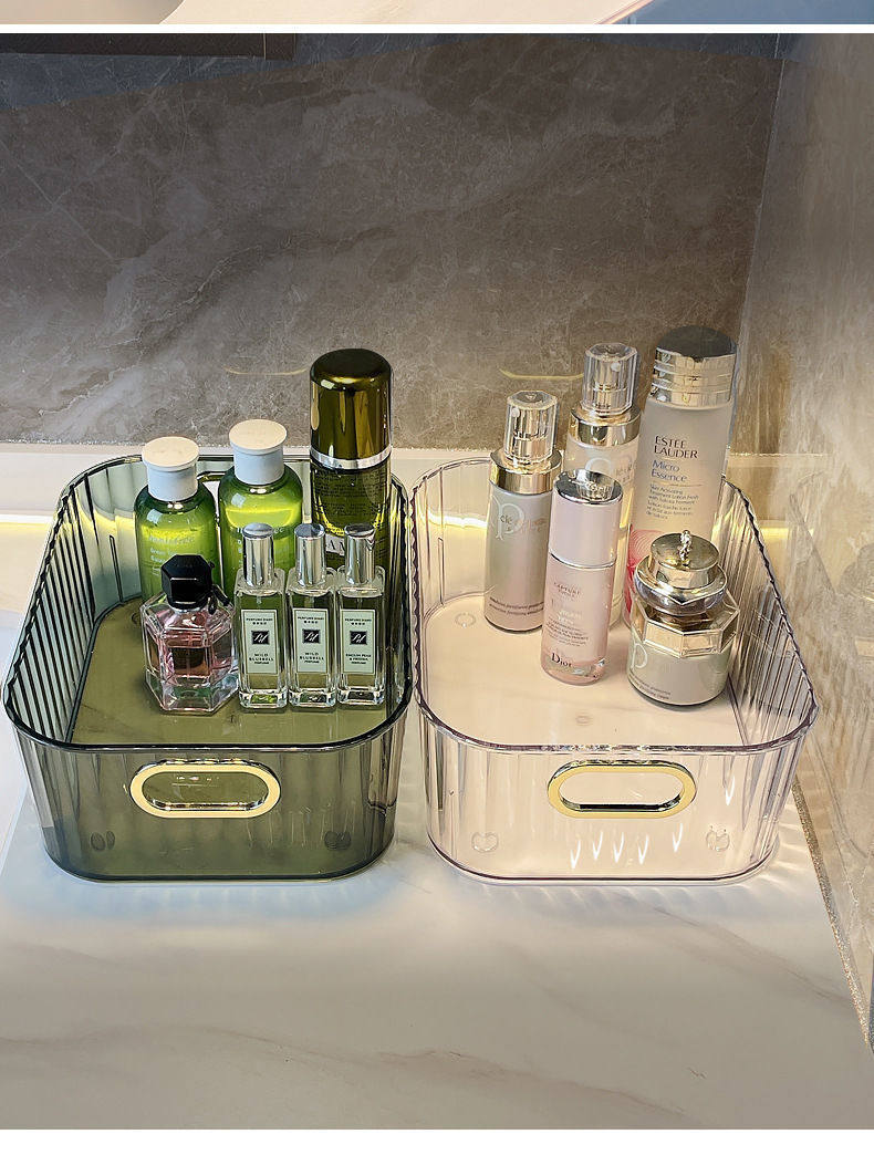 Light luxury PET desktop cosmetics storage box acrylic bedroom clothing sundries coffee table snacks storage basket wholesale