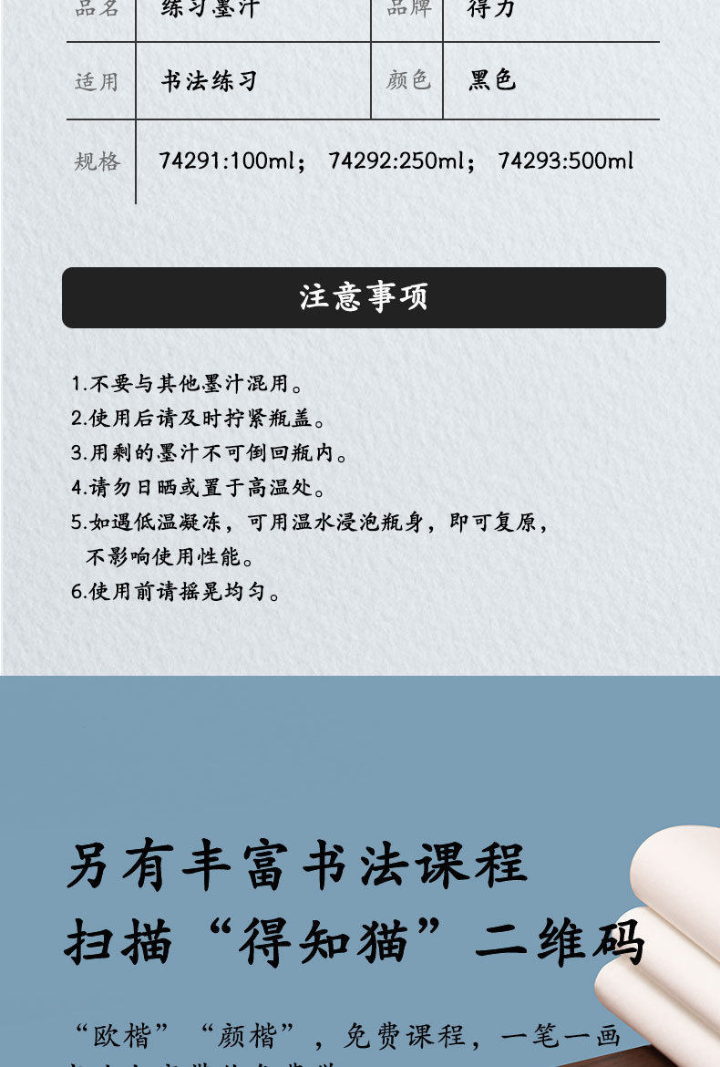 Deli 74292 calligraphy dipped in ink 250ml ink student calligraphy practice ink beginner practice ink wholesale