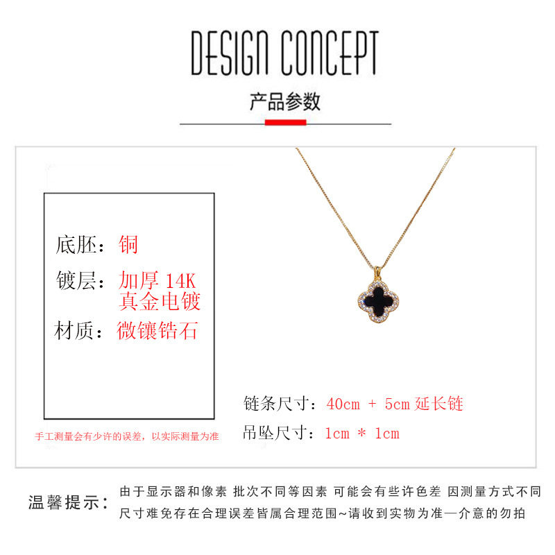 | Color | Zircon double-sided four-leaf flower necklace (thick gold plating) |