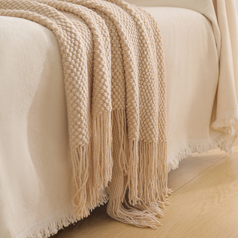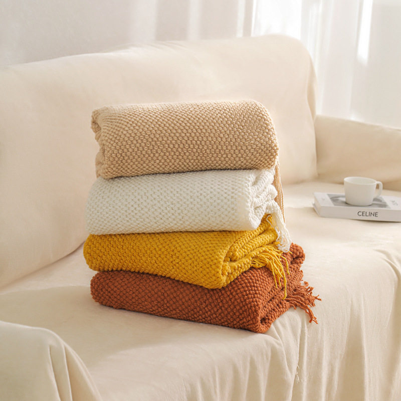 Scandinavian Style Pure Color Warp Knitted Tassel Knitted Blanket B&B Decorative Bedside Towel Cover Blanket Office Sofa Nap Blanket