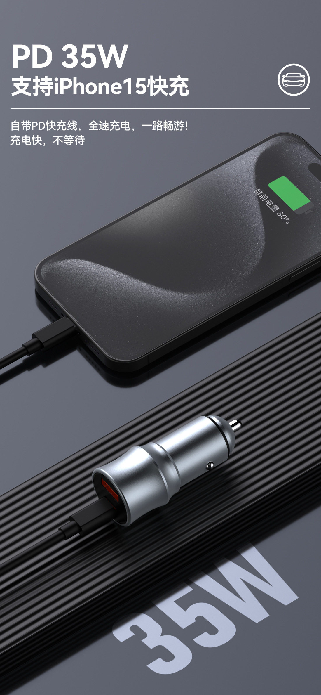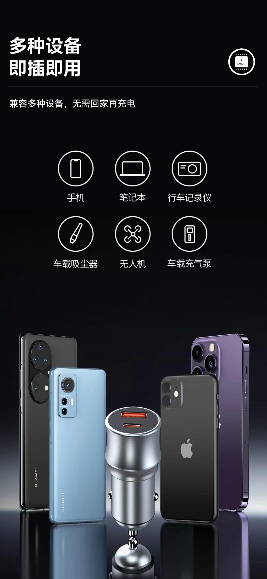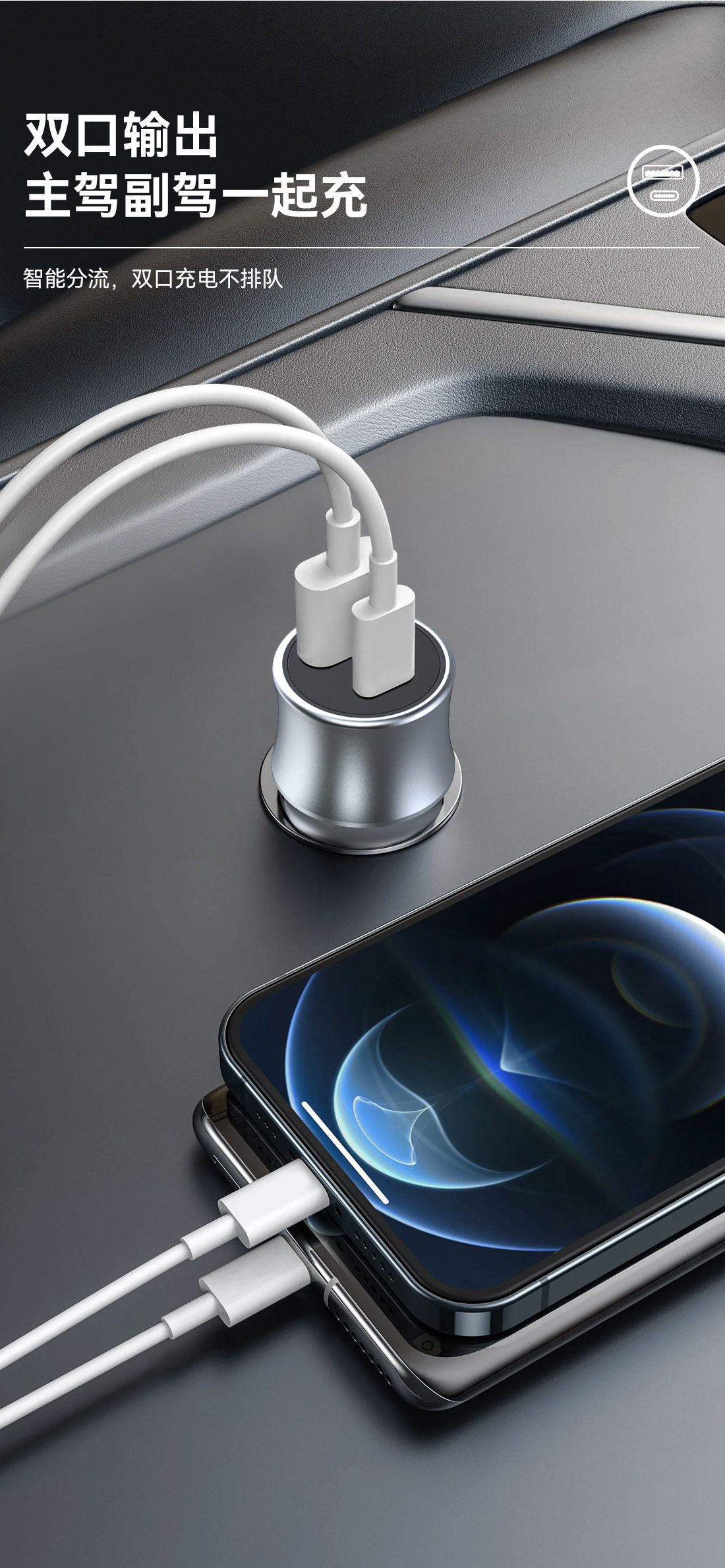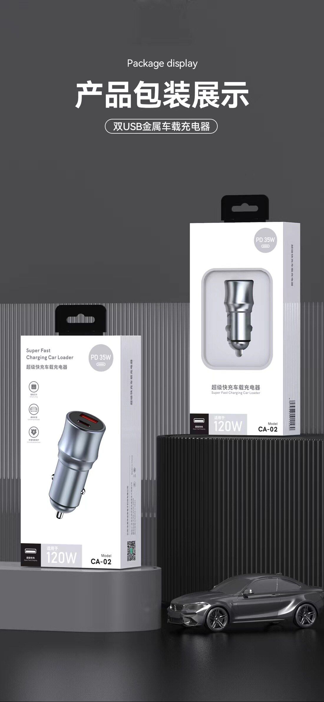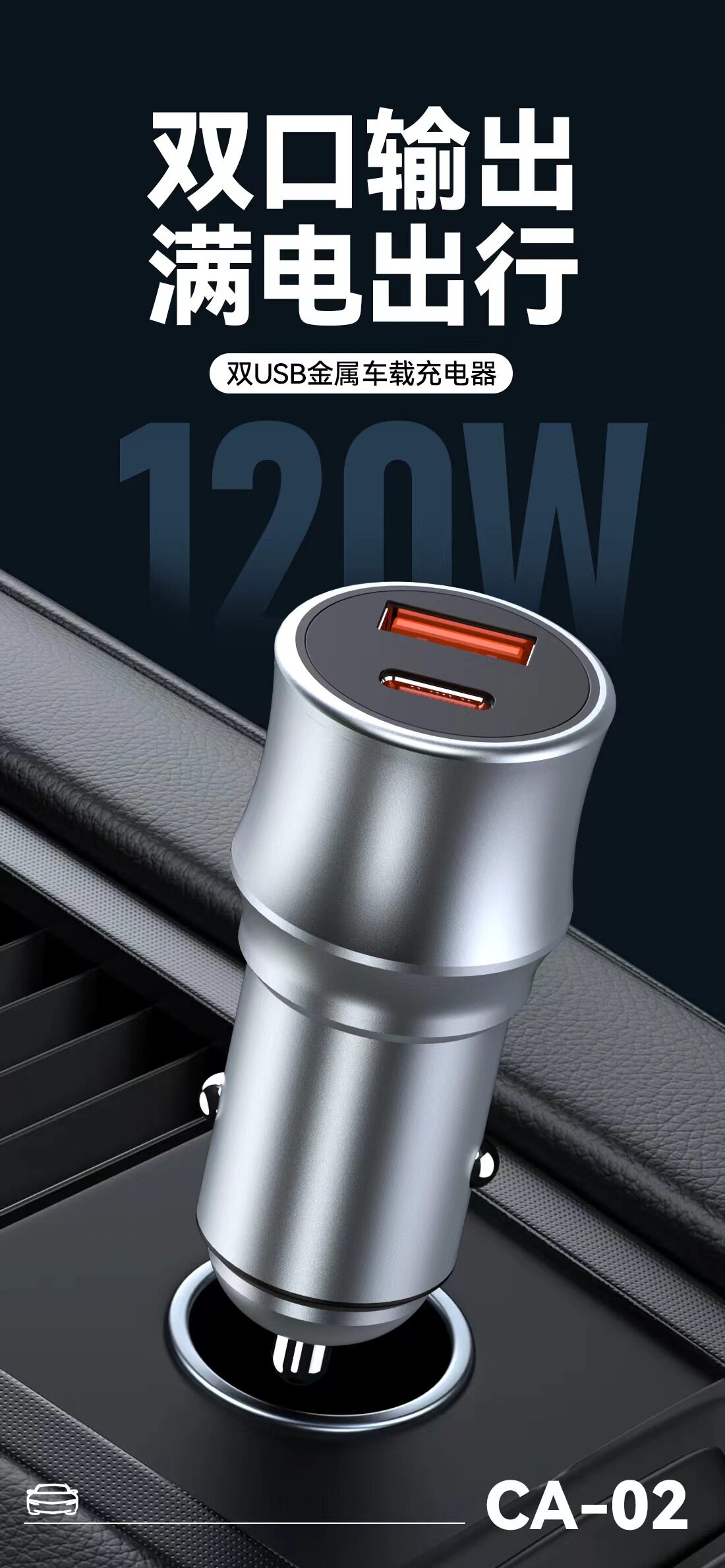Metal A C Fast Charge 120W Car Charger Head for Huawei OPPO Apple Xiaomi Fast Charge Car Charger