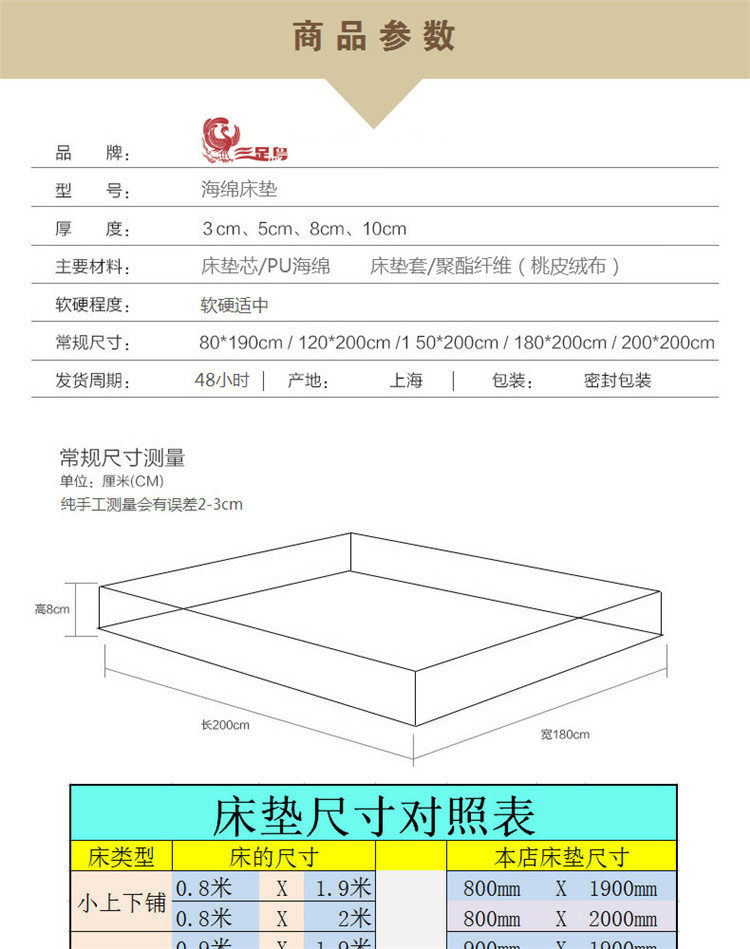 | Color | Tuhao gold 3cm thick-moderate soft soft but not collapse,Tuhao gold 5cm thick-moderate soft soft without collapse,Tuhao gold 8cm thick-moderate soft soft but not collapse,Tuhao gold 10cm thick-moderate soft soft but not collapse,Silver gray 3cm thick-moderate soft soft but not collapse,Silver gray 5cm thick-moderate soft soft but not collapse,Silver gray 8cm thick-moderate soft soft but not collapse,Silver gray 10cm thick-moderate soft soft but not collapse,Tuhao Gold 3cm Thick-Comfortable Density Medium Hard,Tuhao gold 5cm thick-comfortable density is medium hard,Tuhao gold 8cm thick-comfortable density is medium hard,Tuhao gold 10cm thick-comfortable density is medium hard,Silver gray 3cm thick-comfortable density is medium hard,Silver gray 5cm thick-comfortable density is medium hard,Silver gray 8cm thick-comfortable density is medium hard,Silver gray 10cm thick-comfortable density is medium hard,Light yellow cloth cover [hardened and strengthened] 3CM thick and hard,Light yellow cloth cover [plus hard reinforcement] 5CM thick hard but not hard,Light yellow cloth cover [plus hard reinforcement] 8CM thick hard but not hard,Light yellow cloth cover [plus hard reinforcement] 10CM thick hard but not hard,Silver gray cloth cover [plus hard reinforcement] 3CM thick hard but not hard,Silver gray cloth cover [plus hard reinforcement] 5CM thick hard but not hard,Silver gray cloth cover [plus hard reinforcement] 8CM thick hard but not hard,Silver gray cloth cover [plus hard reinforcement] 10CM thick hard but not hard |