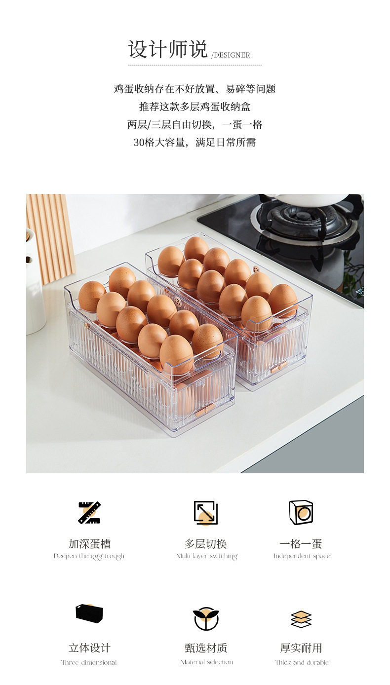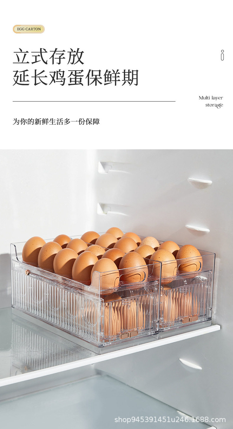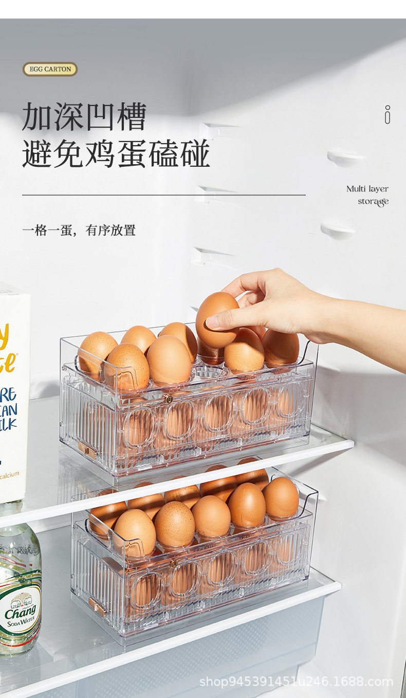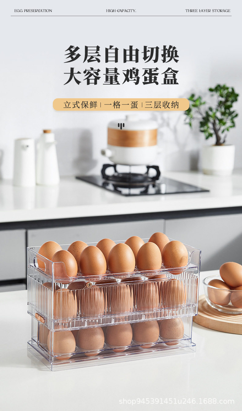 Transparent Egg Storage Box Refrigerator Side Door Multi-Layer Storage Rack Large Capacity Kitchen Food-Grade Egg Tray Storage Organizer
