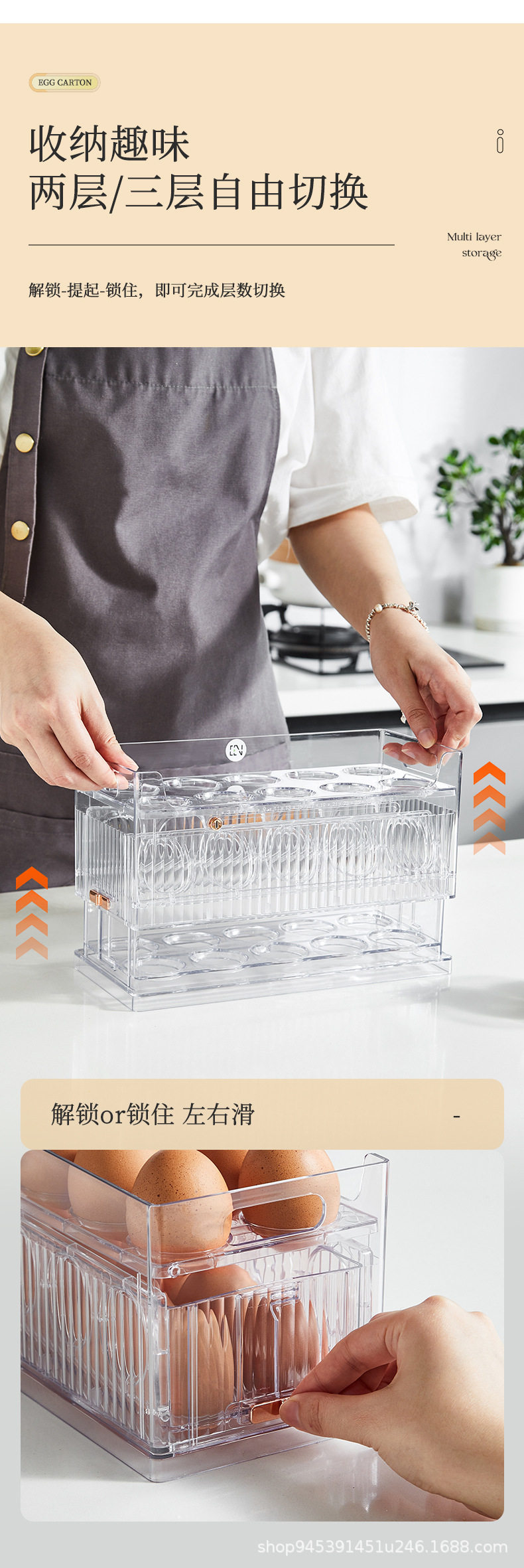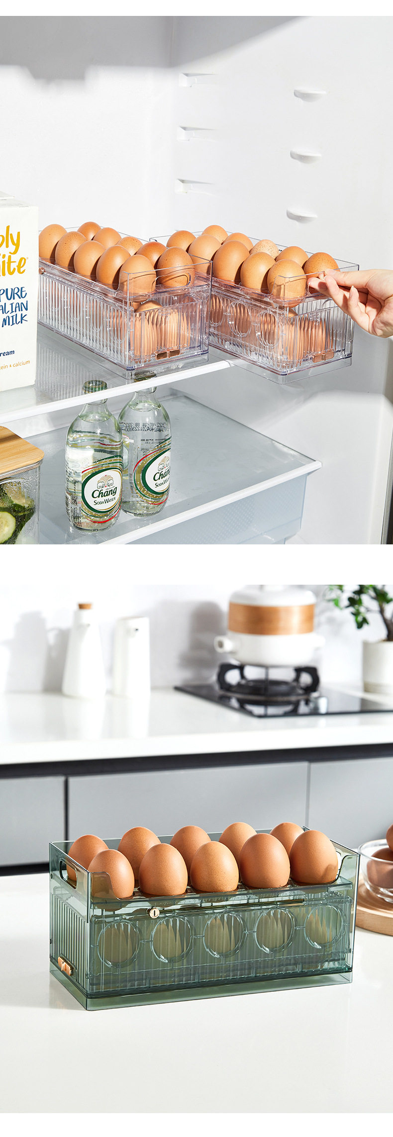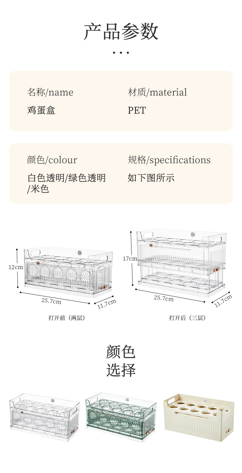 Transparent Egg Storage Box Refrigerator Side Door Multi-Layer Storage Rack Large Capacity Kitchen Food-Grade Egg Tray Storage Organizer