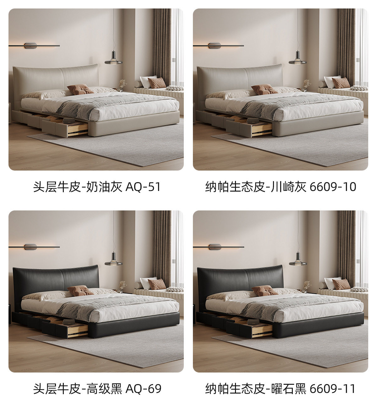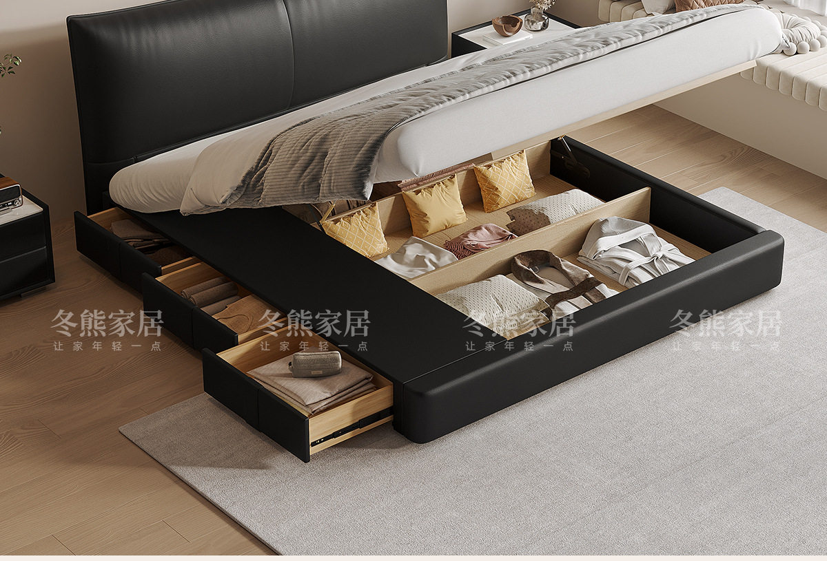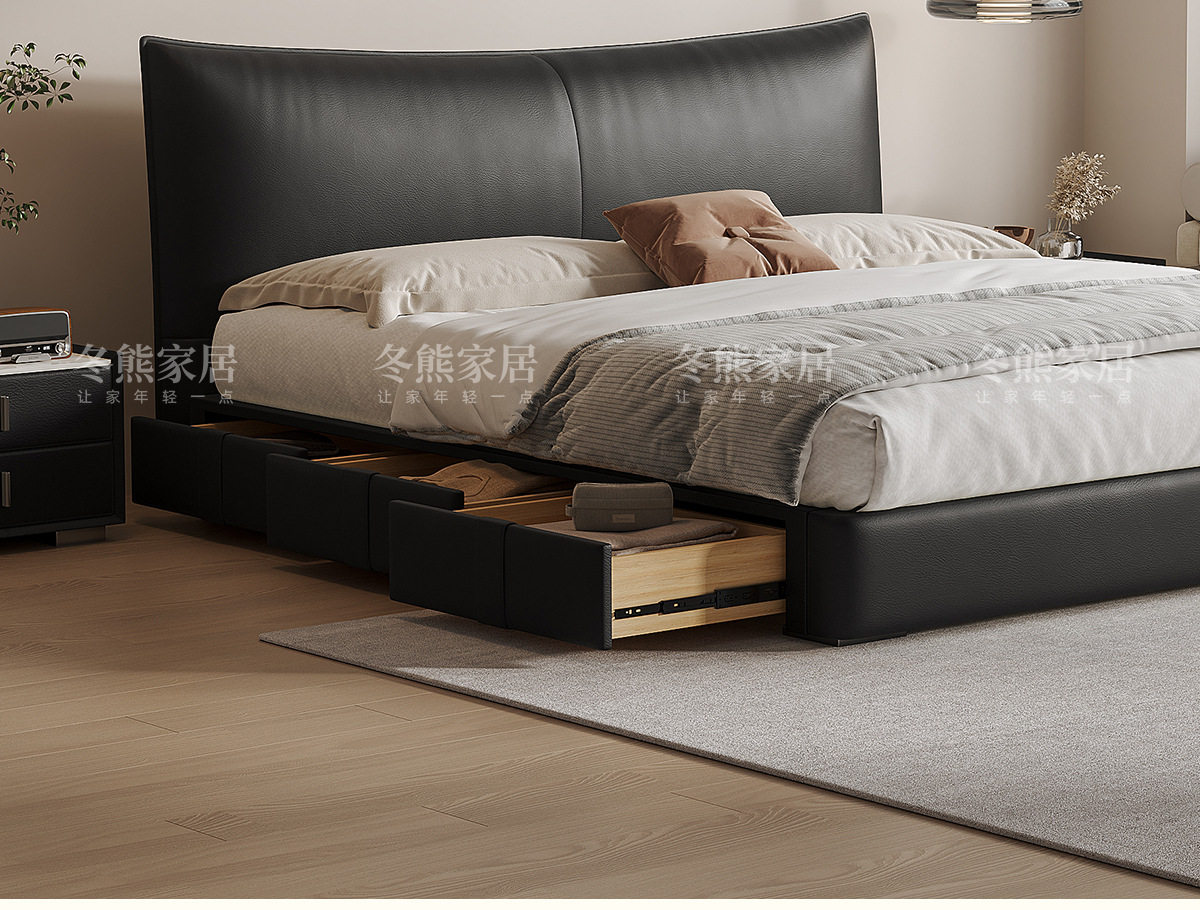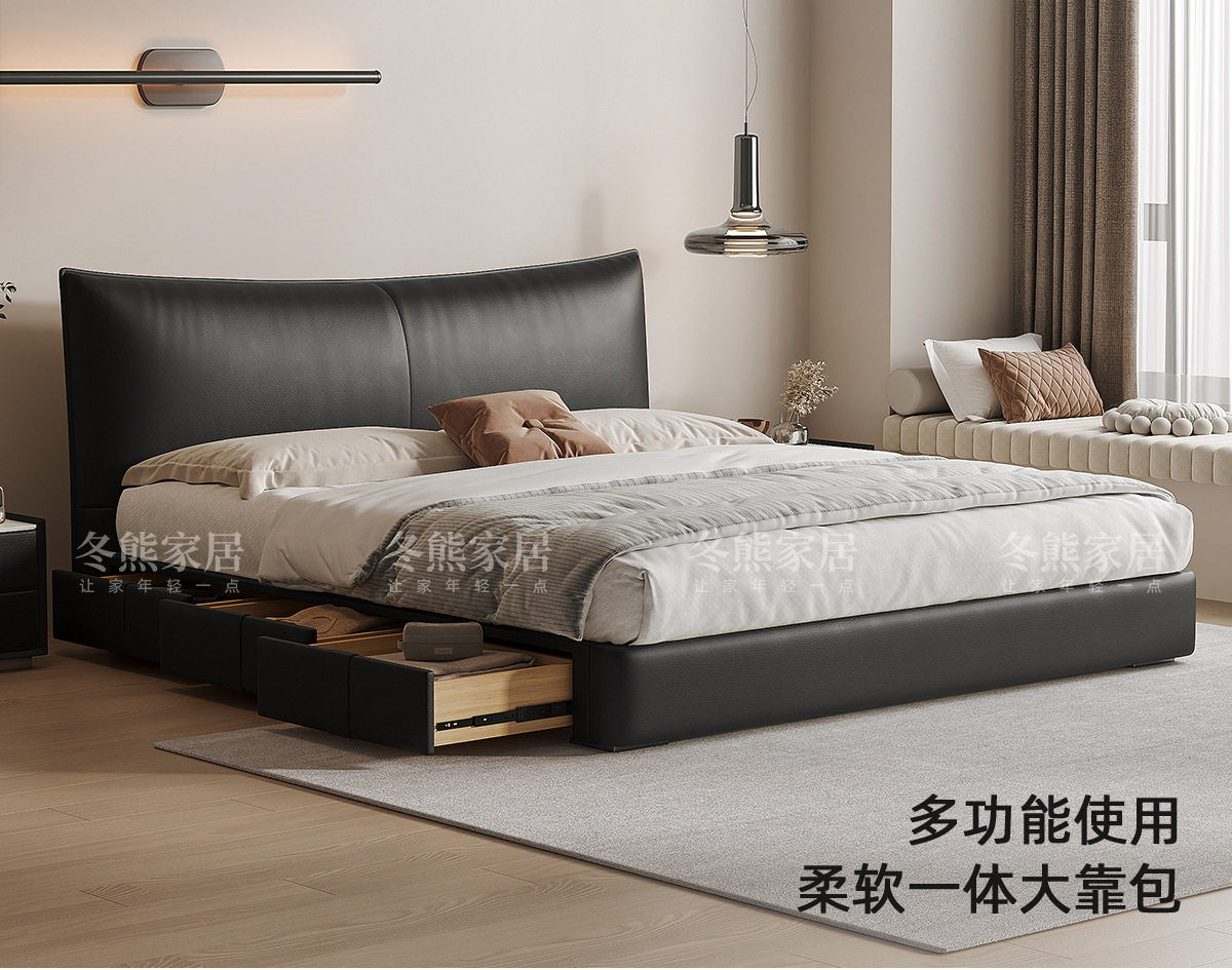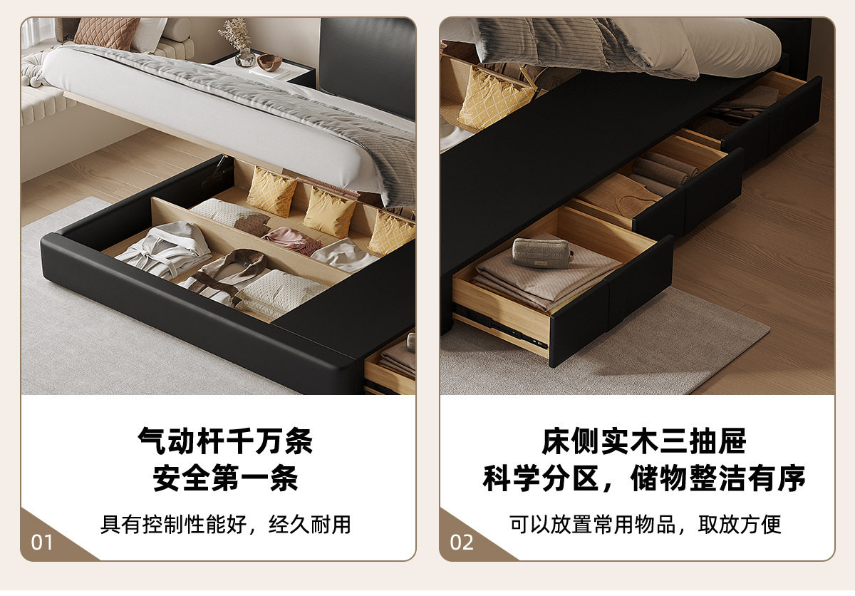 Ji and Shannai Bed Italian Minimalist Leather Bed Storage Drawer High Box Bed Double Master Bedroom Small Apartment Vintage Bed