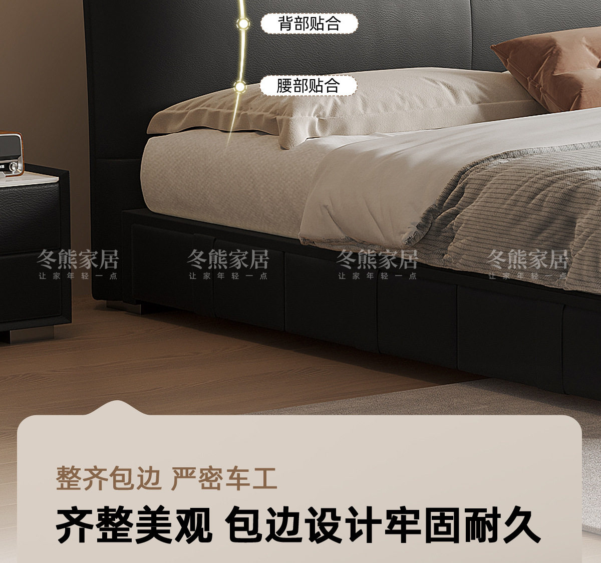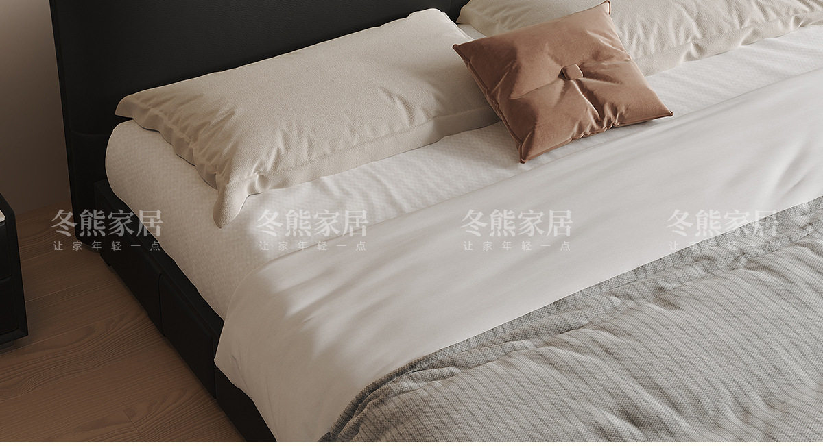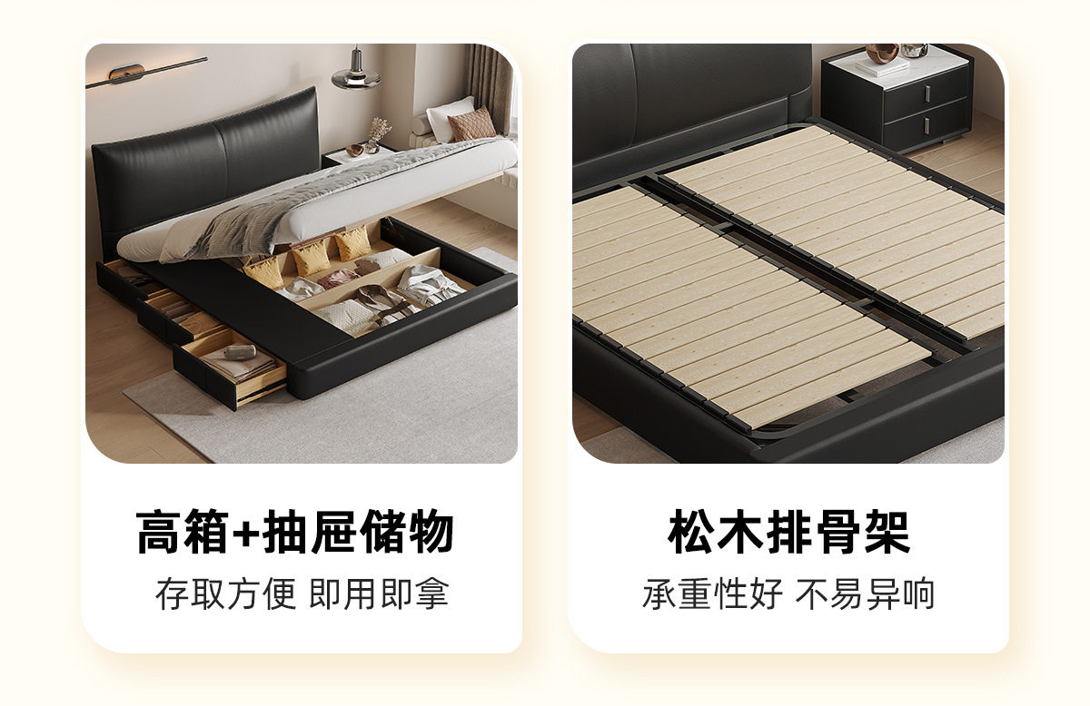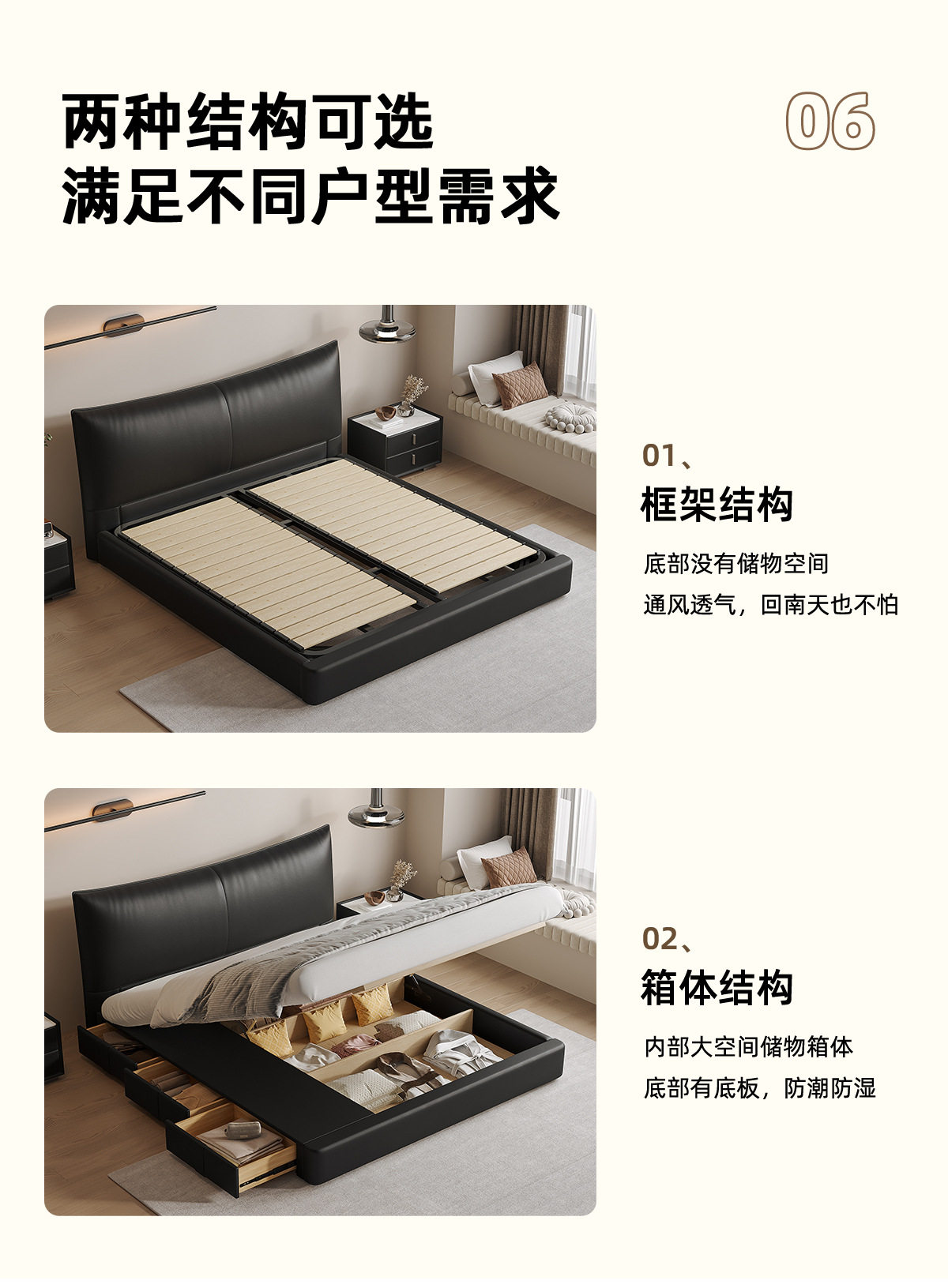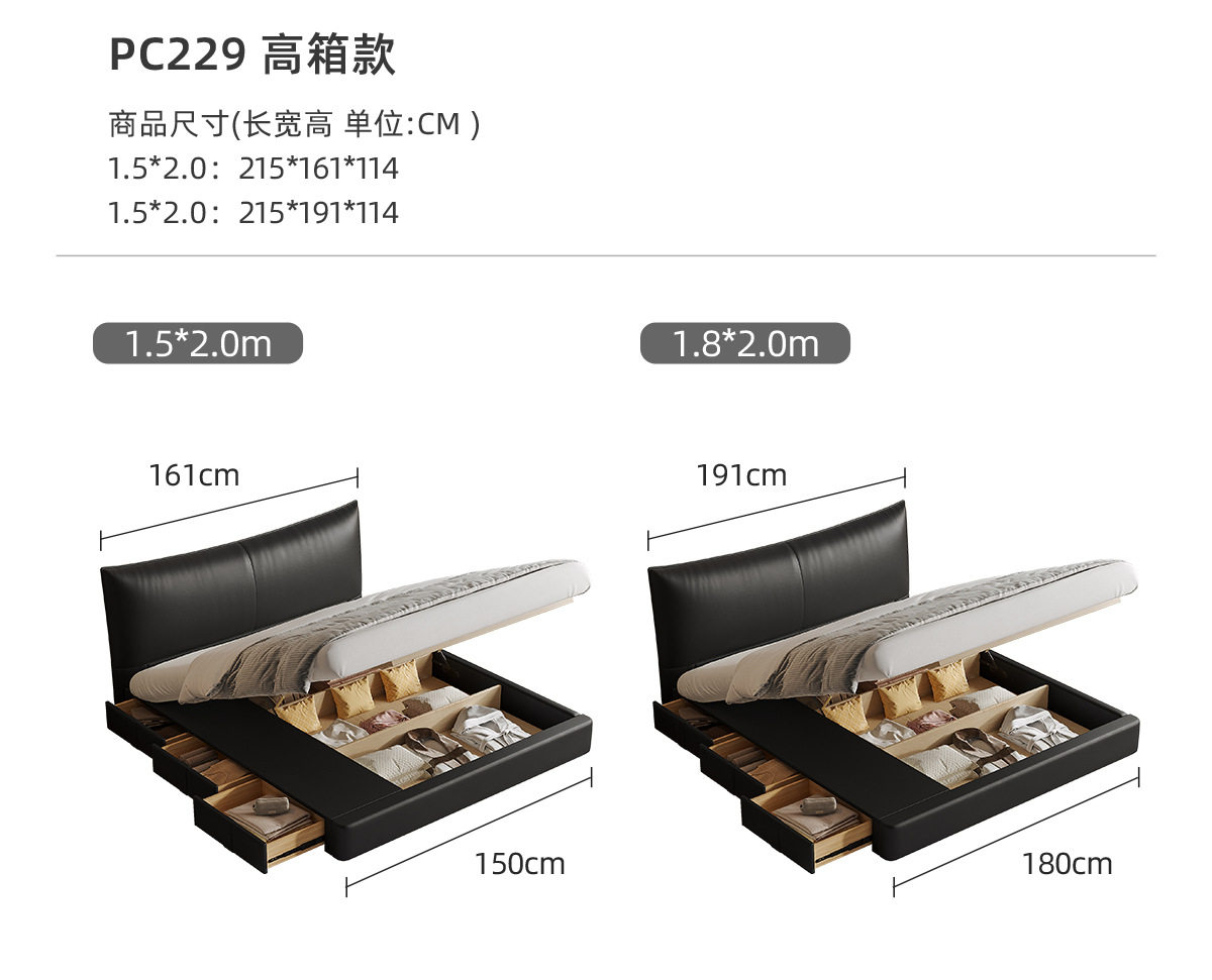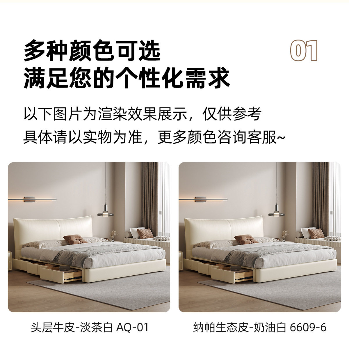 Ji and Shannai Bed Italian Minimalist Leather Bed Storage Drawer High Box Bed Double Master Bedroom Small Apartment Vintage Bed