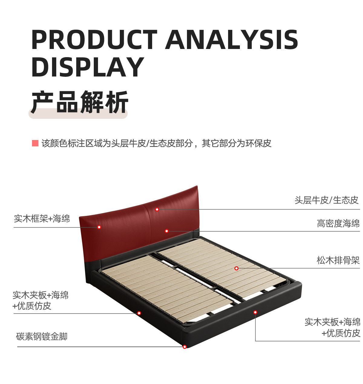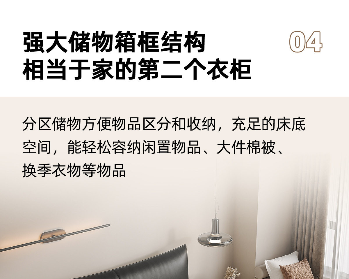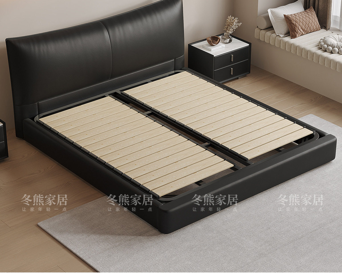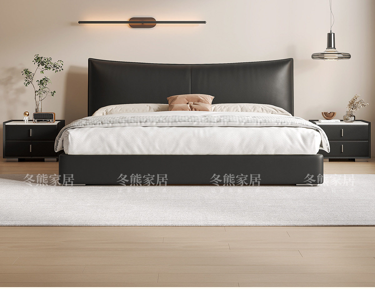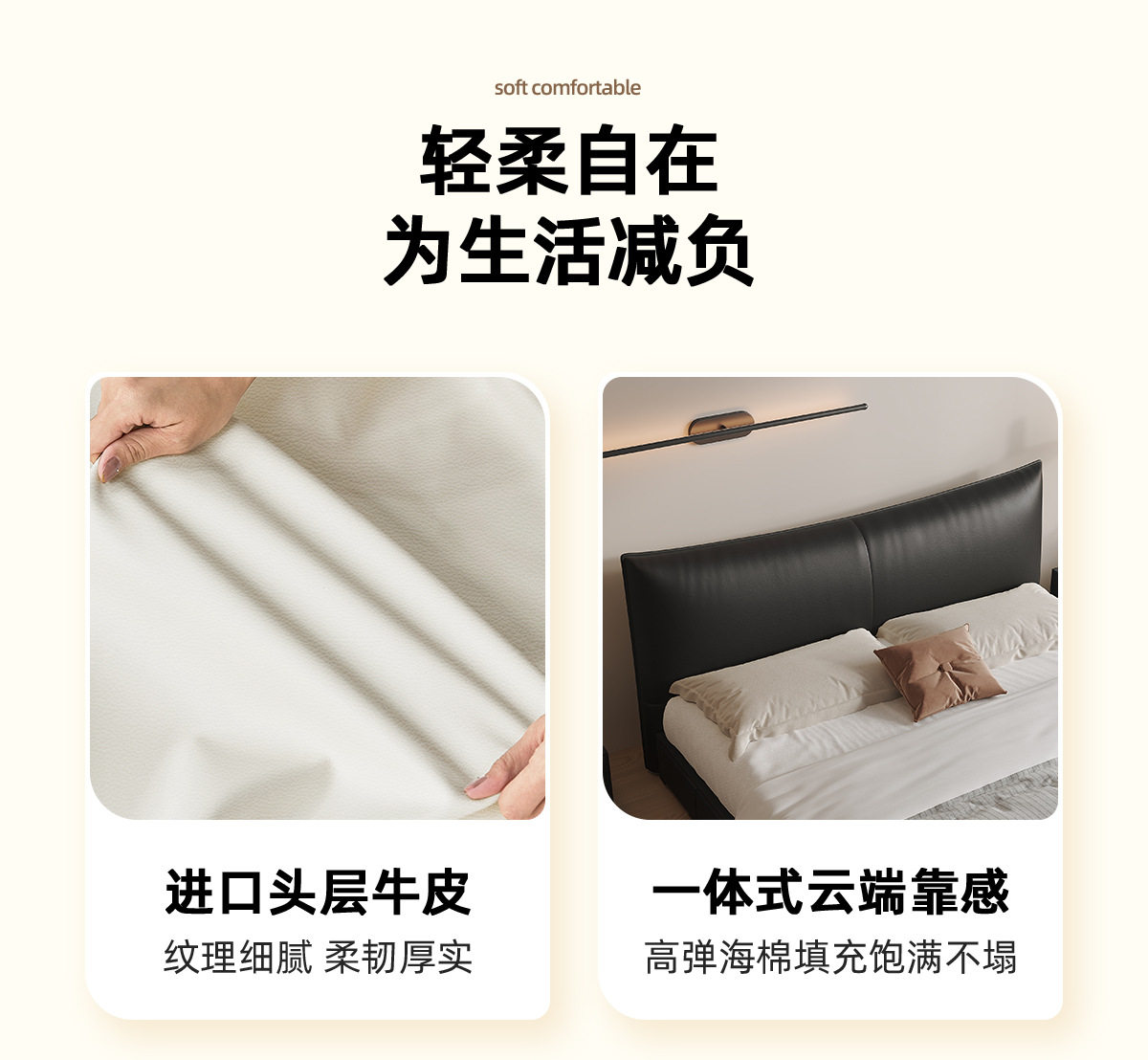 Ji and Shannai Bed Italian Minimalist Leather Bed Storage Drawer High Box Bed Double Master Bedroom Small Apartment Vintage Bed