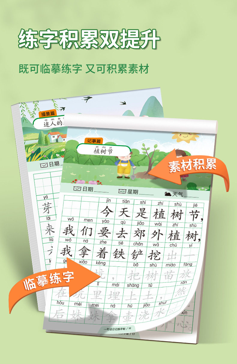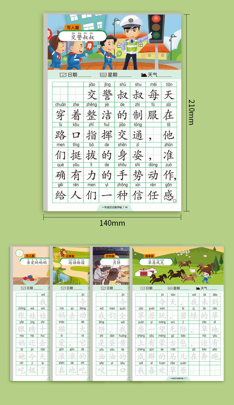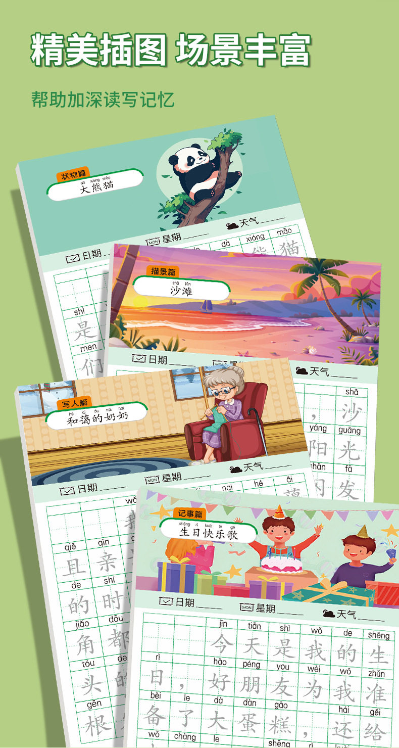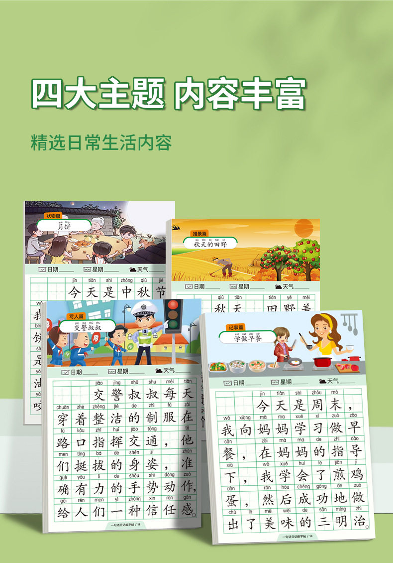 A word diary practice copybook, grade one, two and three, reading pictures, writing words, books, special composition book for primary school students, exercise paper