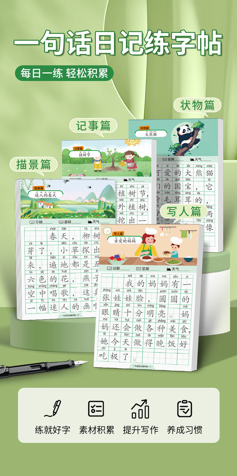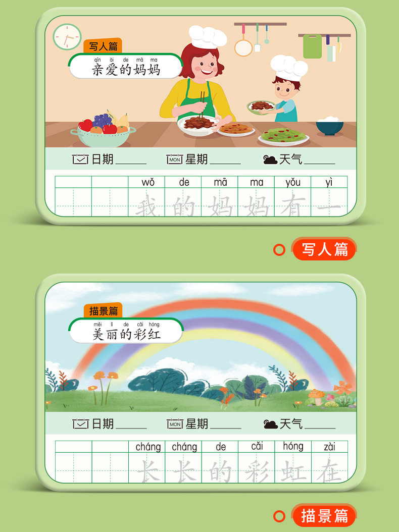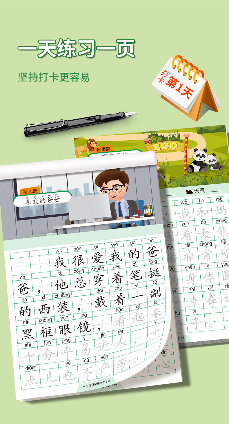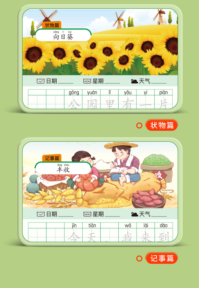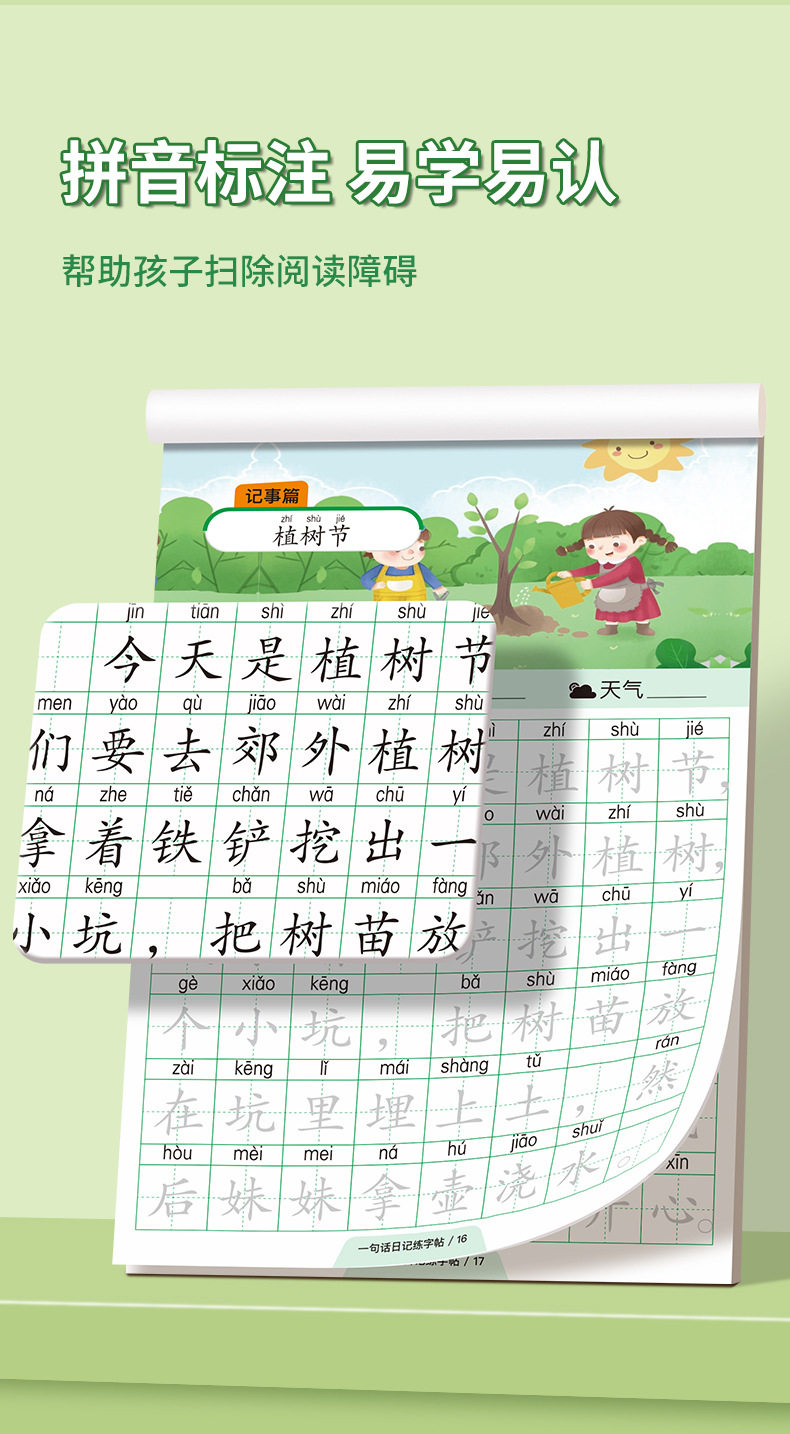 A word diary practice copybook, grade one, two and three, reading pictures, writing words, books, special composition book for primary school students, exercise paper