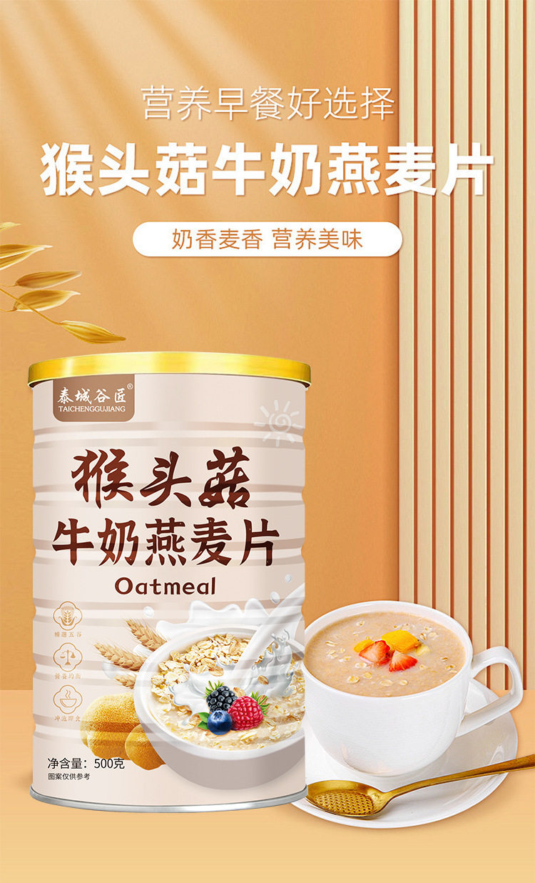 Source manufacturers wholesale Hericium erinaceus milk oatmeal 500g nutritious breakfast meal replacement powder to drink milk oatmeal replacement