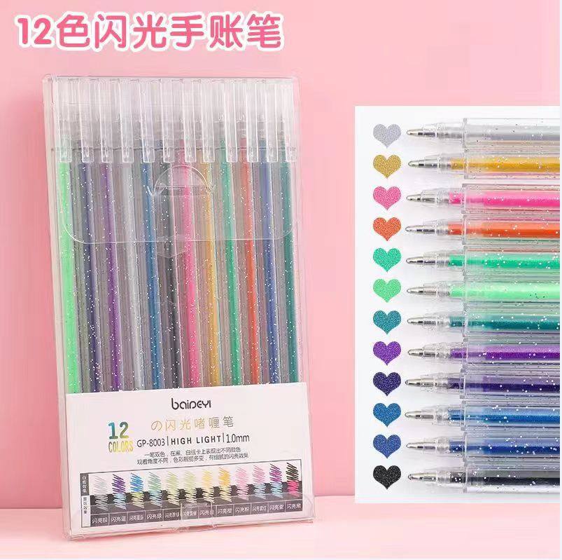 Glitter Pen Gel Pen Fluorescent Marker Pen Student Hand Account Glitter Shiny Crystal Sand Pearlescent Color Gel Pen