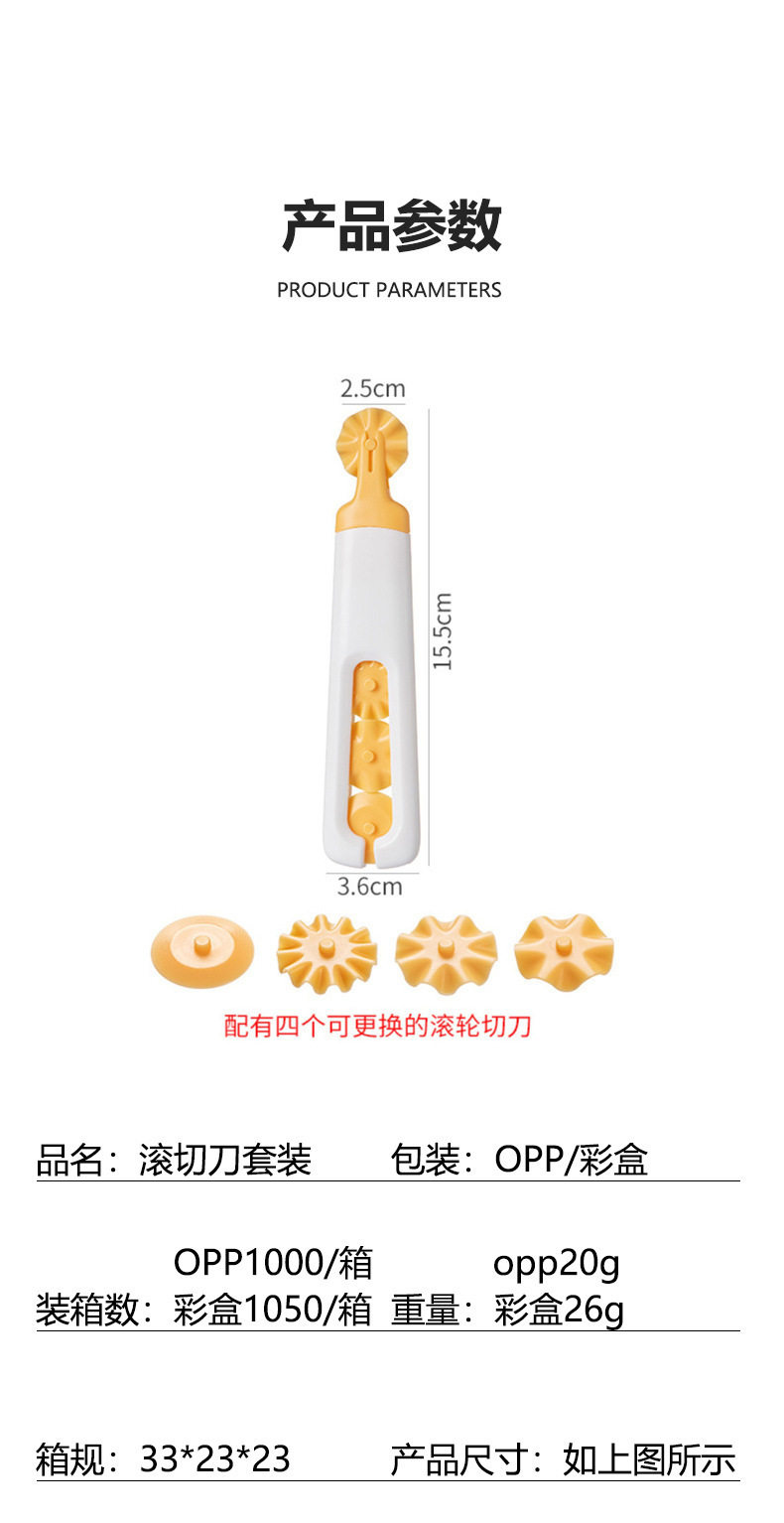 | Specifications | Dough roller cutter opp pack,Dough roller cutter color box |