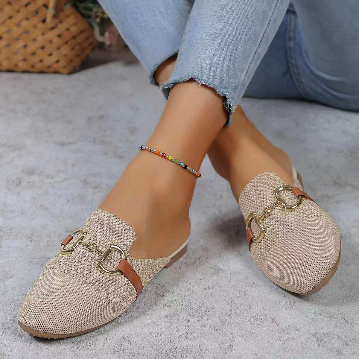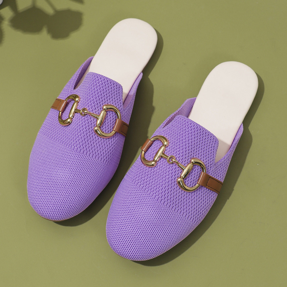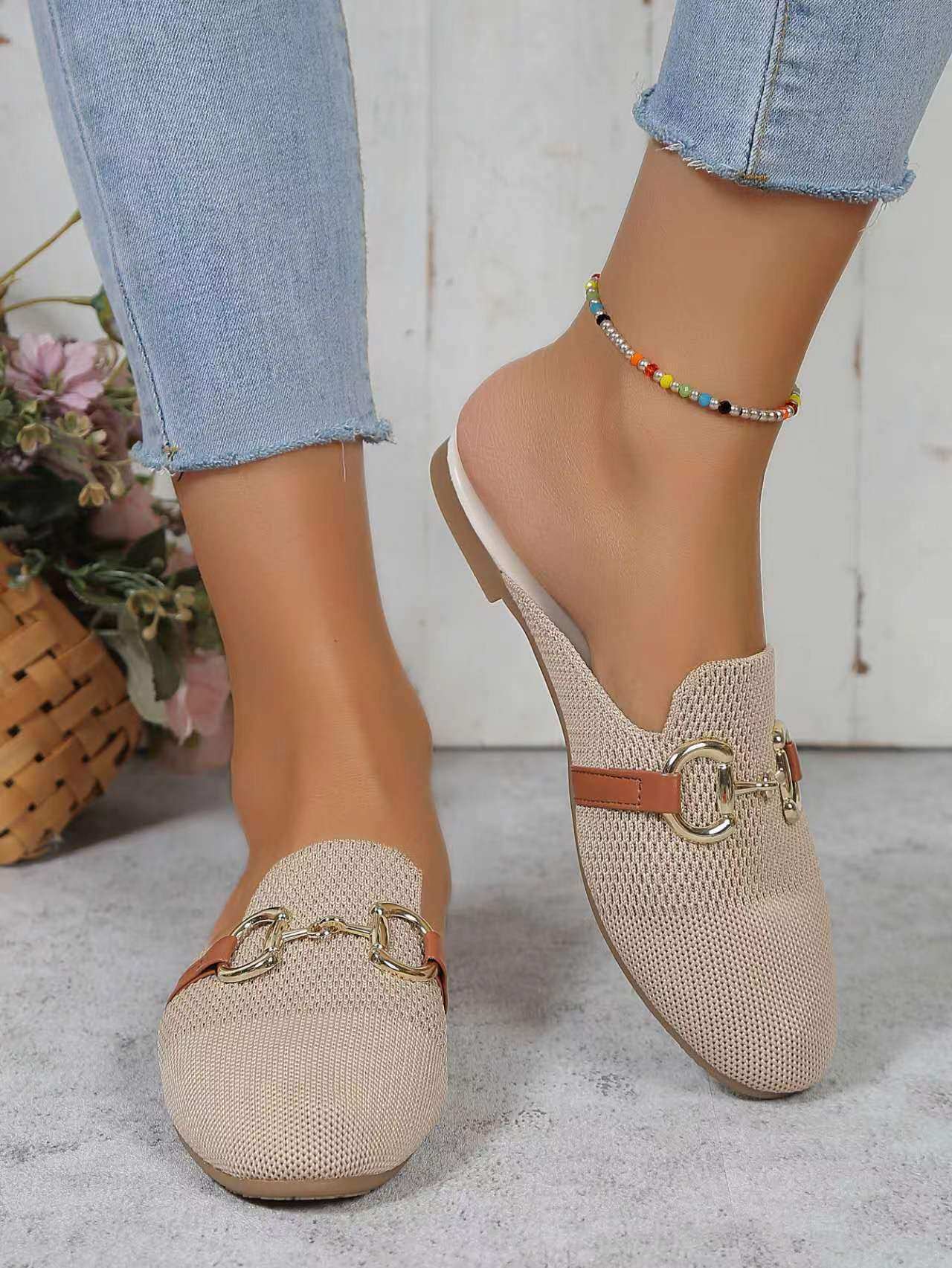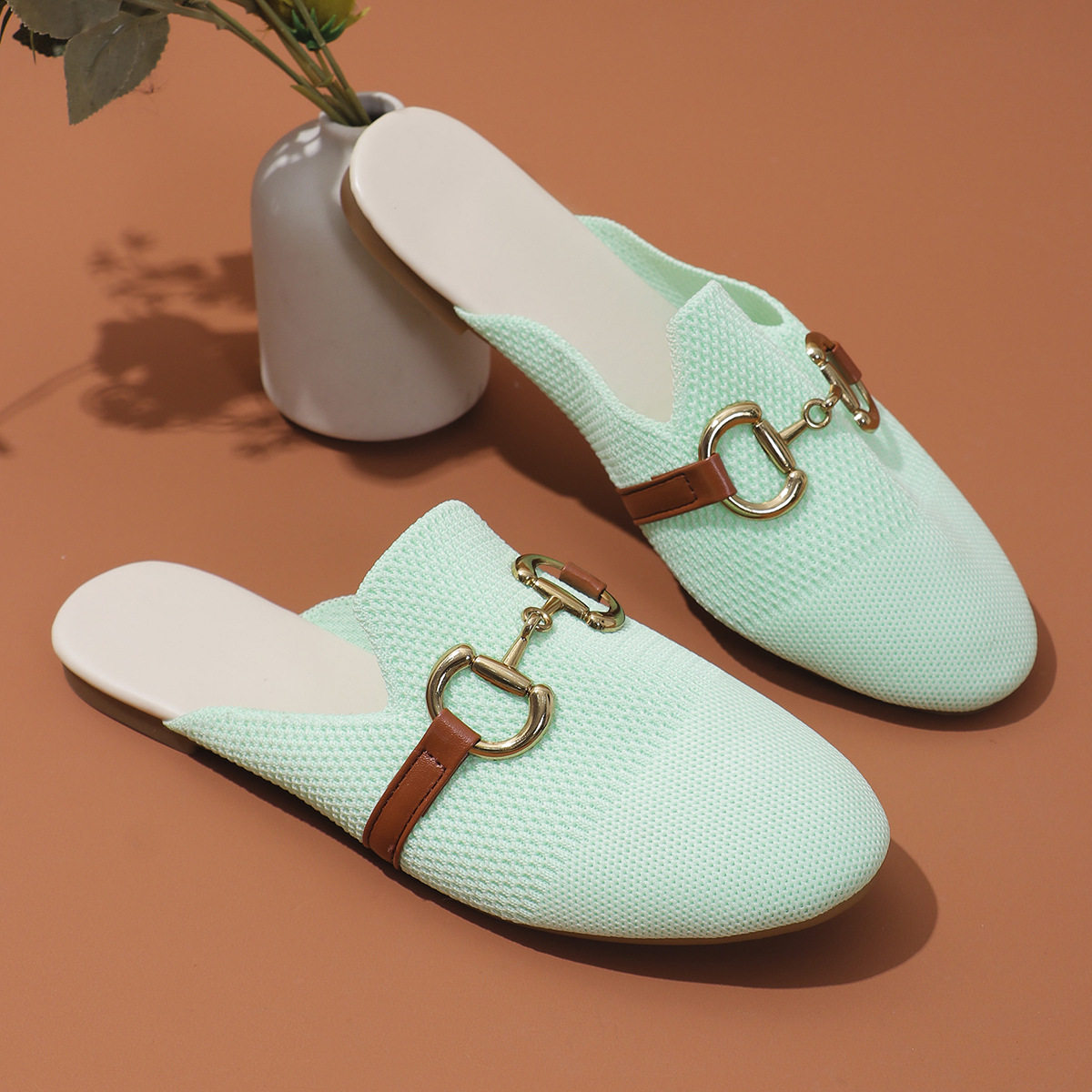 Cross-Border Amazon Fashionable New Solid Color Round Head Chain Foreign Trade Large Size Slip-On Casual Flat-Soled Women's Slippers