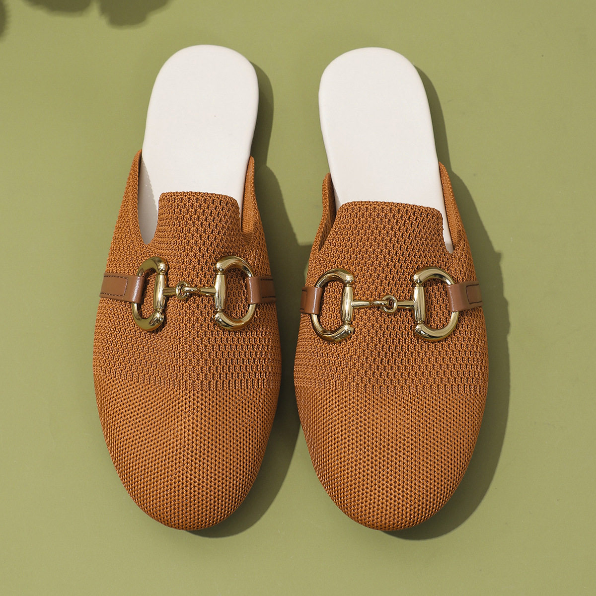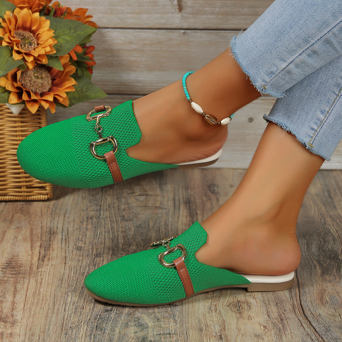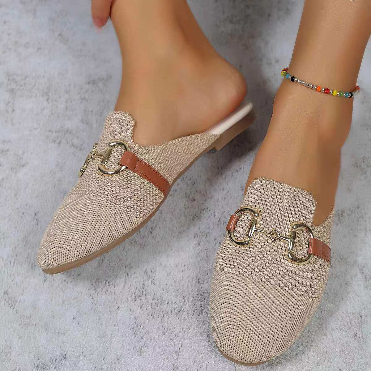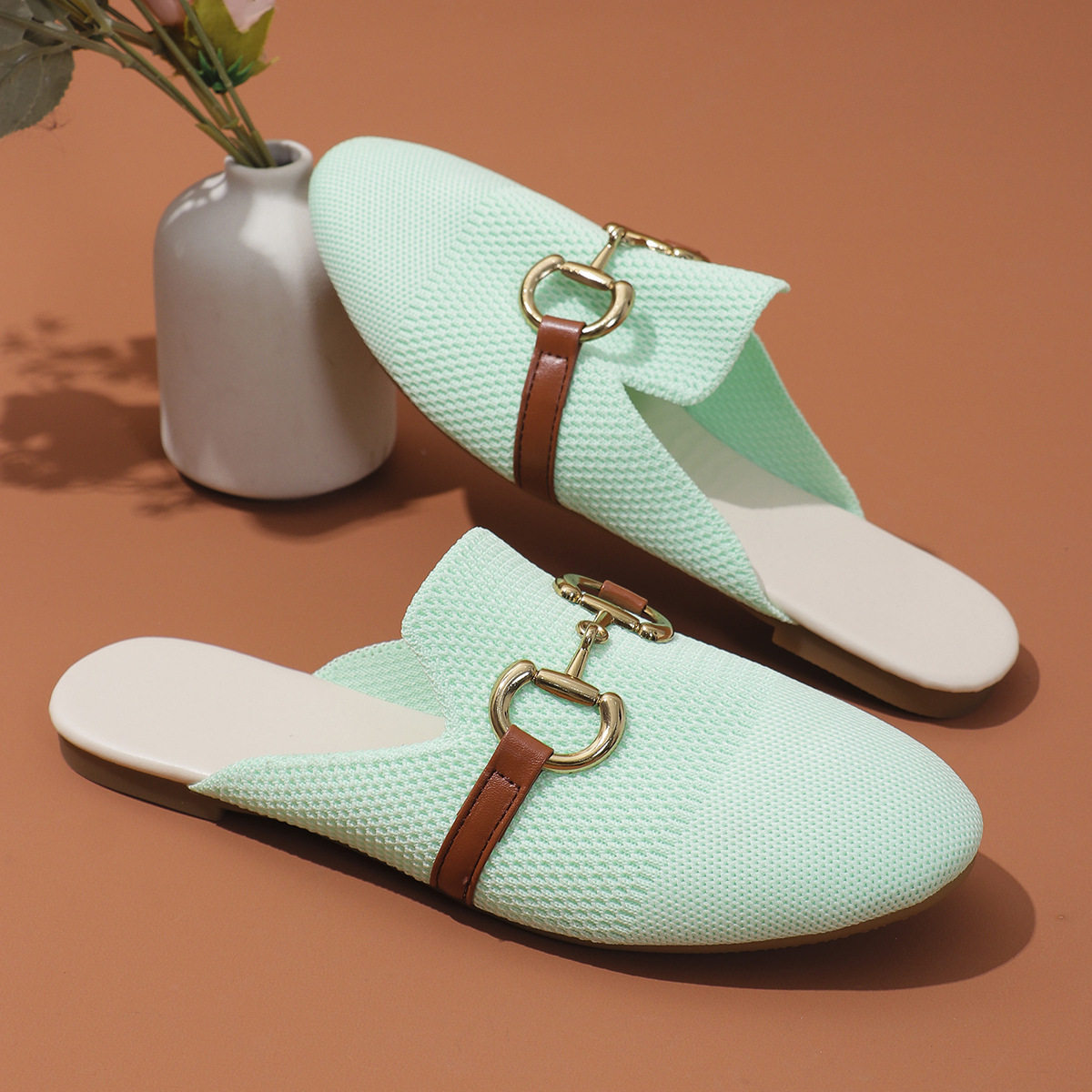 Cross-Border Amazon Fashionable New Solid Color Round Head Chain Foreign Trade Large Size Slip-On Casual Flat-Soled Women's Slippers
