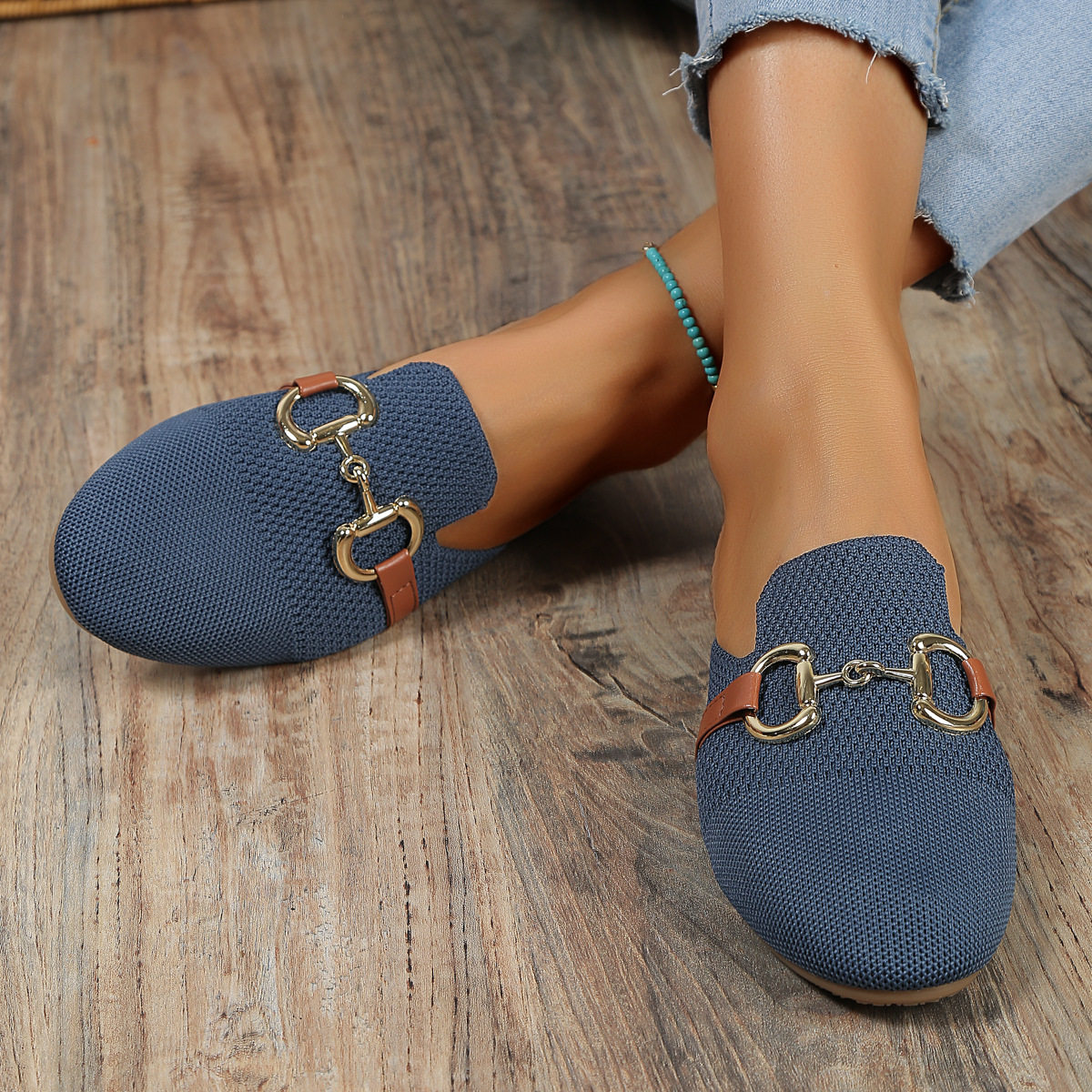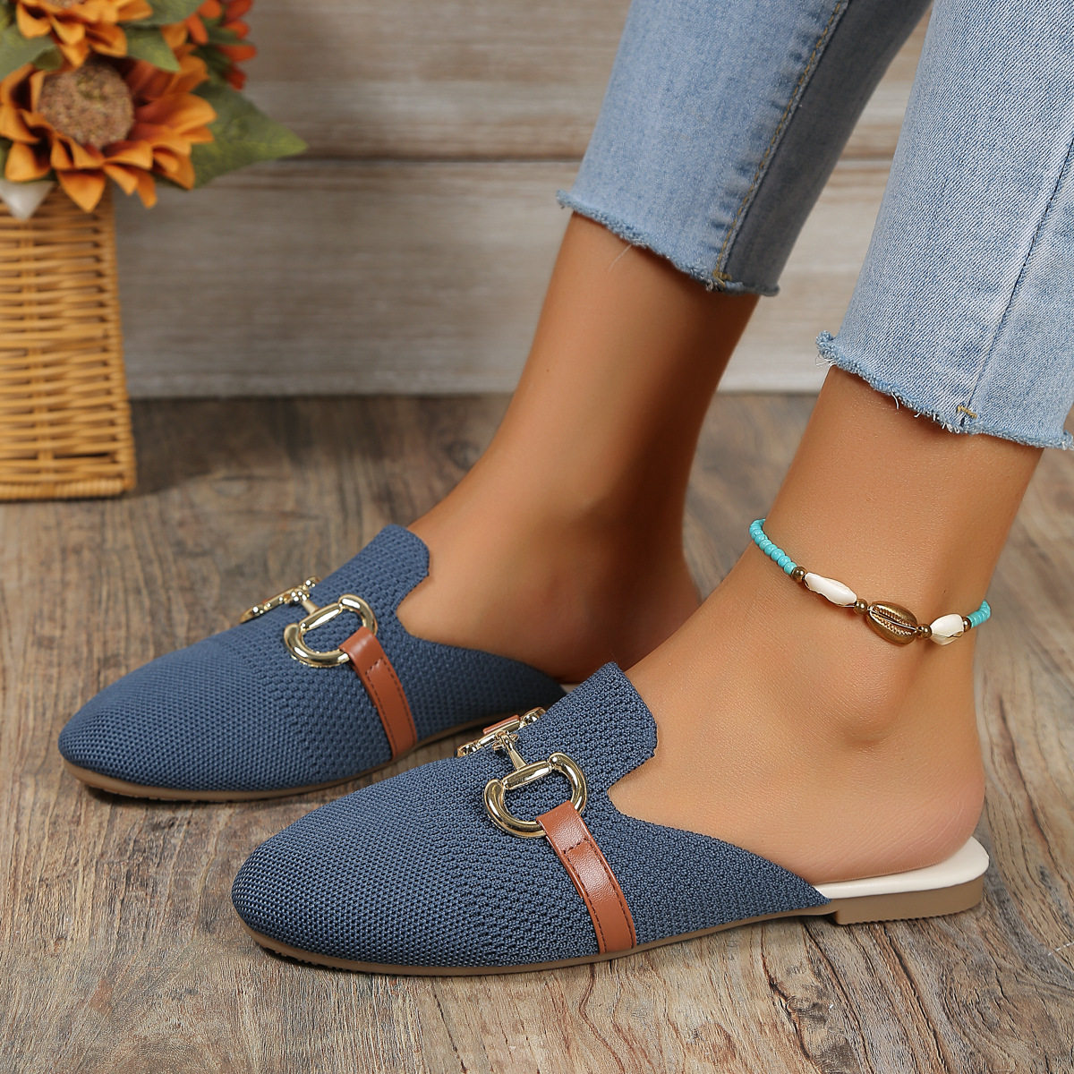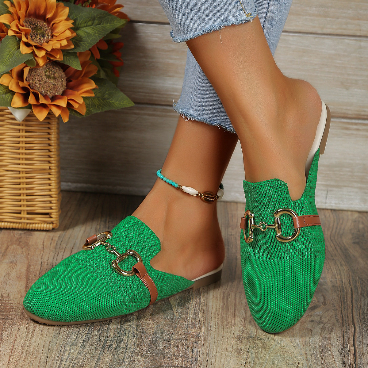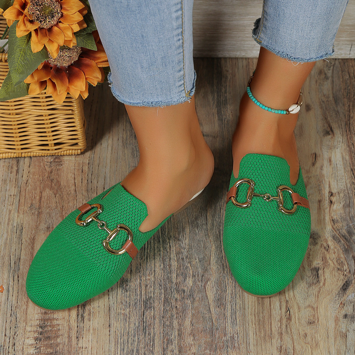 Cross-Border Amazon Fashionable New Solid Color Round Head Chain Foreign Trade Large Size Slip-On Casual Flat-Soled Women's Slippers