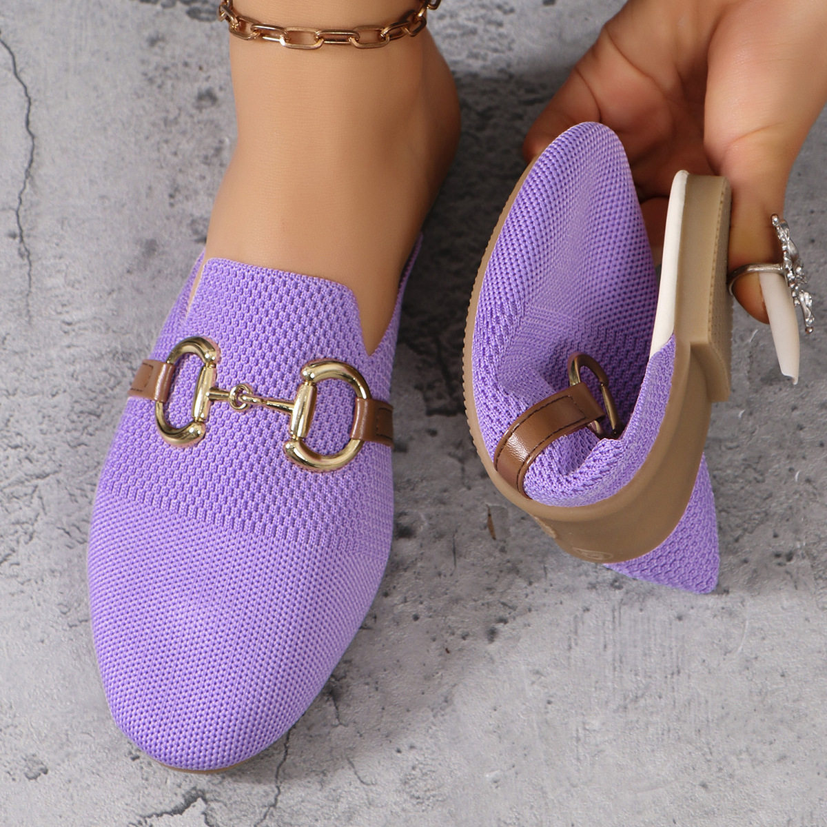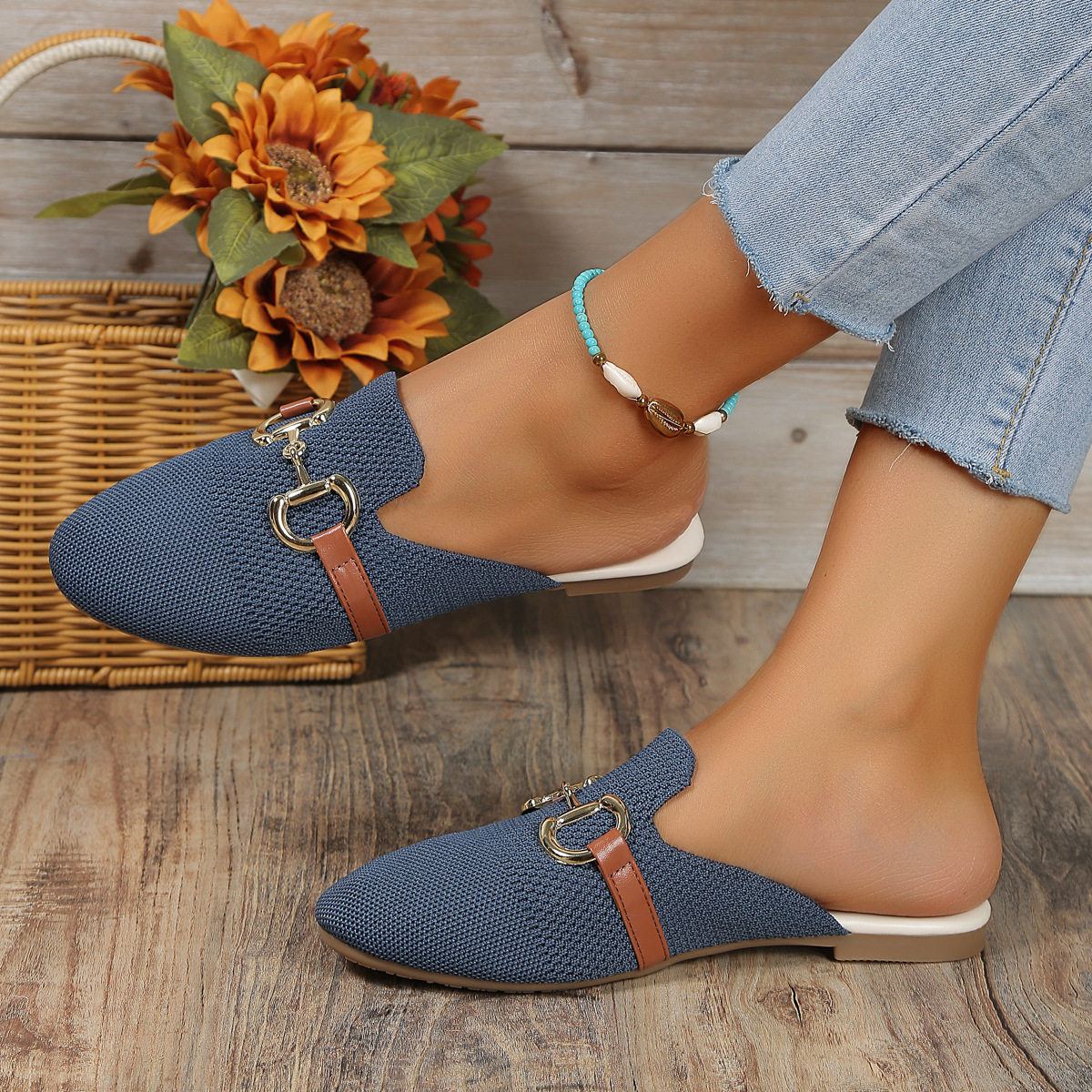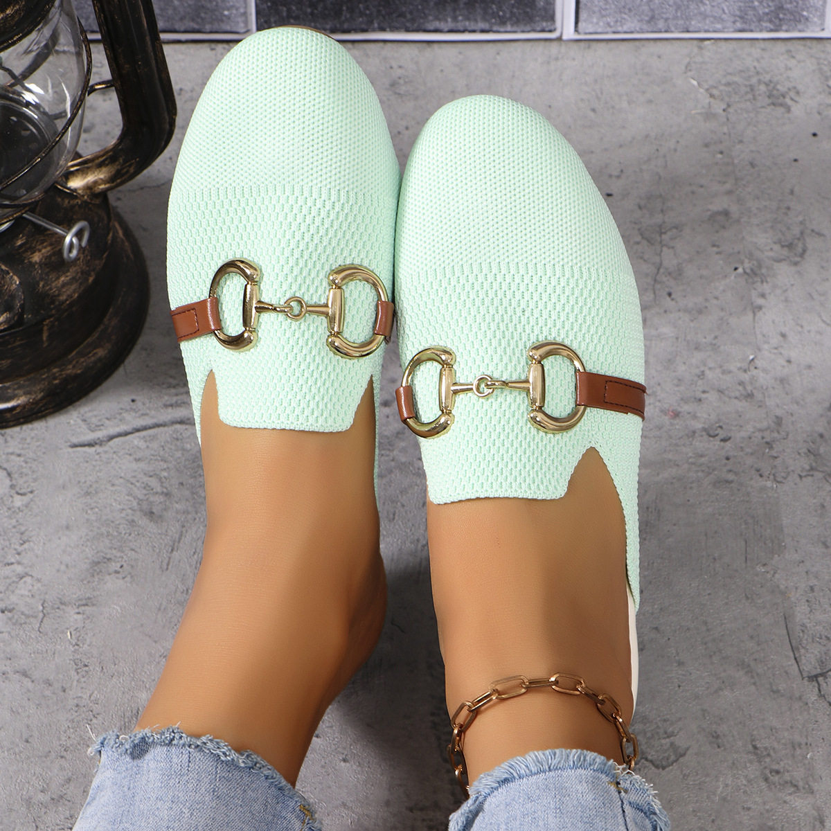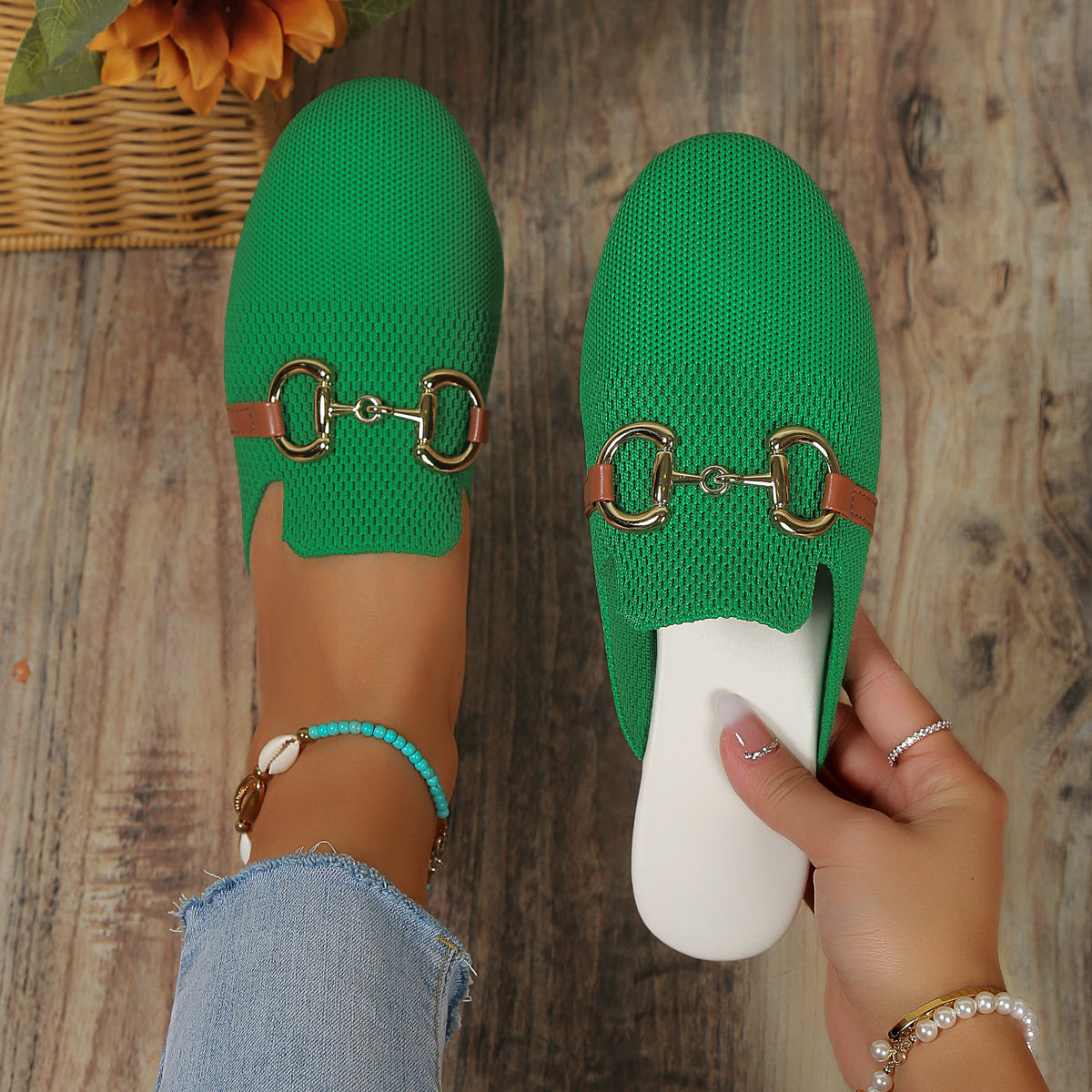Cross-Border Amazon Fashionable New Solid Color Round Head Chain Foreign Trade Large Size Slip-On Casual Flat-Soled Women's Slippers