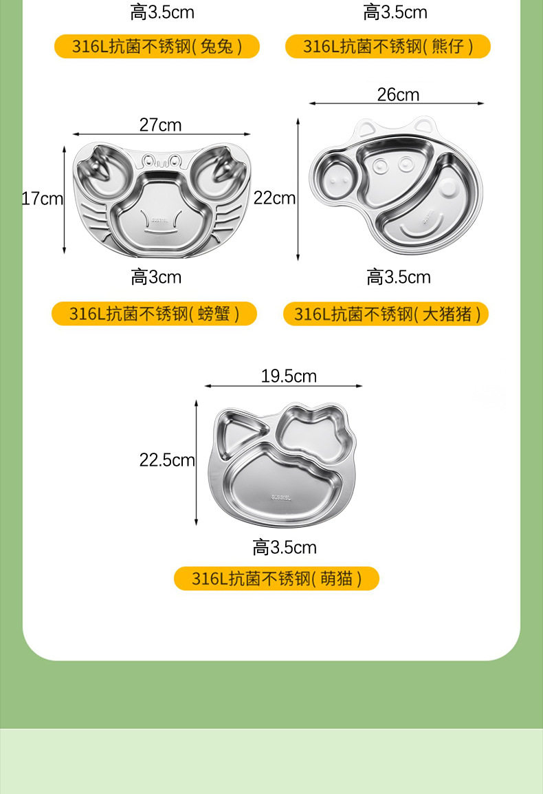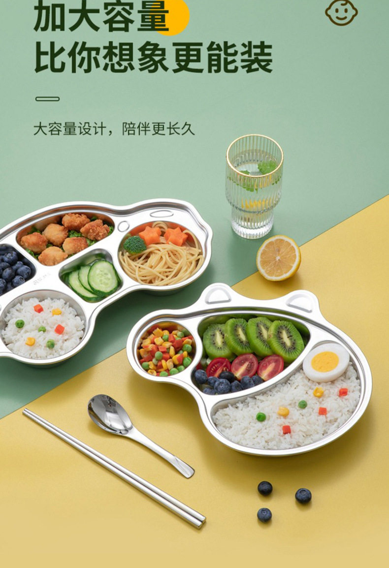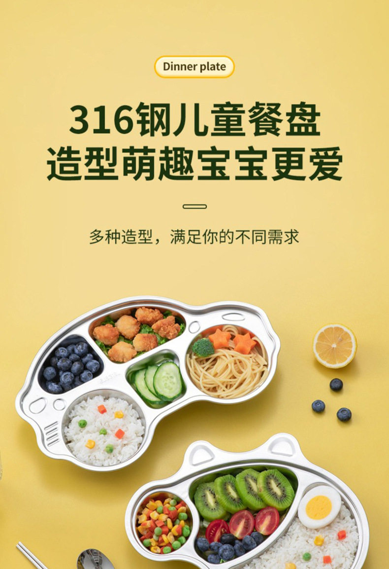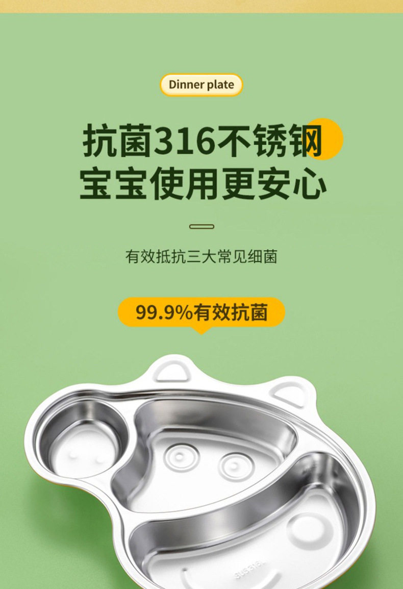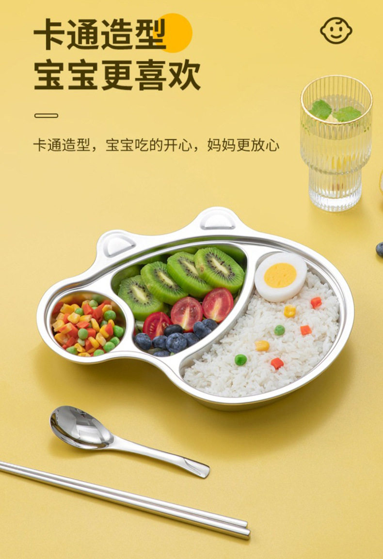 316 Stainless Steel Children's Dielectric Dinner Plate Baby Tableware for Dinner Kindergarten Household Cute Cartoon Dielectric Dinner Plate