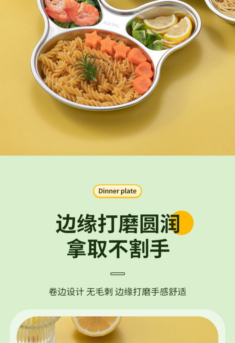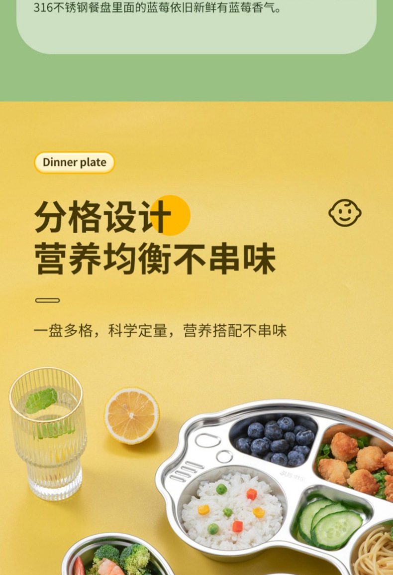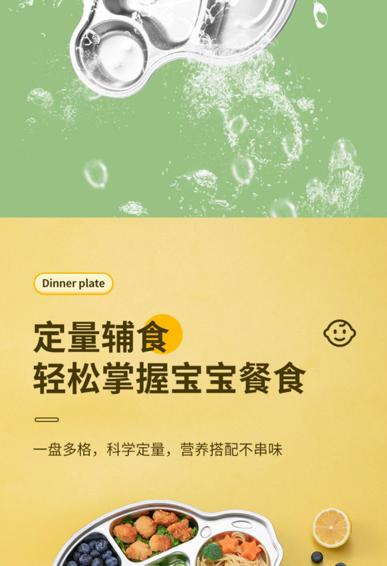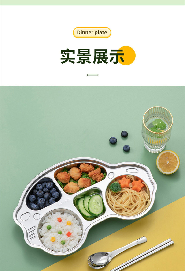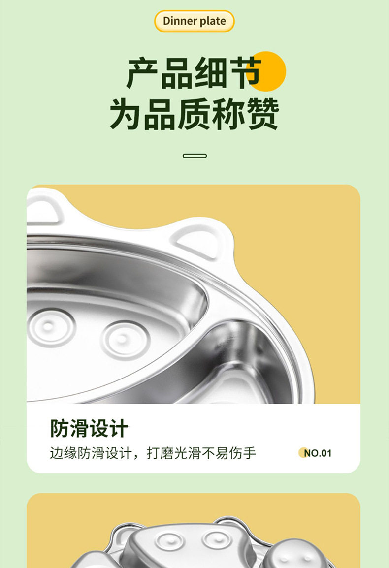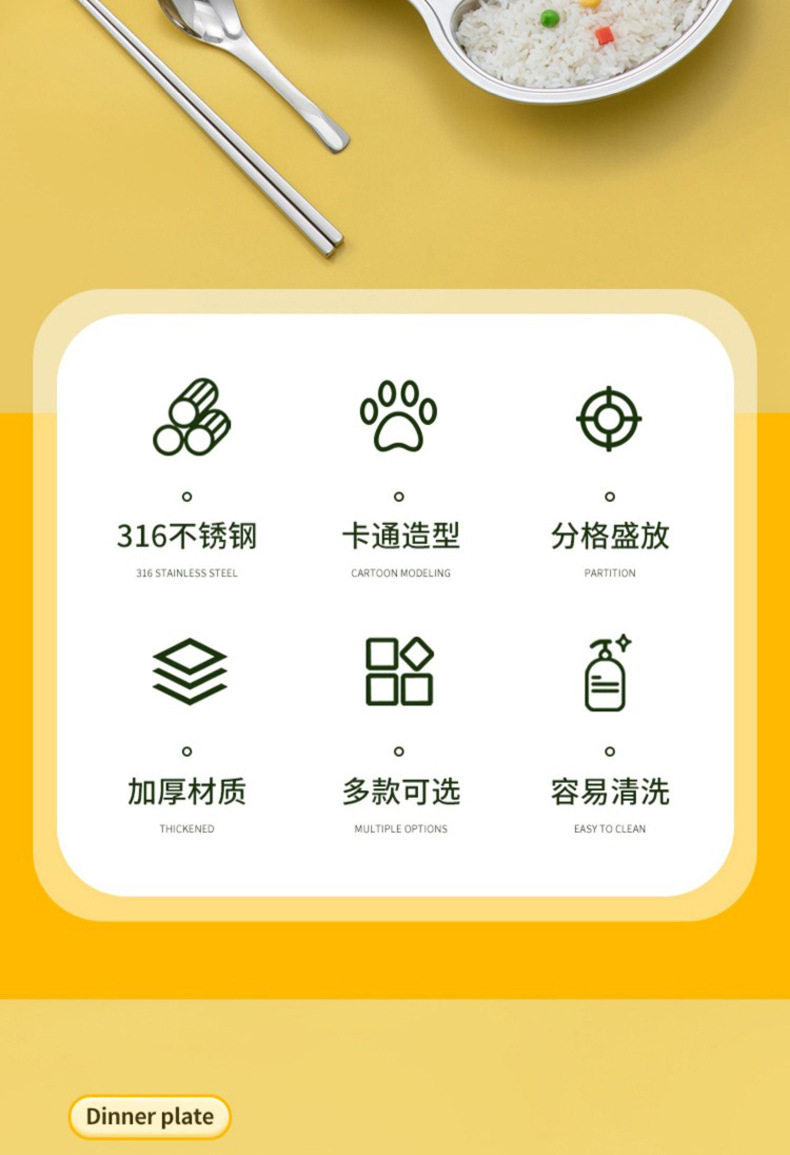 316 Stainless Steel Children's Dielectric Dinner Plate Baby Tableware for Dinner Kindergarten Household Cute Cartoon Dielectric Dinner Plate