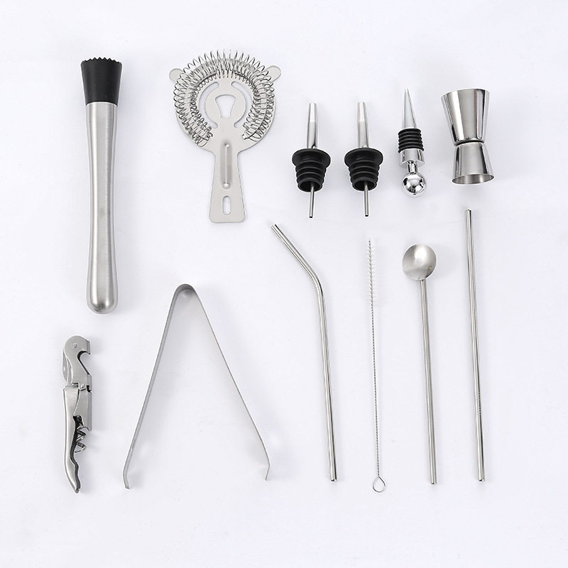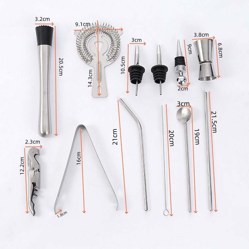 Cross-border explosions wooden frame bartender set stainless steel 550ml shake cocktail bar tools full set of 13 pieces