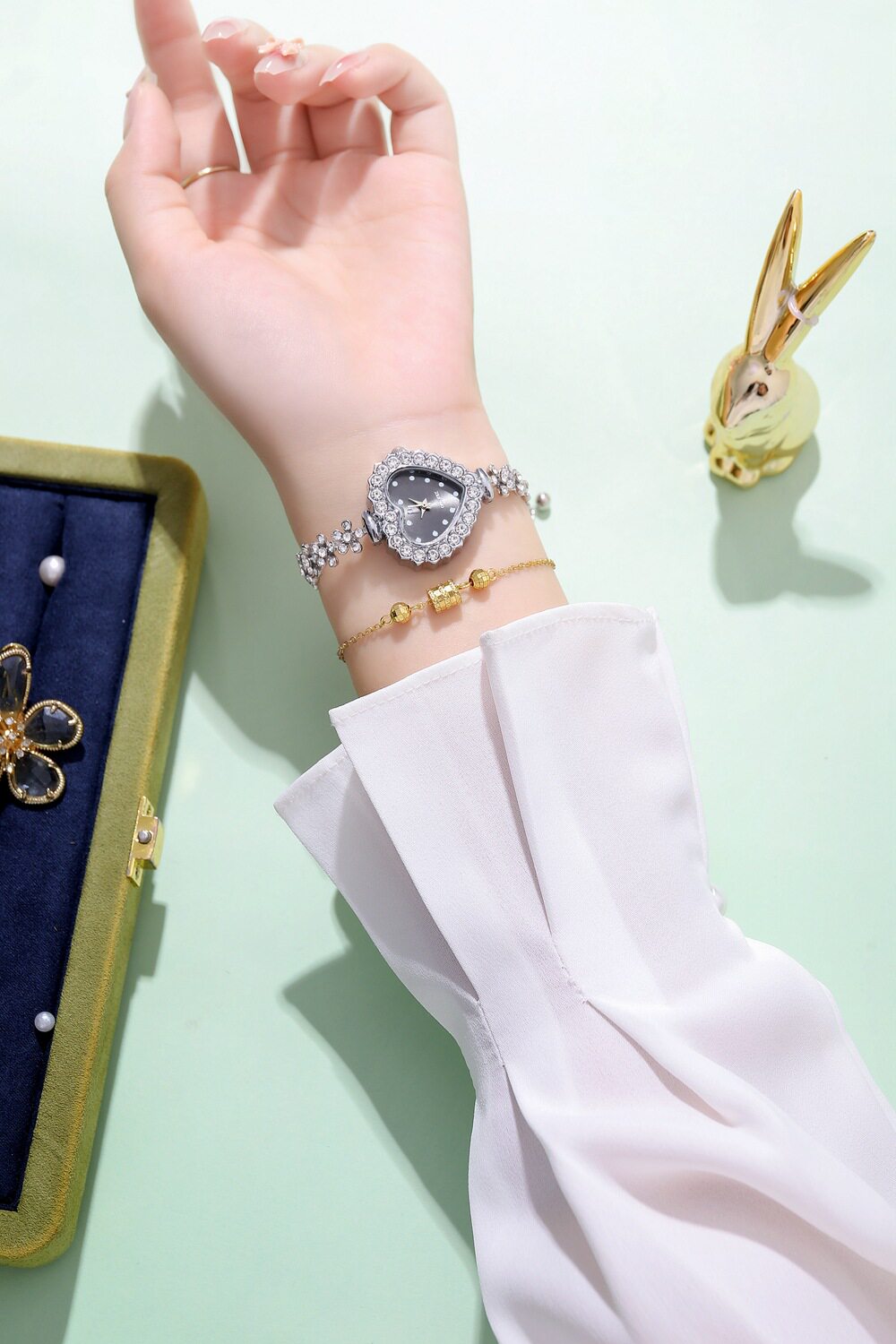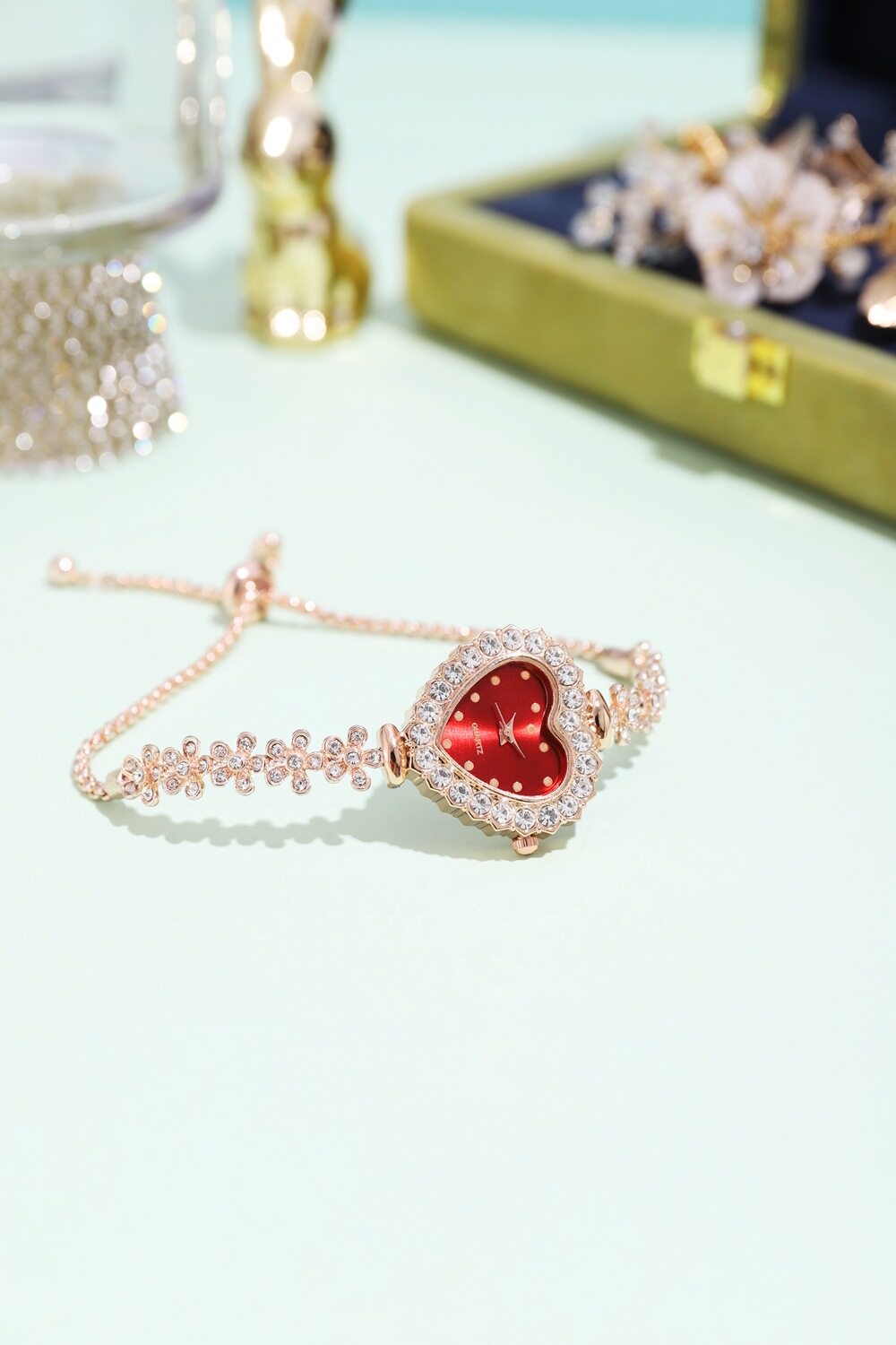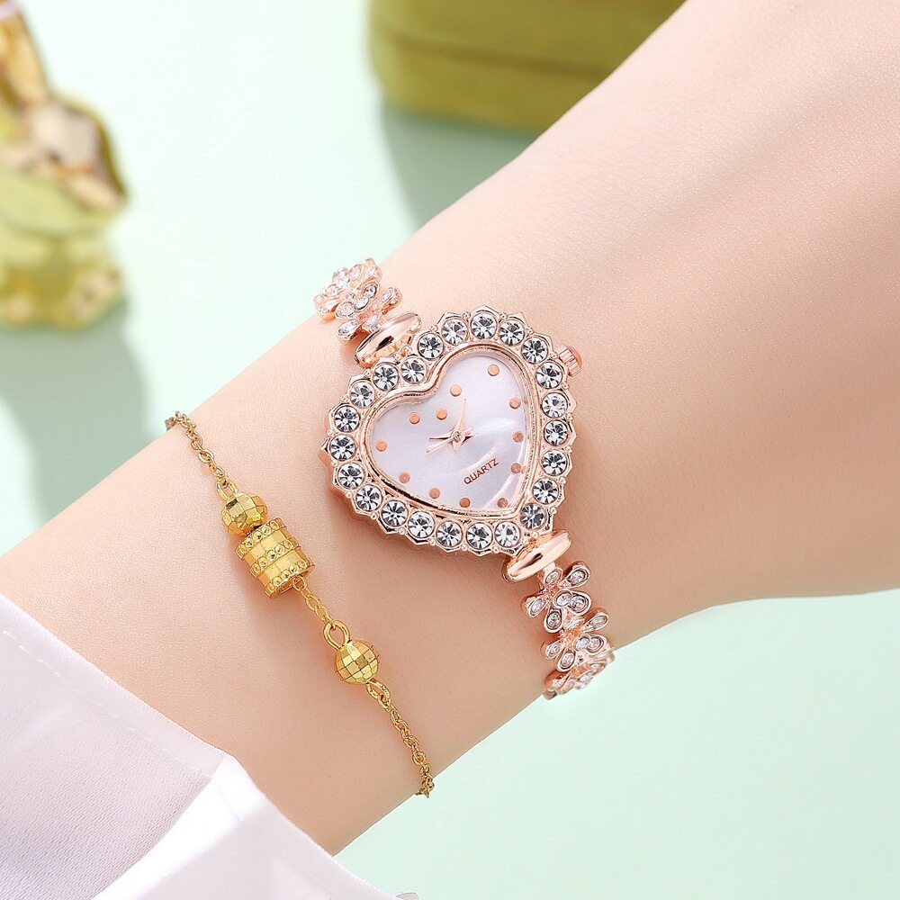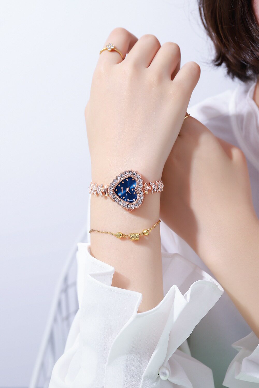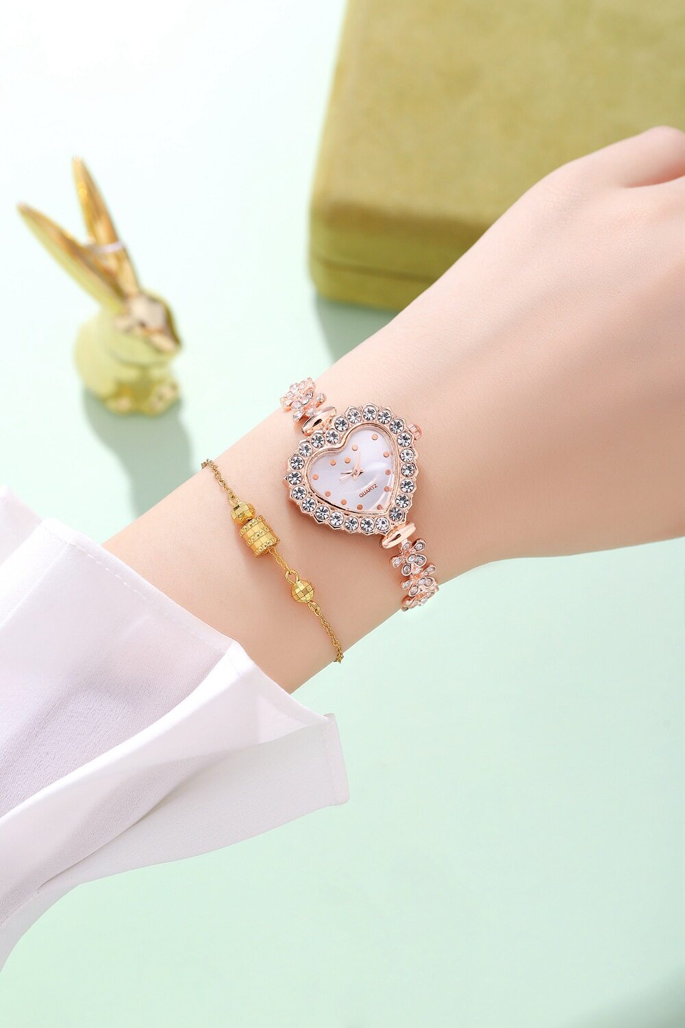 Loss Clearance Live Broadcast Export New Personalized Peach Heart Small Dial Women's Bracelet Watch Diamond Petal Quartz Women's Watch