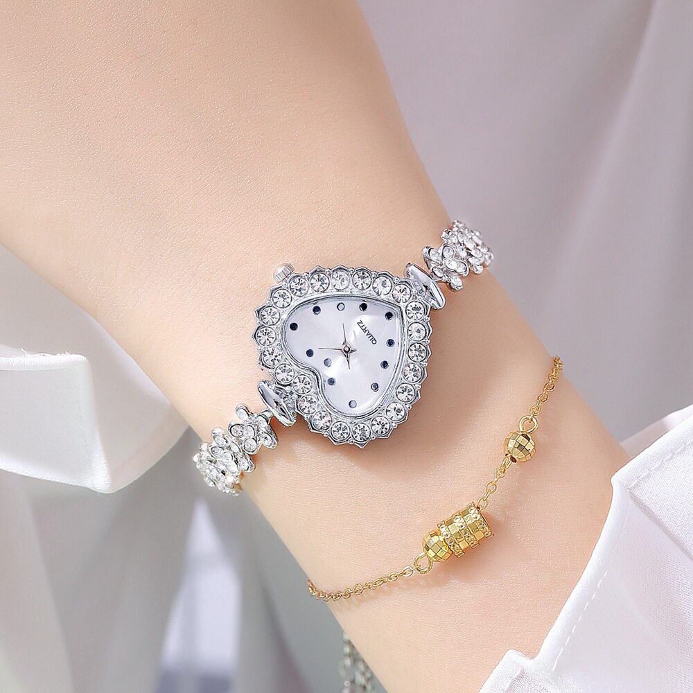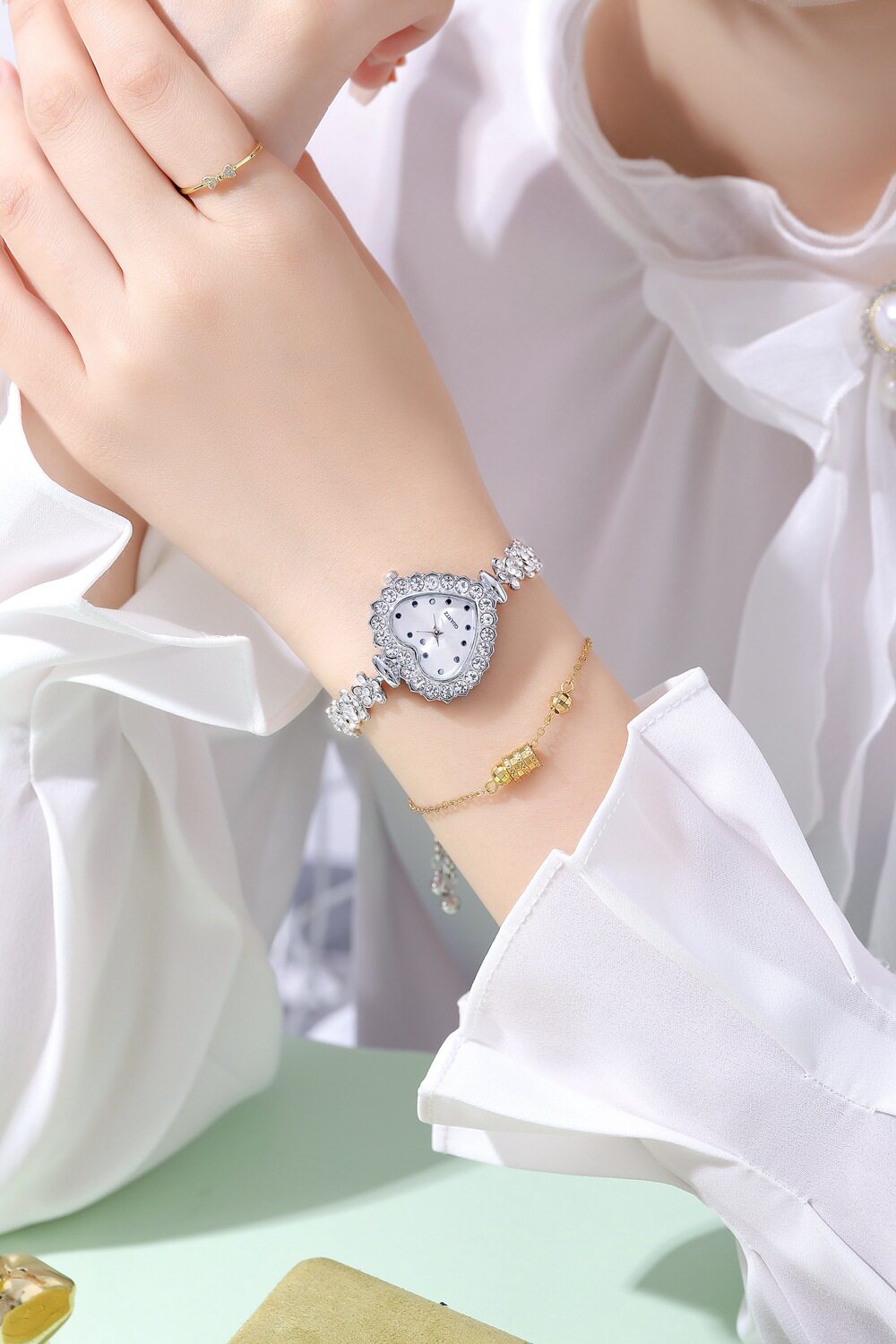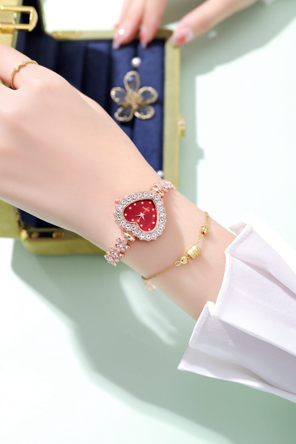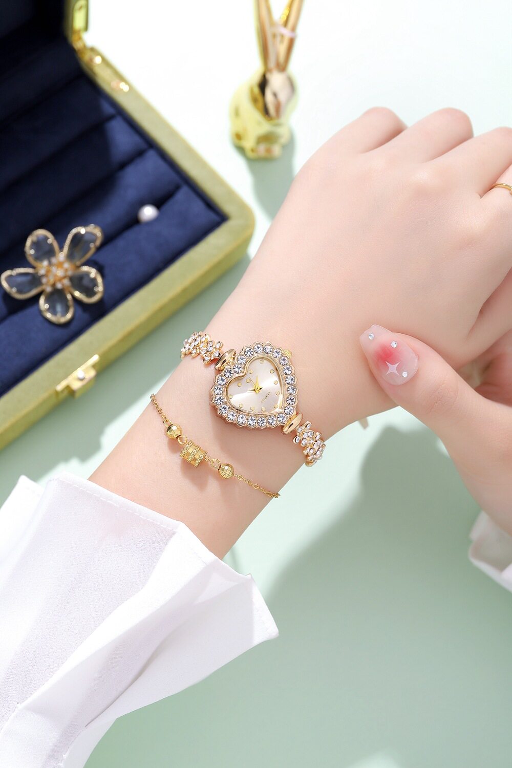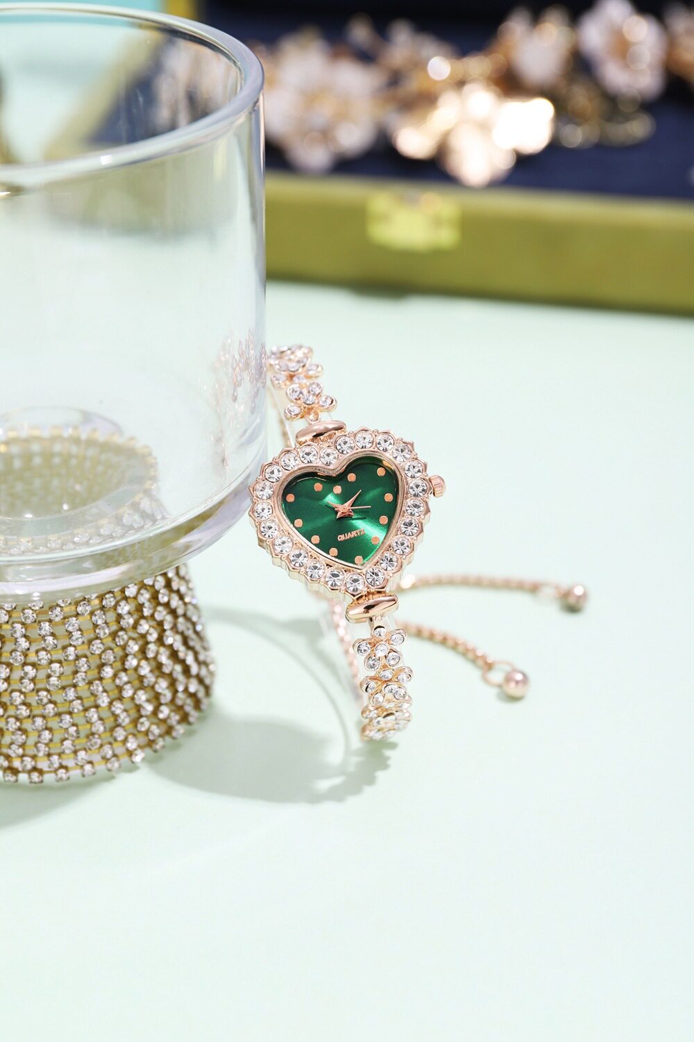 Loss Clearance Live Broadcast Export New Personalized Peach Heart Small Dial Women's Bracelet Watch Diamond Petal Quartz Women's Watch