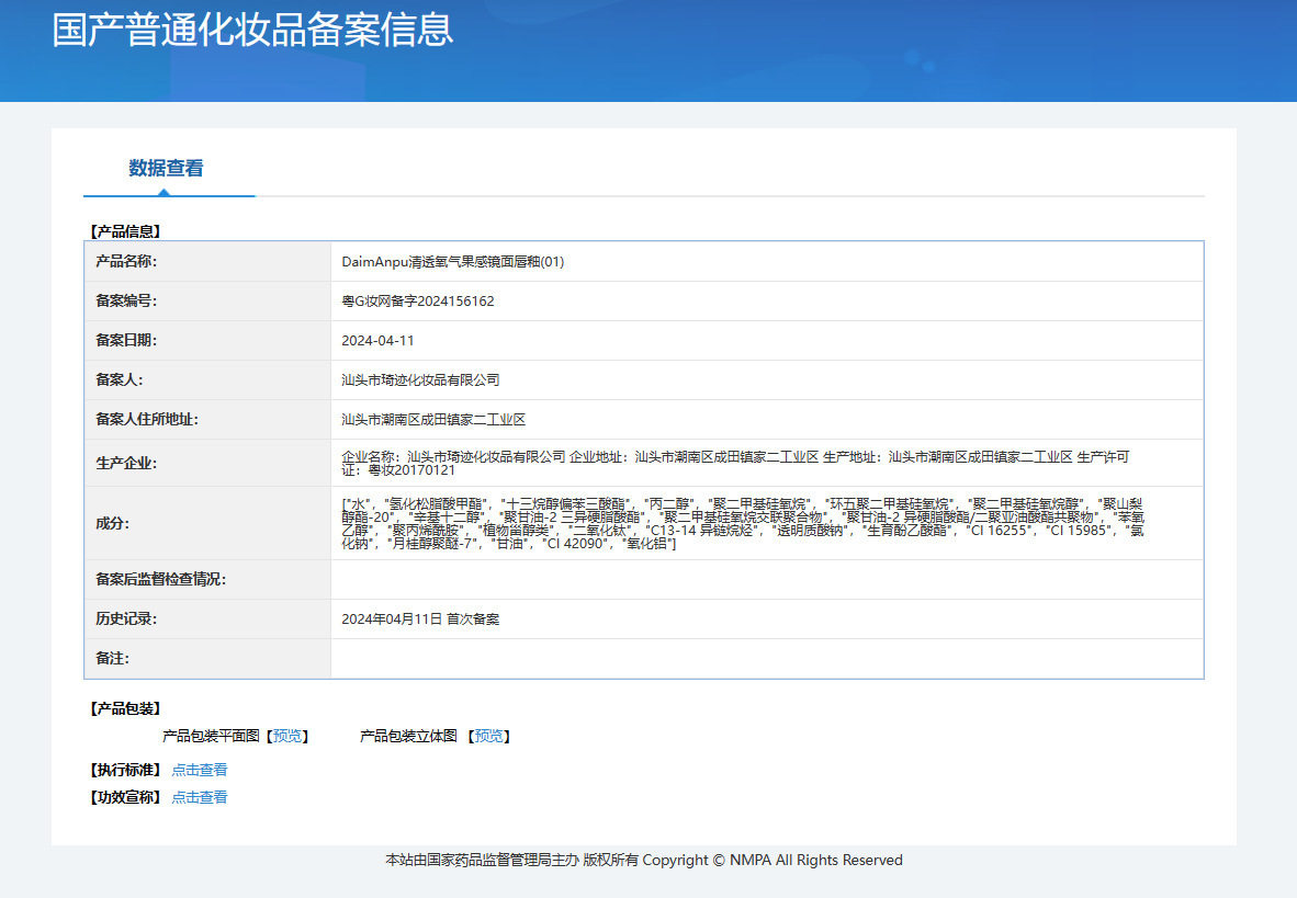 | Non-special cosmetics record certificate number | Guangdong G makeup net preparation word 2023038309 |