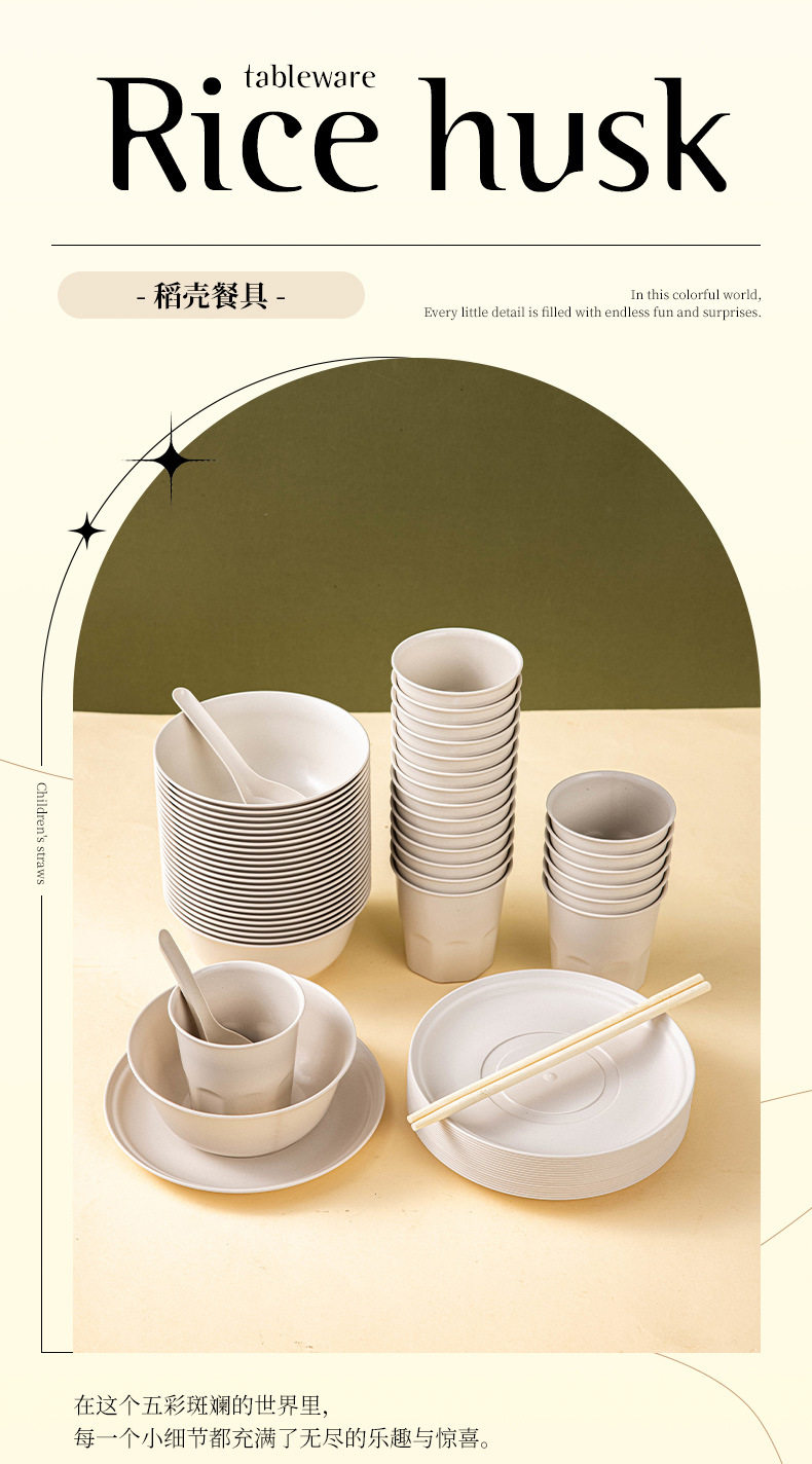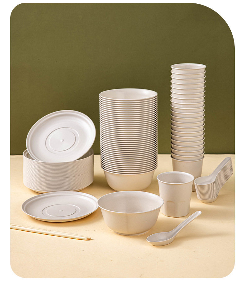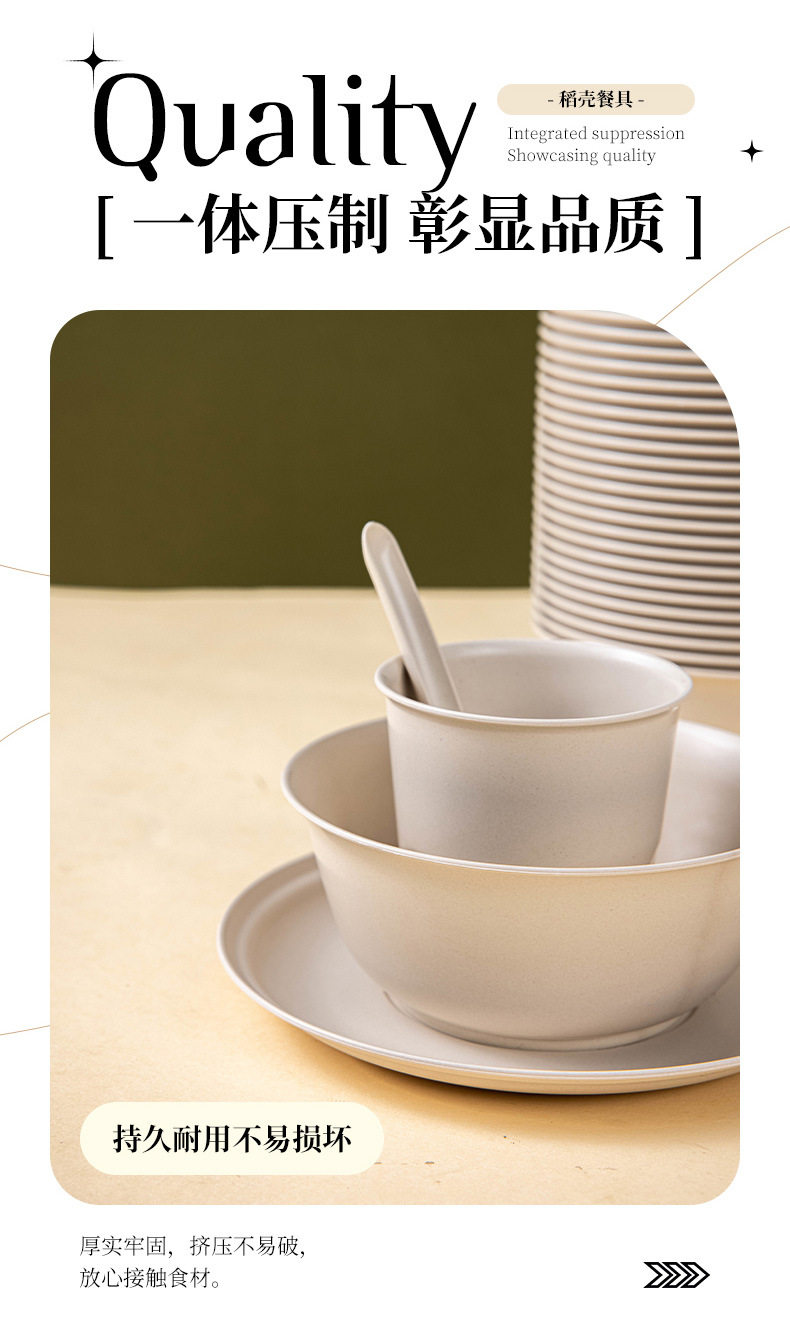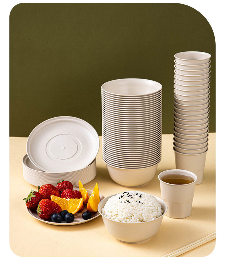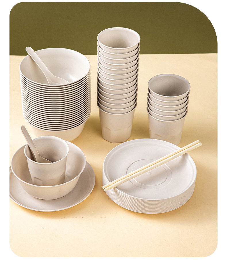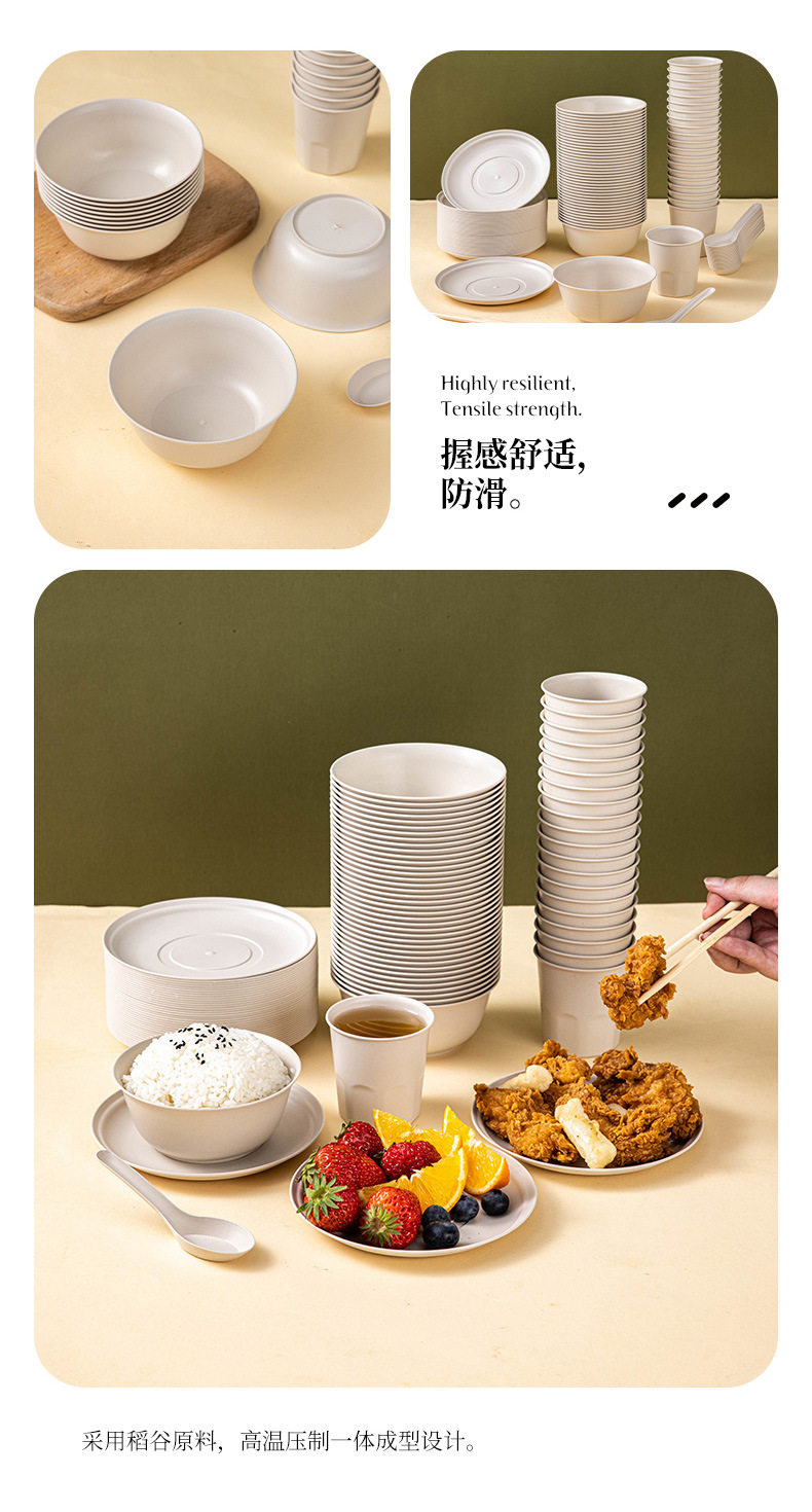 Rice Husk Disposable Tableware Bowl and Chopsticks suit Cup Rice Bowl and Plate Food Grade Household Picnic Degradable Dinner Commercial