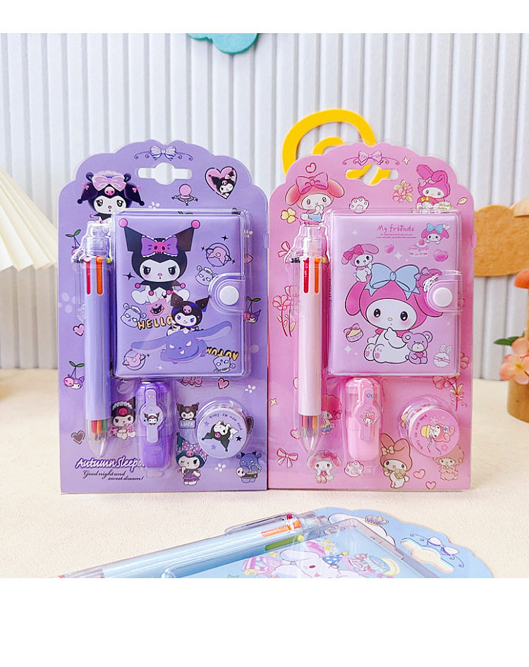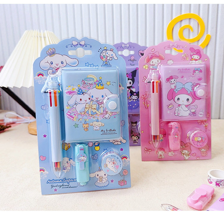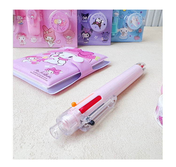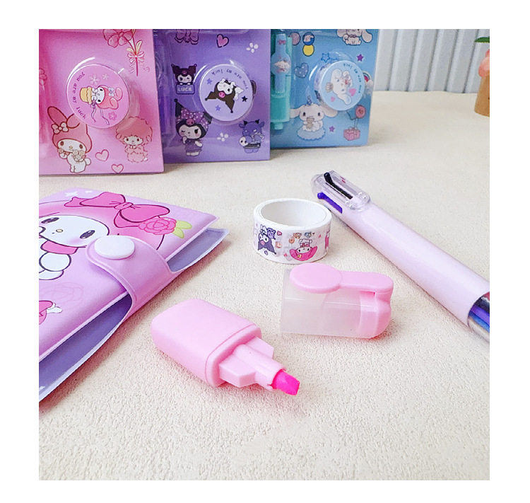 Student Stationery Sanrio Hand Account suit Mini Hand Account Book Six Color Ballpoint Pen Tape Highlighter Pen Combination Supplies