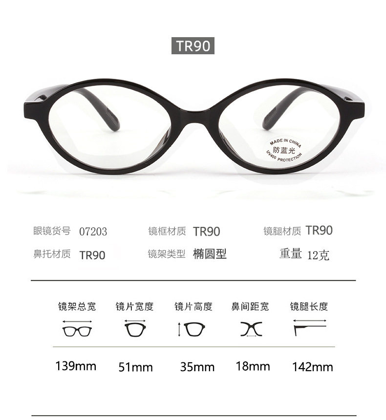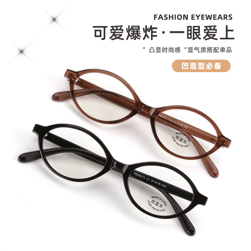 Zhang Yuanying's Same Style Glasses for Myopic Women Tr90 Frame Small Frame Flat Mirror Anti-Blue Light Retro Oval Frame Glasses Frame