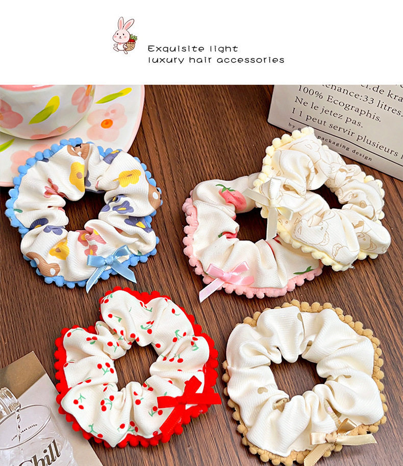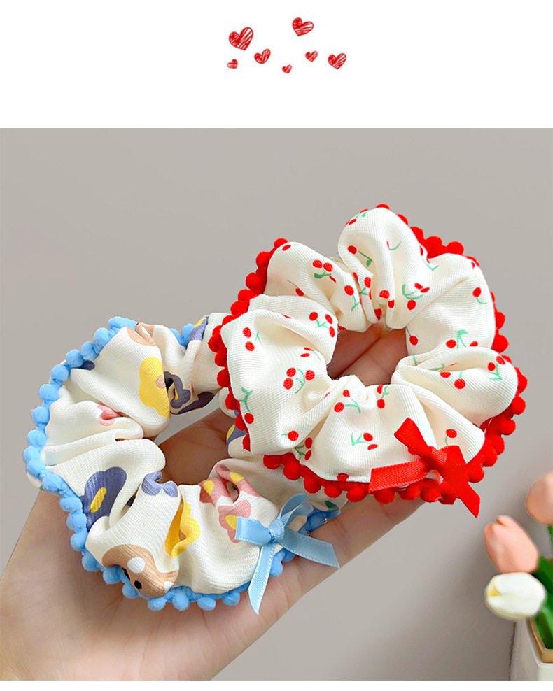 Spring and Summer Sweet Floral Bow Large Intestine Hair Ring Headdress Cute Cherry Hair Rope Girl Ball Hair Accessories for Women