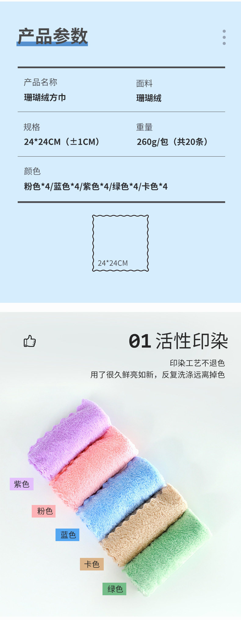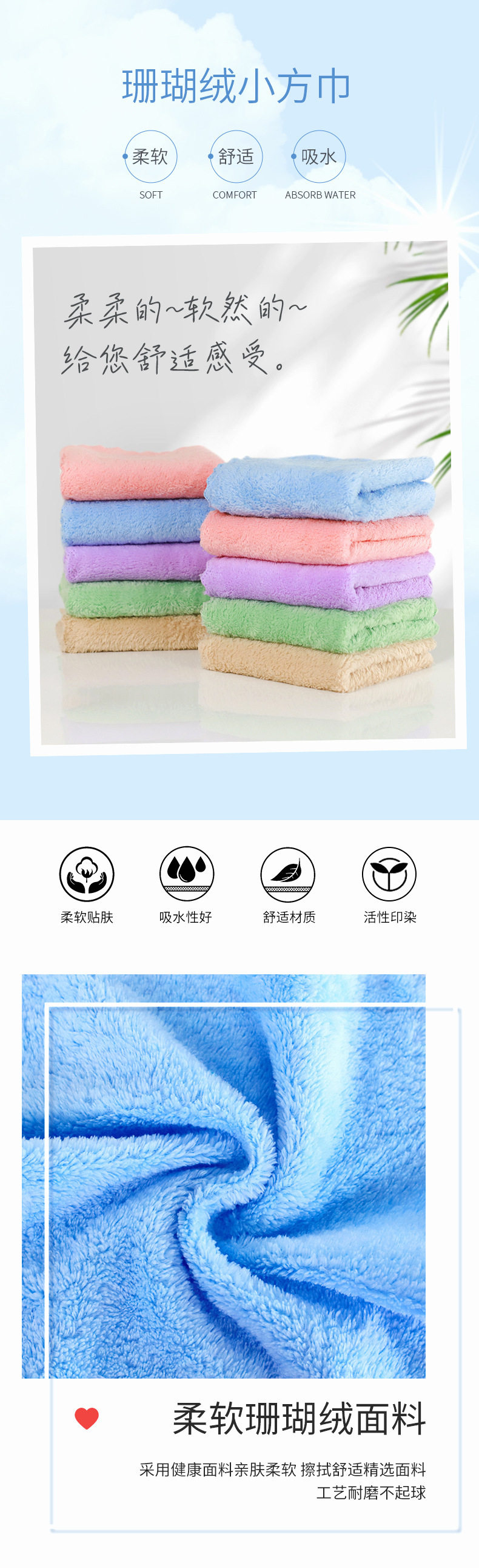 Wholesale scouring pad high density coral fleece square towel absorbent kindergarten face towel household cleaning cloth